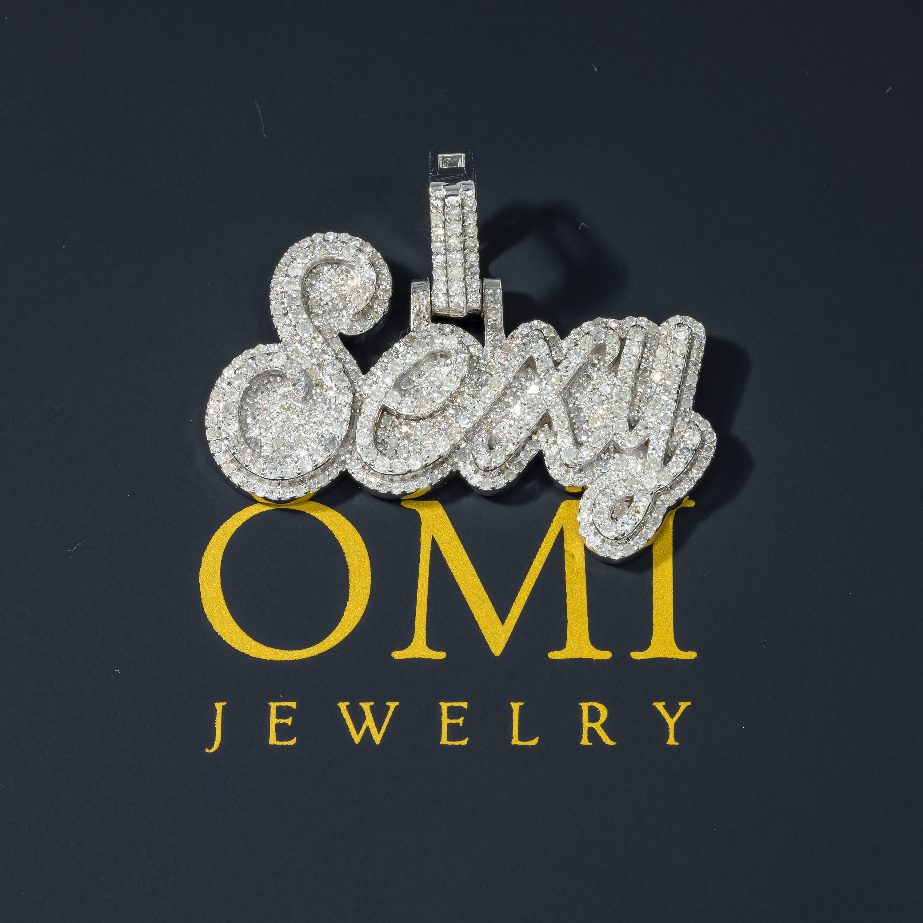 10K WHITE GOLD ROUND DIAMOND SEXY CUSTOM PENDANT 1.27 CT