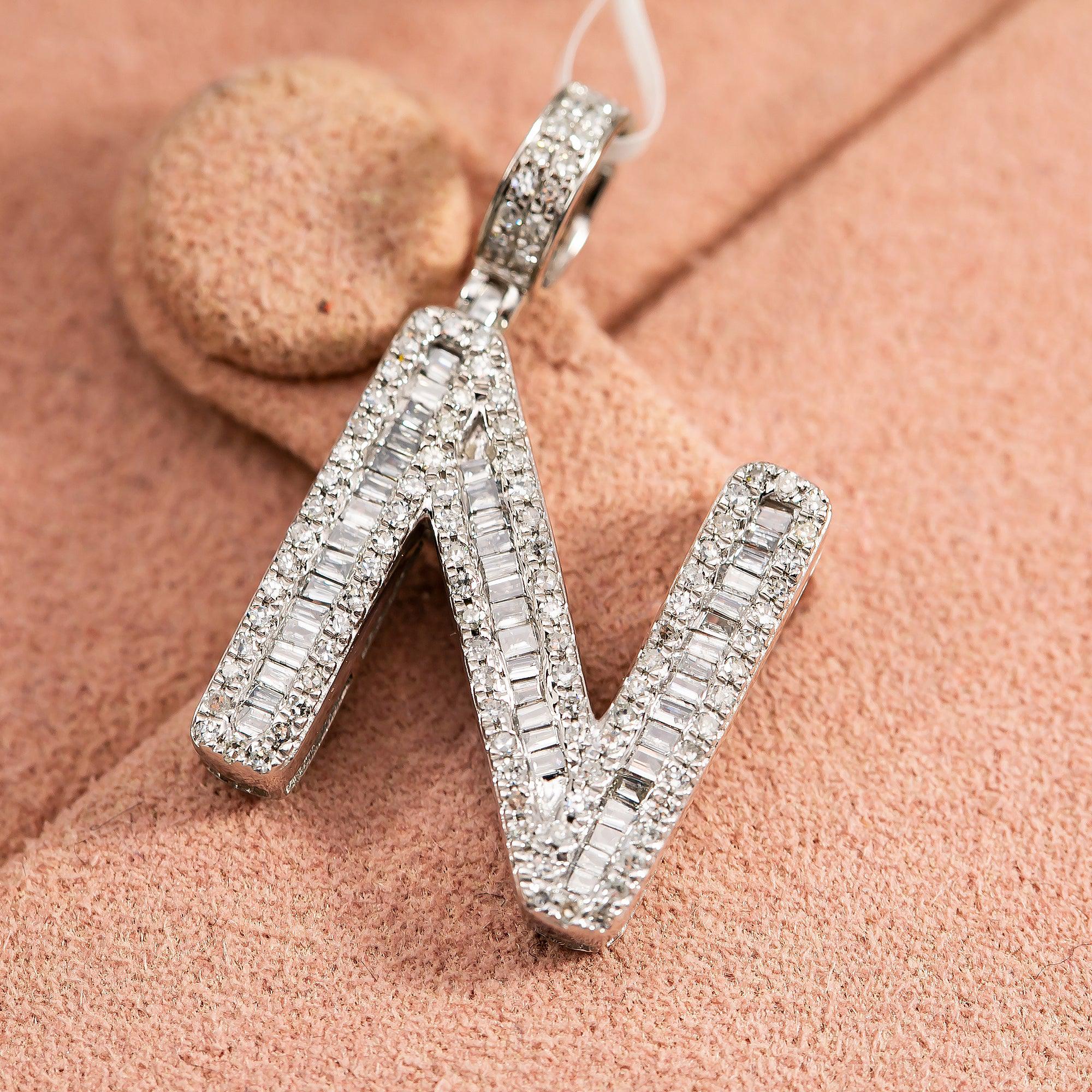10K WHITE GOLD UNISEX LETTER N PENDANT WITH 0.68 CT DIAMONDS