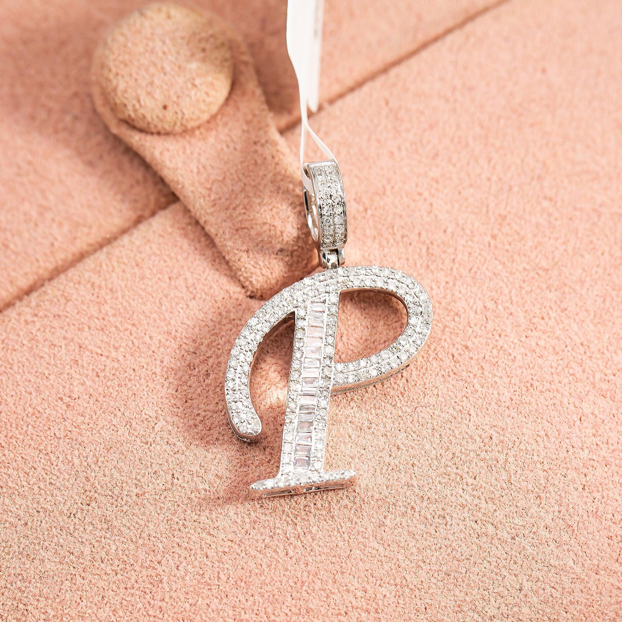 10K WHITE GOLD UNISEX LETTER P PENDANT WITH 0.50 CT DIAMONDS