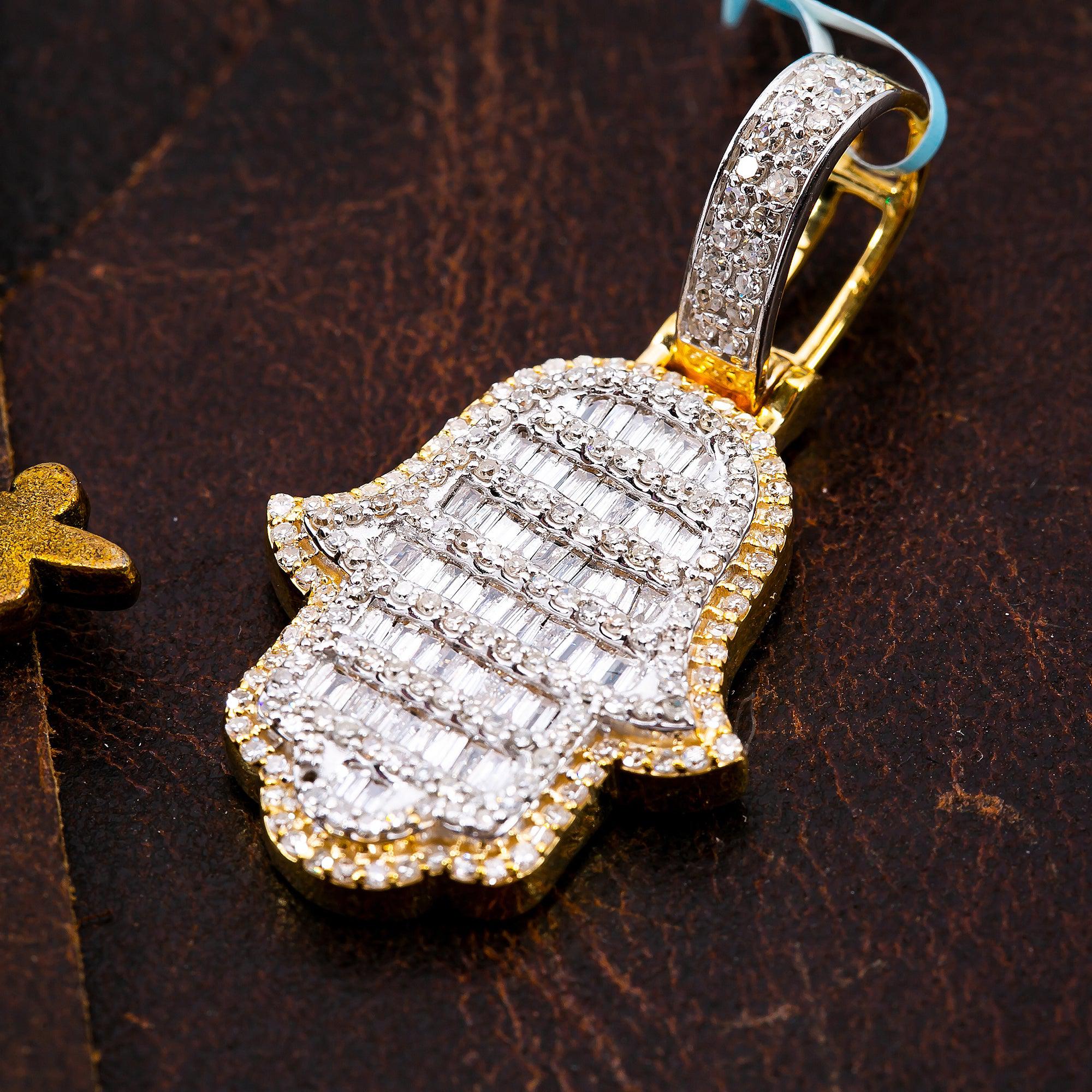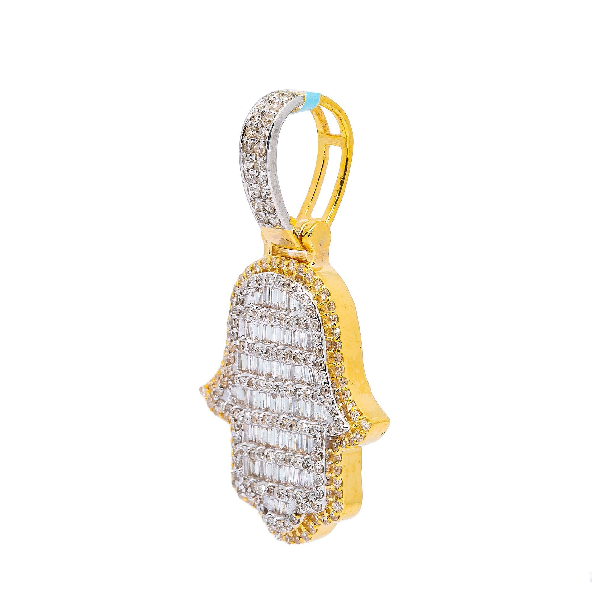 10K YELLOW GOLD HAMSA WITH 1.4 CT BAGUETTE AND ROUND DIAMONDS