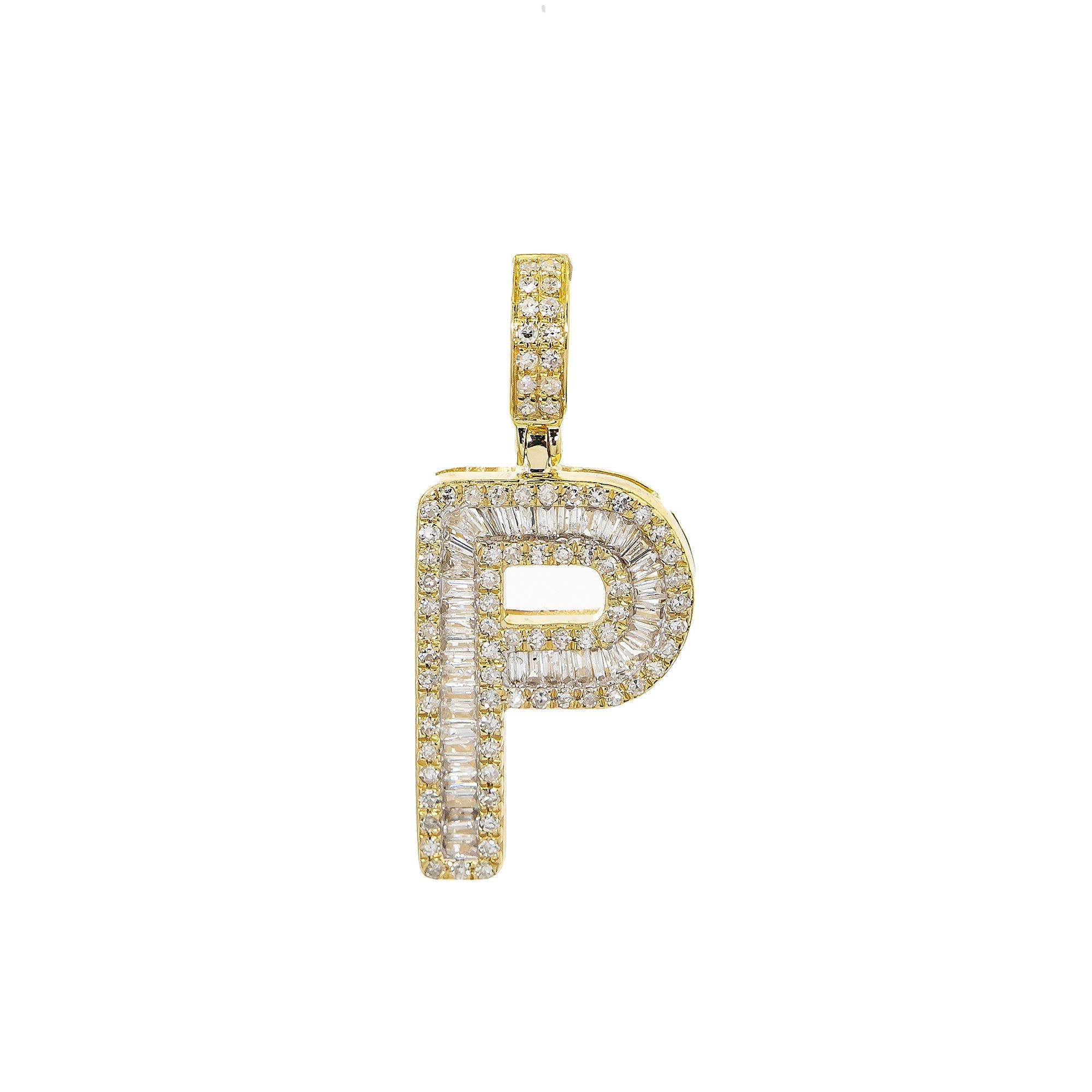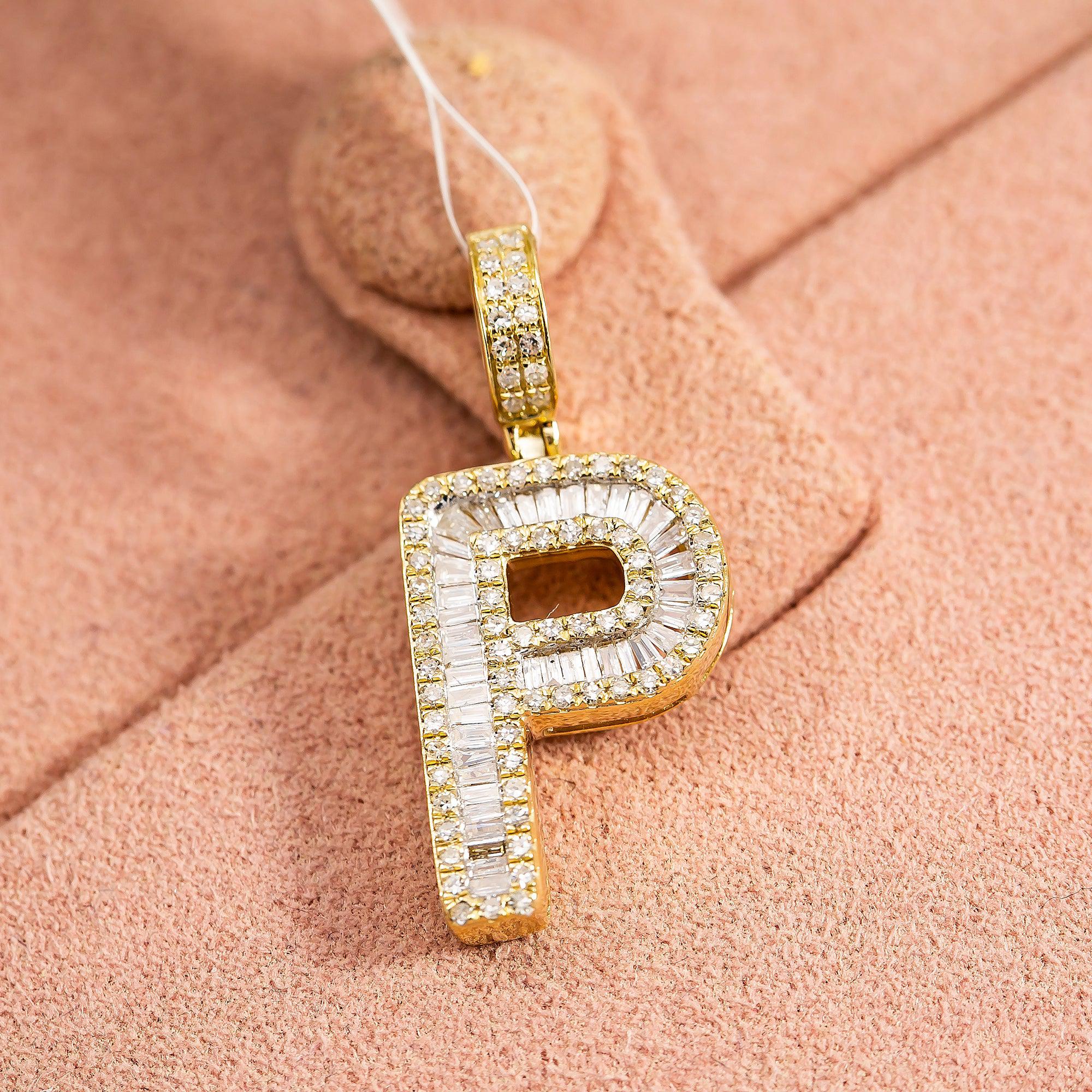 10K YELLOW GOLD UNISEX LETTER P PENDANT WITH 0.60 CT DIAMONDS