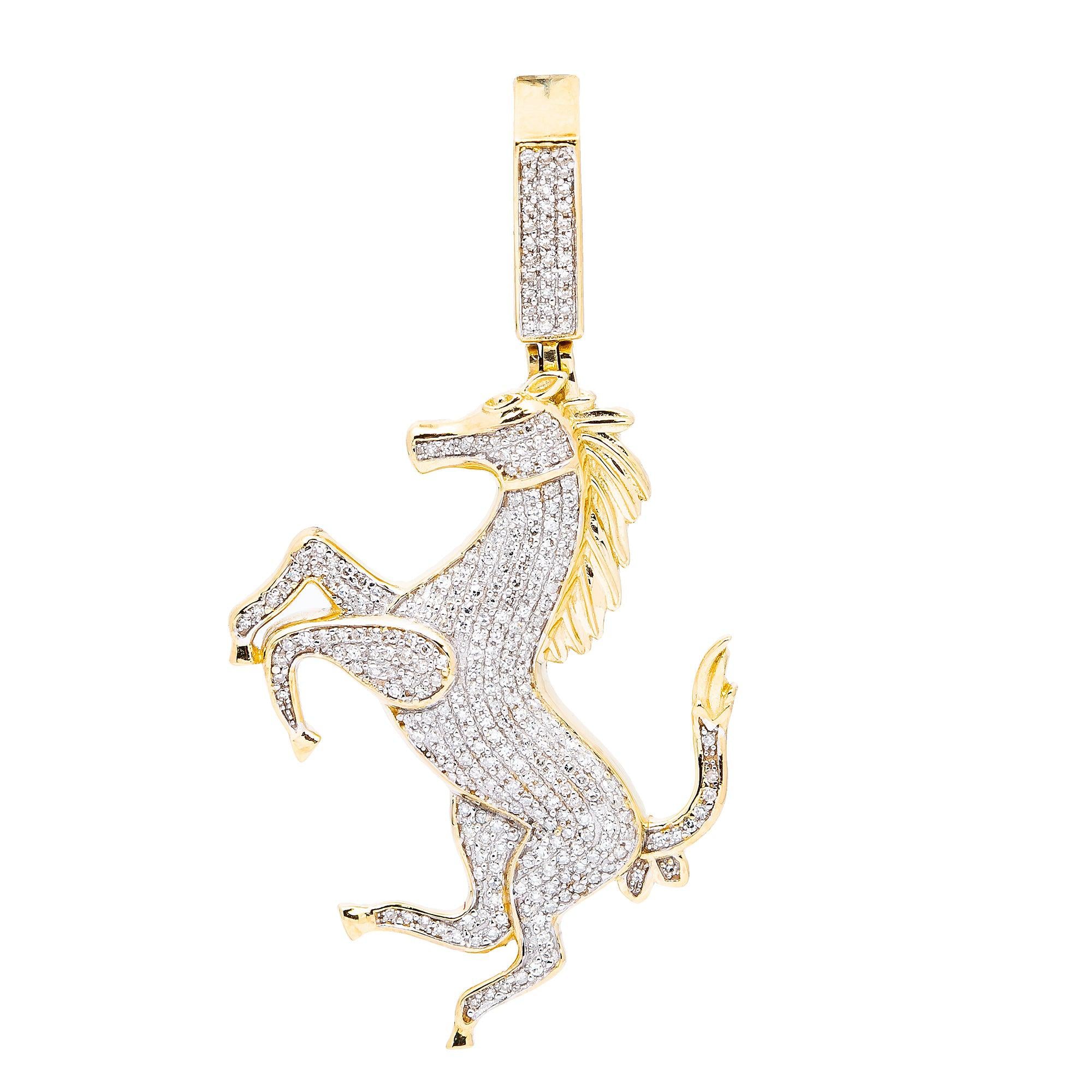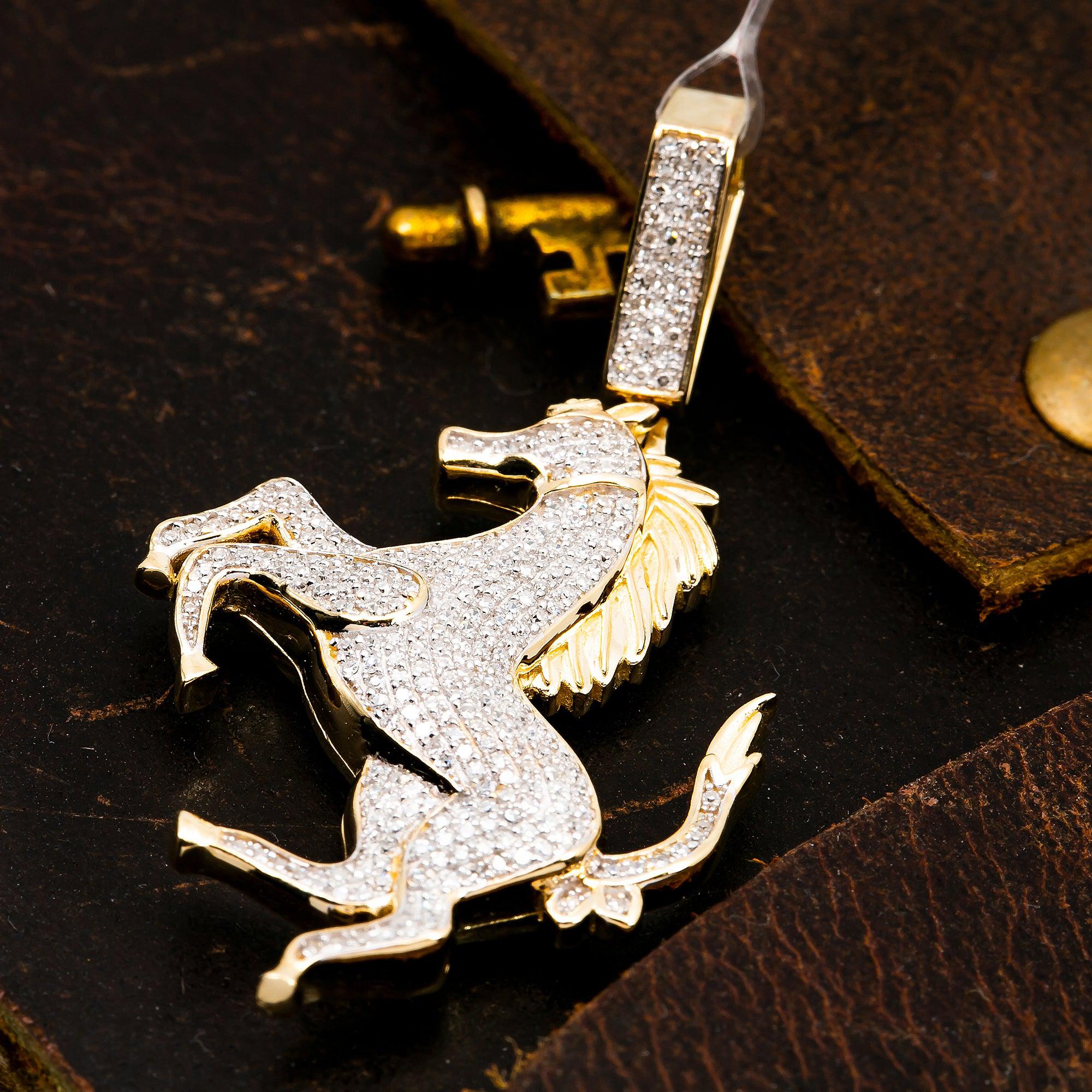 10K YELLOW GOLD DIAMOND MUSTANG HORSE PENDANT 0.60 CT