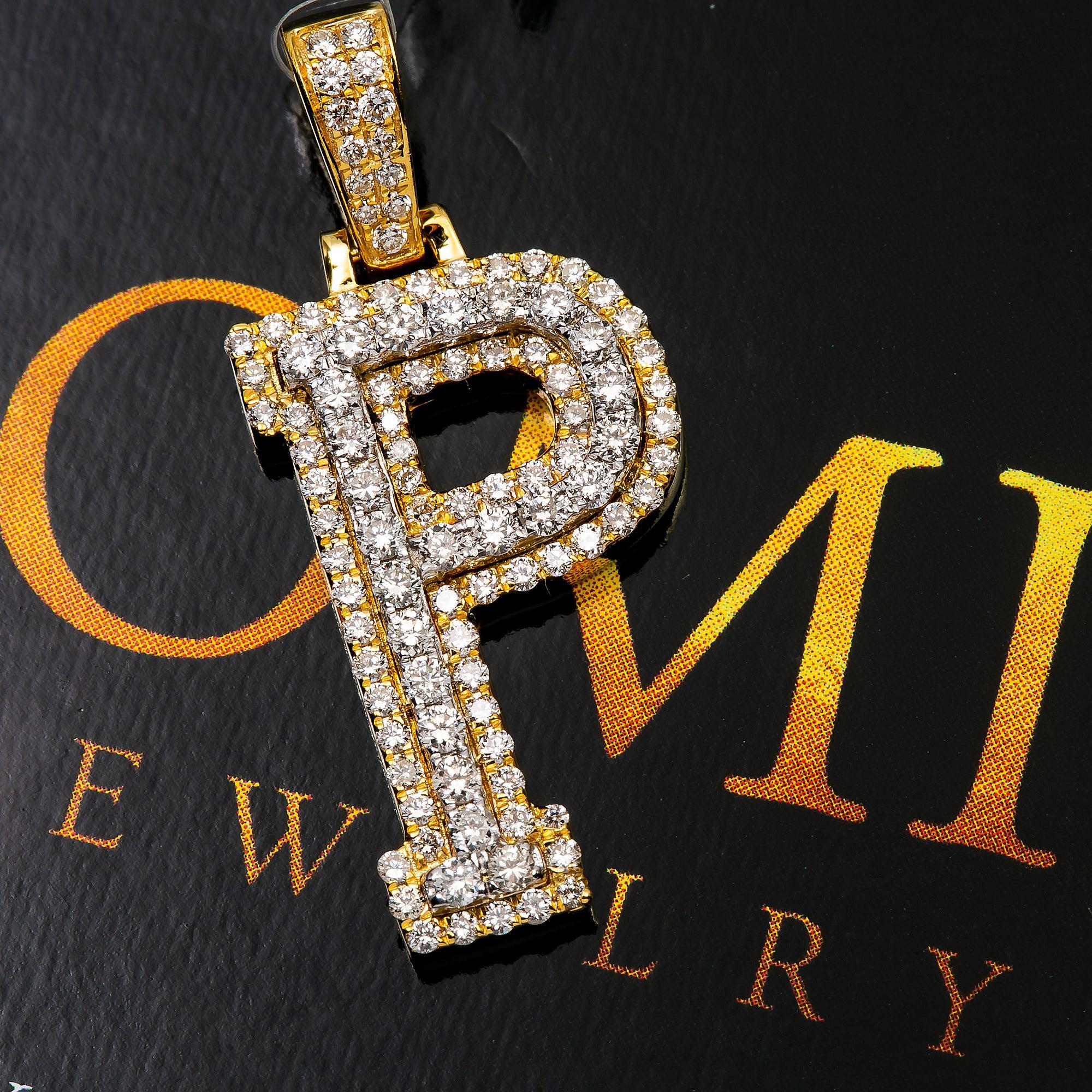 10K YELLOW LETTER P PENDANT WITH 0.75 CT DIAMONDS