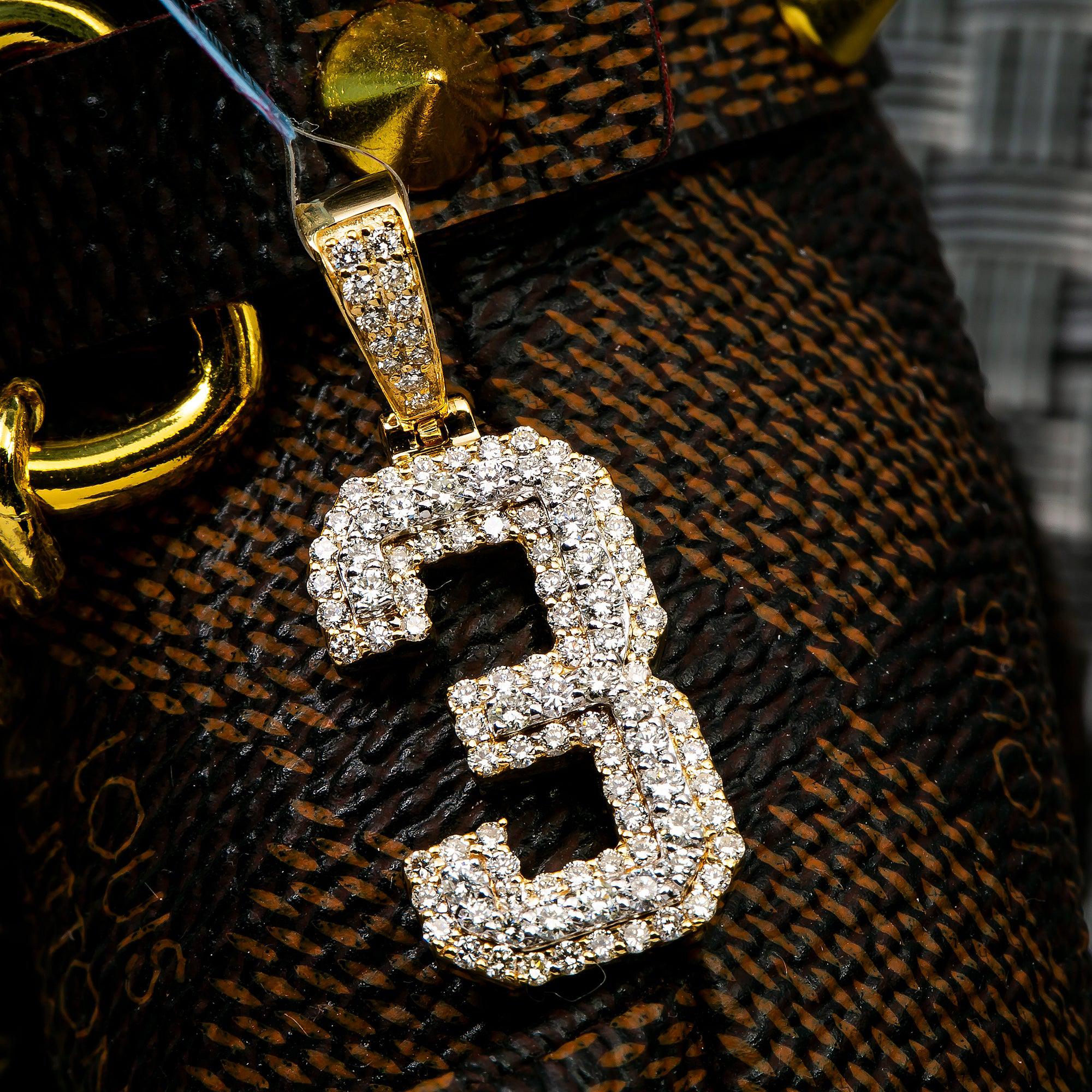 10K YELLOW GOLD NUMBER 3 PENDANT WITH 0.85 CT DIAMONDS