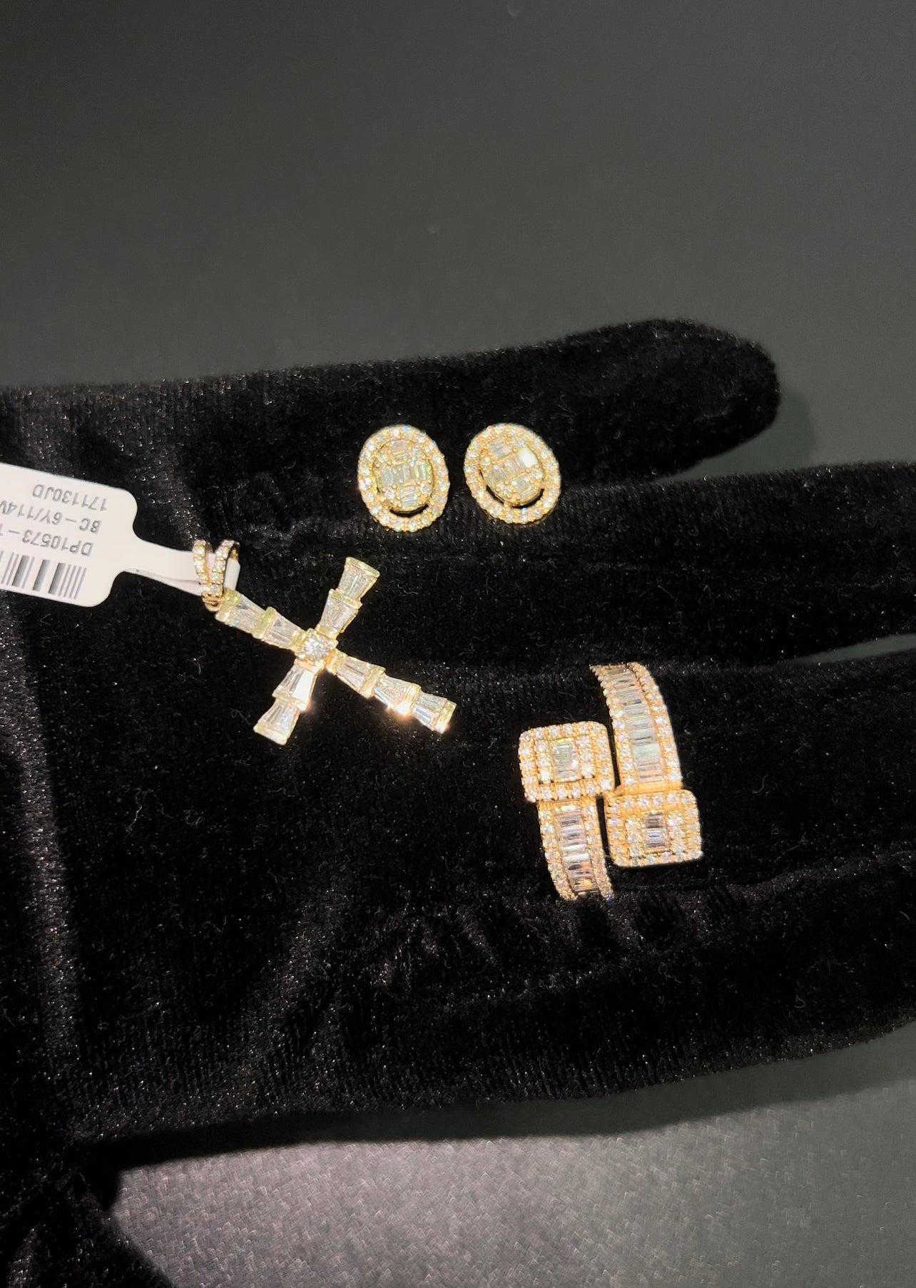 14k 3 piece deal earrings, ring & cross pendant $2,700.00
