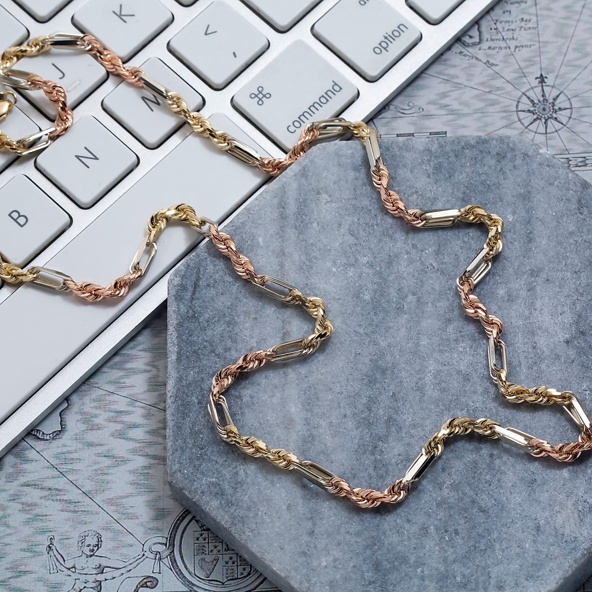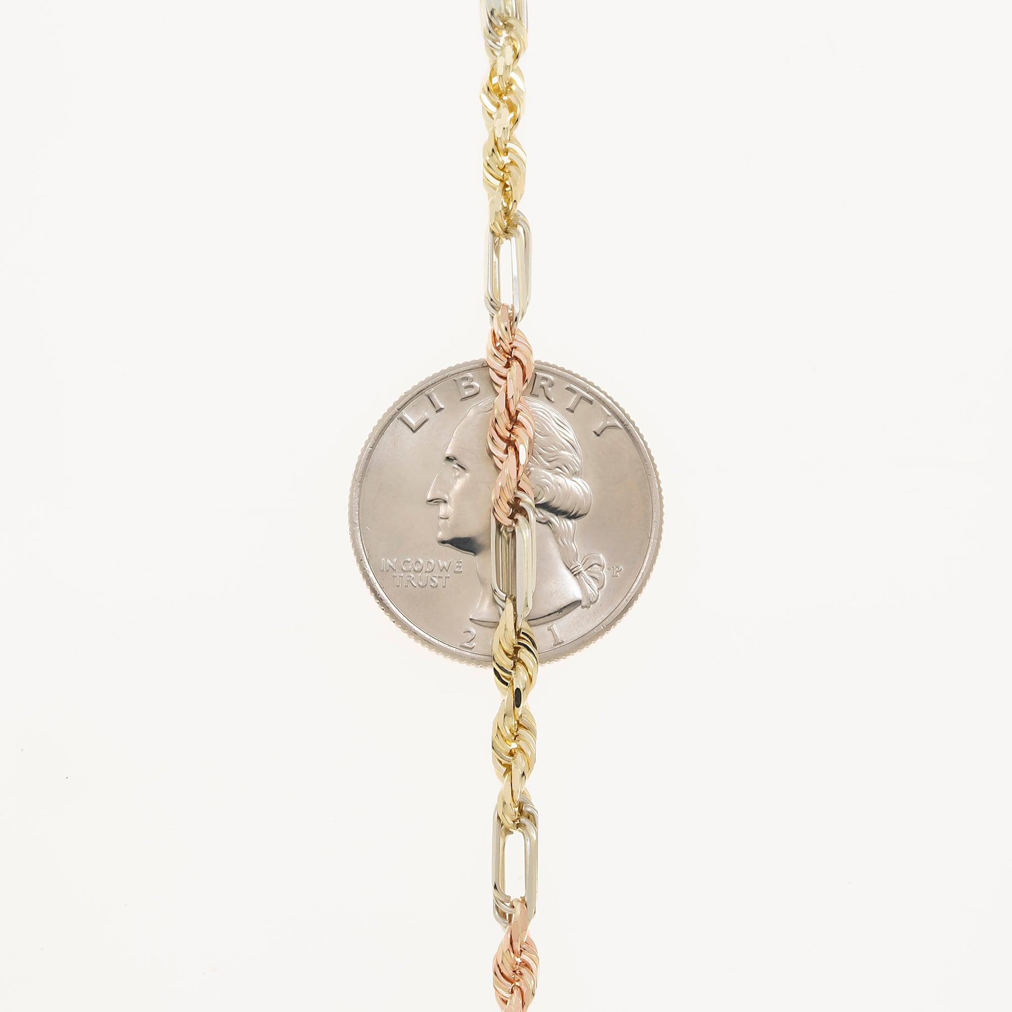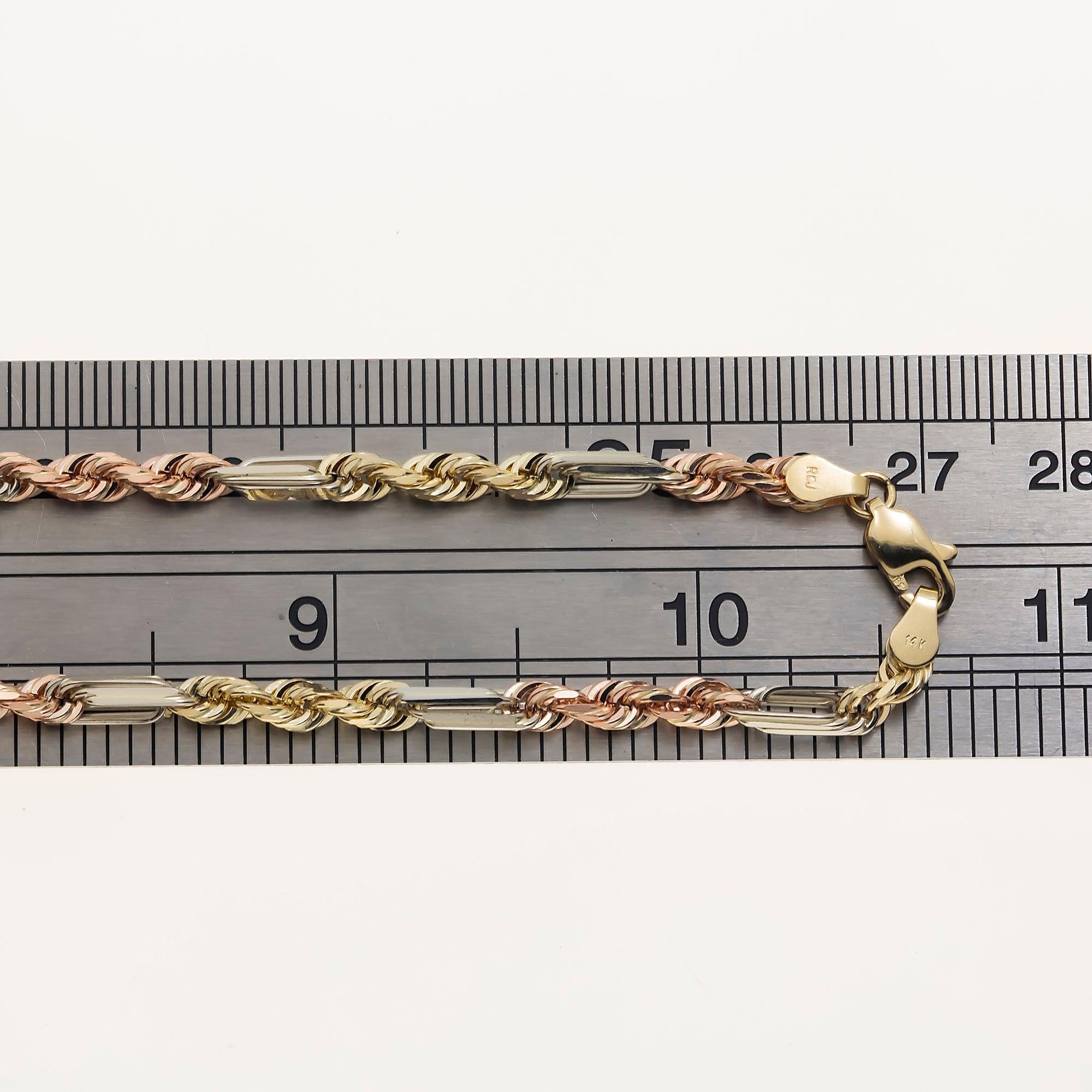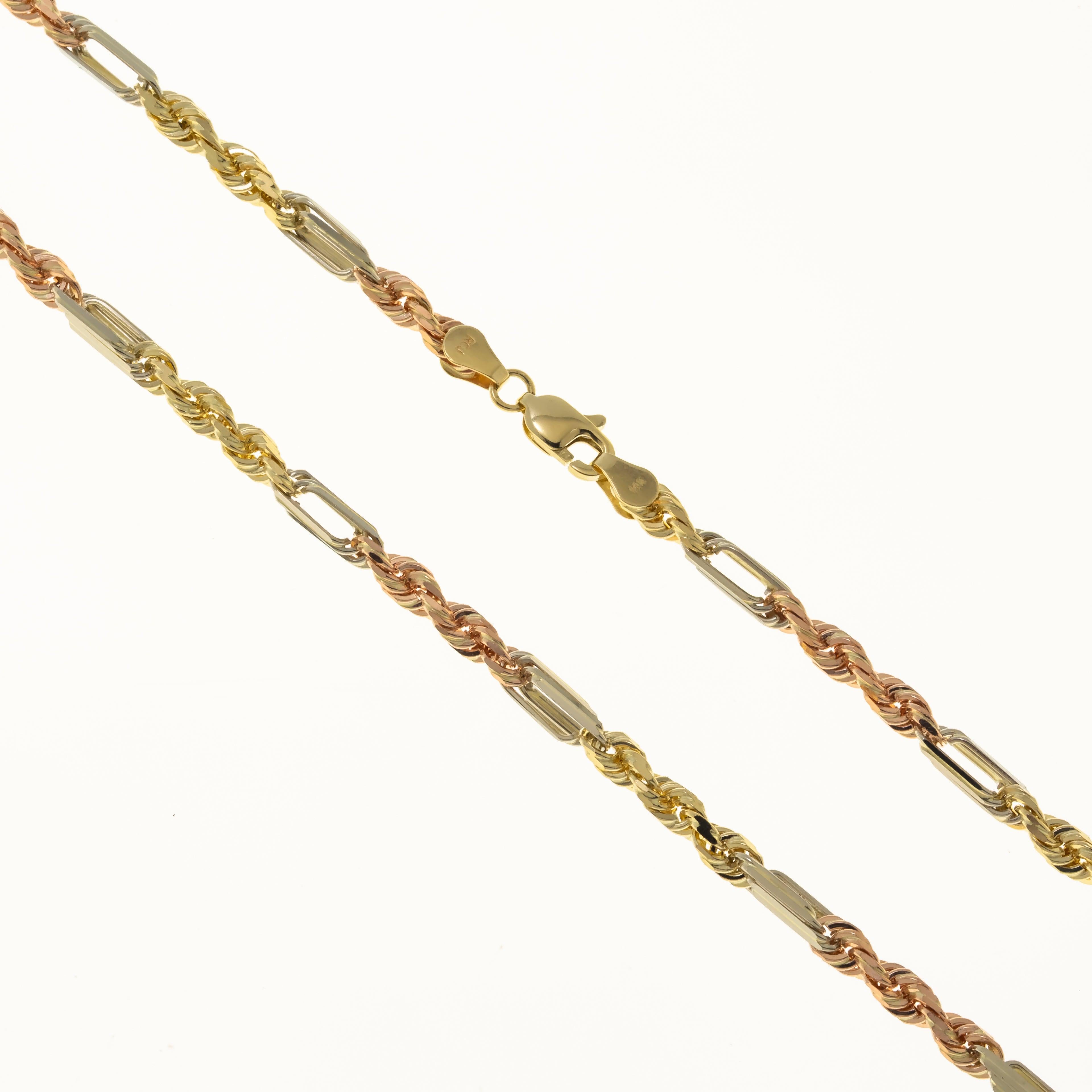 14K GOLD 4MM TRICOLOR MILANO FIGARO ROPE CHAIN
