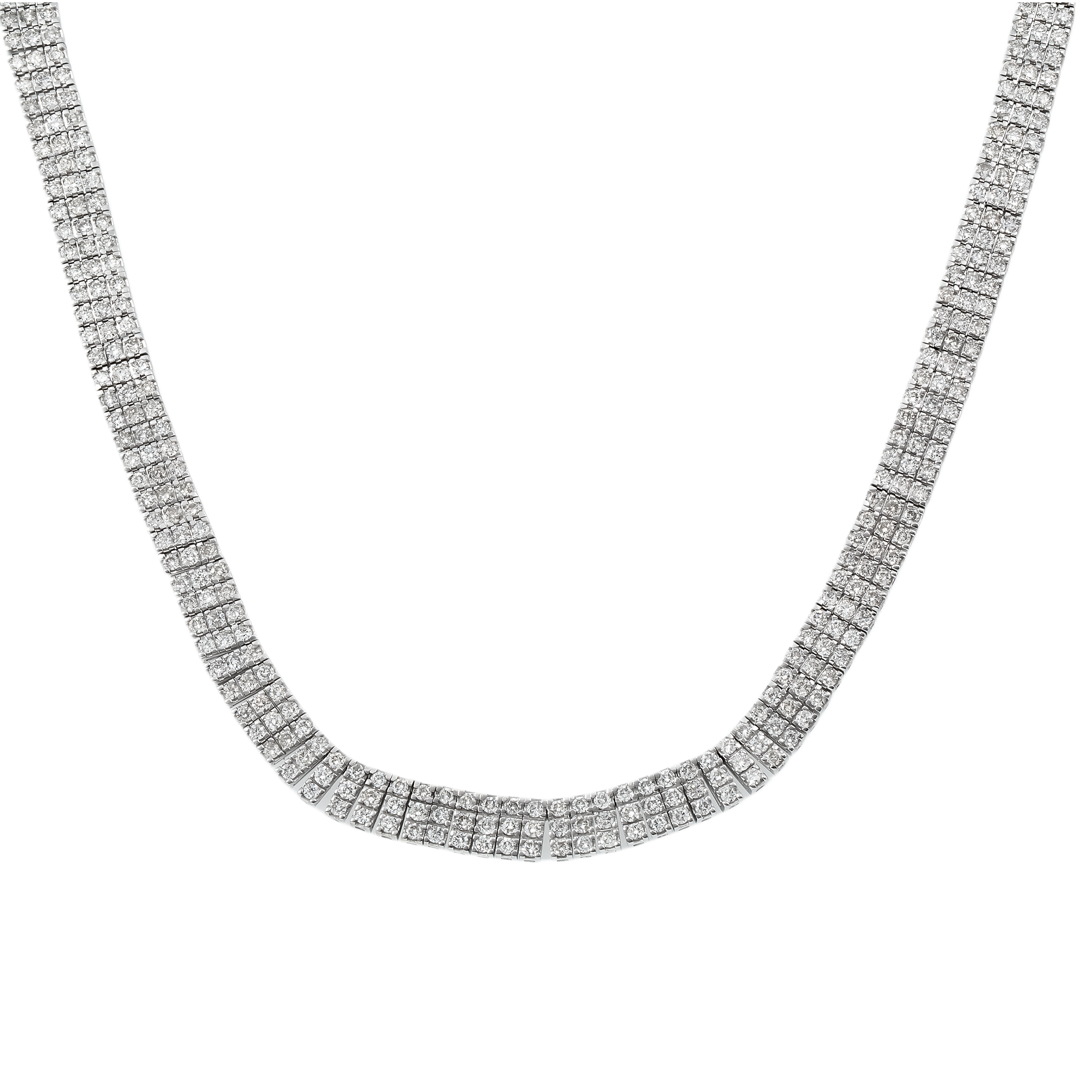 14K GOLD 7MM ROUND DIAMOND MULTIROW TENNIS CHAIN 17.00 CT