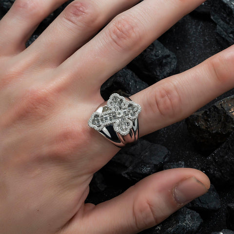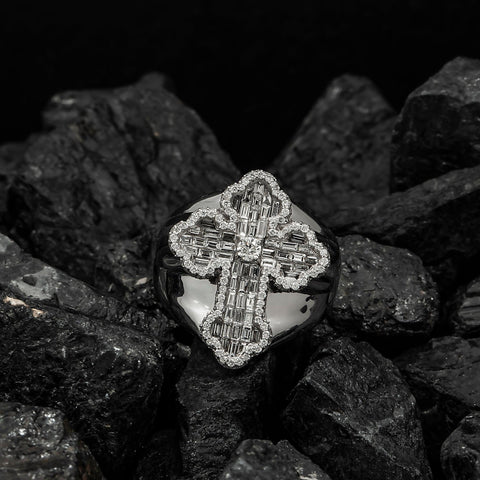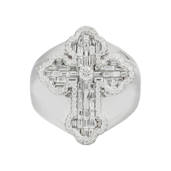 14K GOLD BAGUETTE AND ROUND DIAMOND CROSS STATEMENT RING 1.70 CT