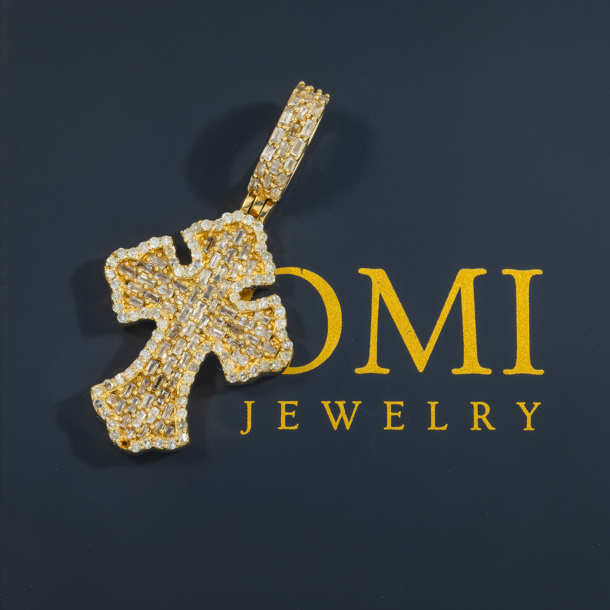 14K GOLD BAGUETTE AND ROUND DIAMOND FLEUR DE LIS CROSS PENDANT 0.88 CT
