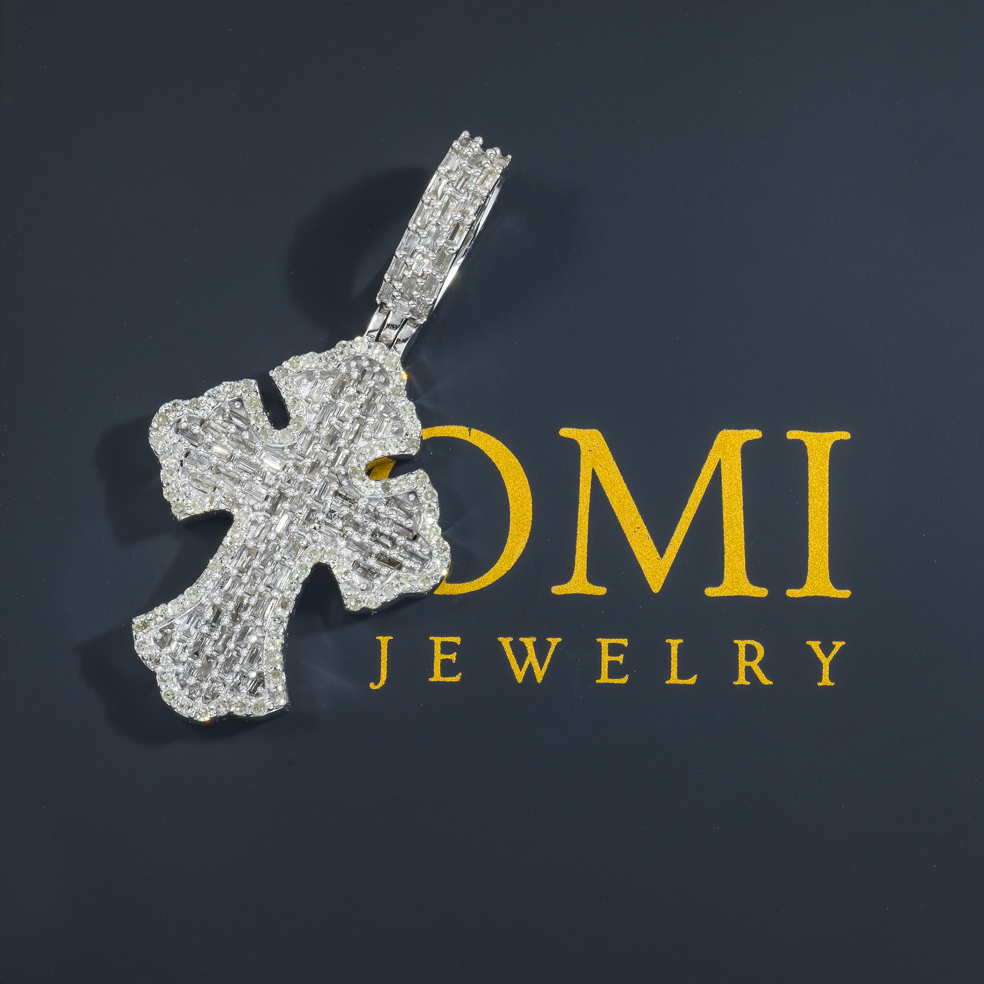 14K BAGUETTE AND ROUND DIAMOND FLEUR DE LIS CROSS PENDANT 0.88 CT