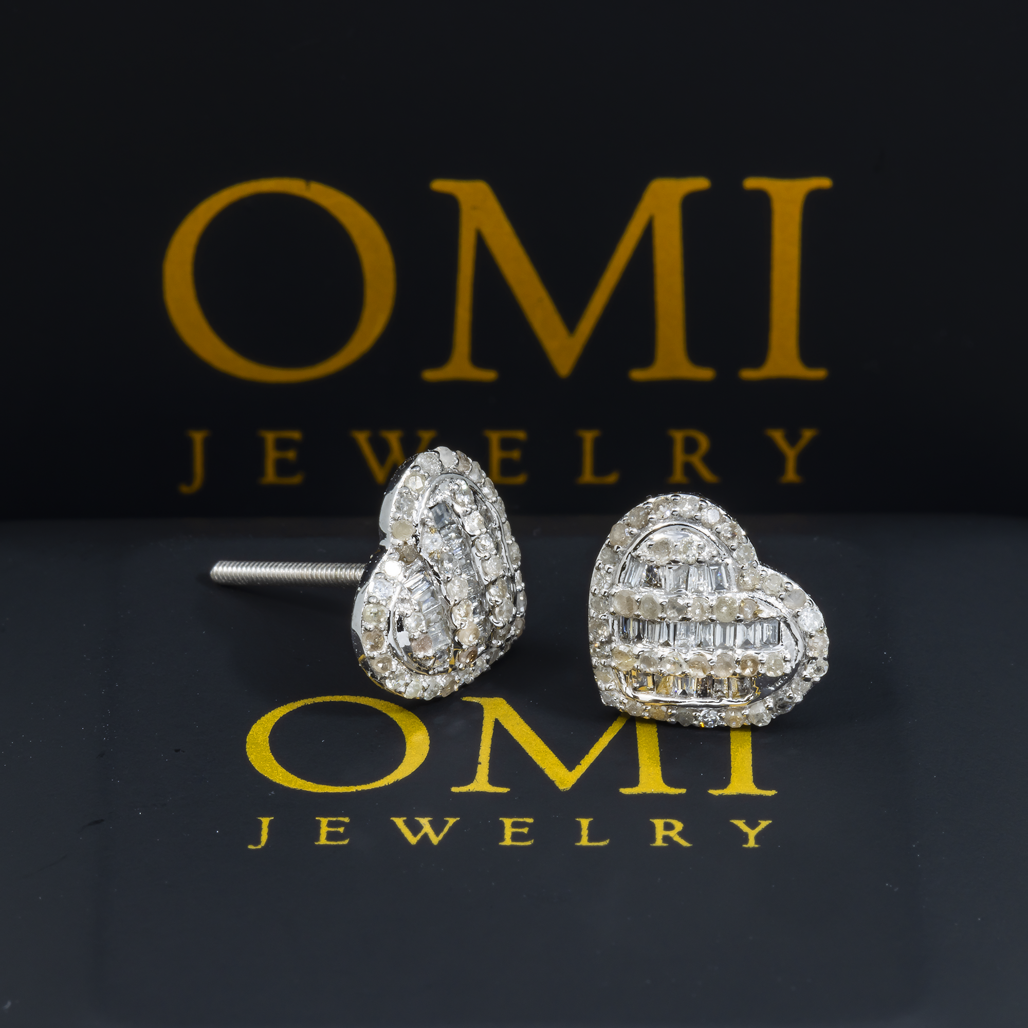 14K GOLD BAGUETTE AND ROUND DIAMOND HEART EARRINGS 0.61 CTW