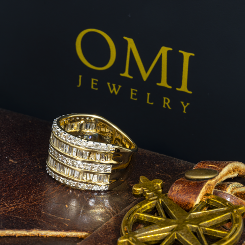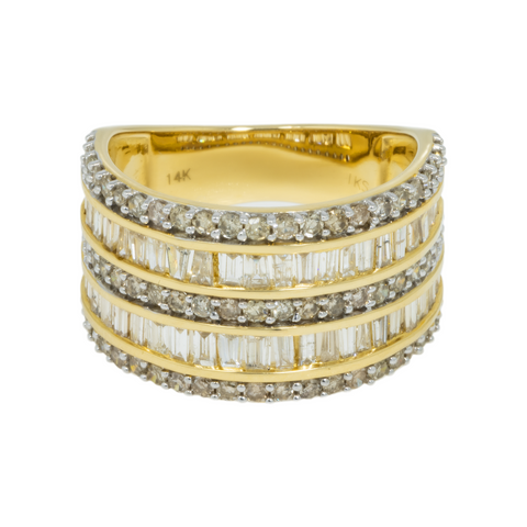 14K GOLD BAGUETTE AND ROUND DIAMOND STATEMENT BAND RING 2.50 CT
