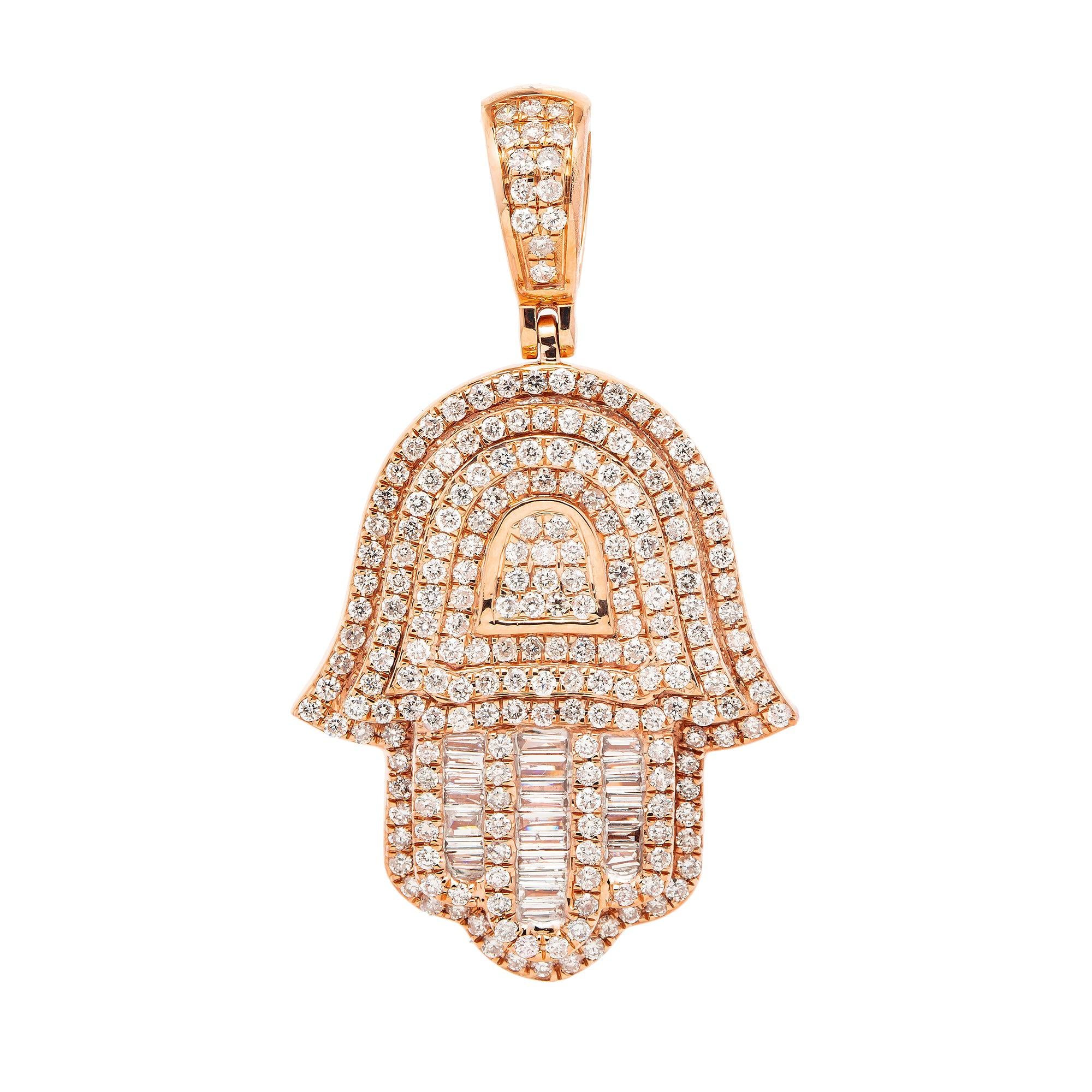 14K GOLD BAGUETTE DIAMOND HAMSA PENDANT 2.65 CT