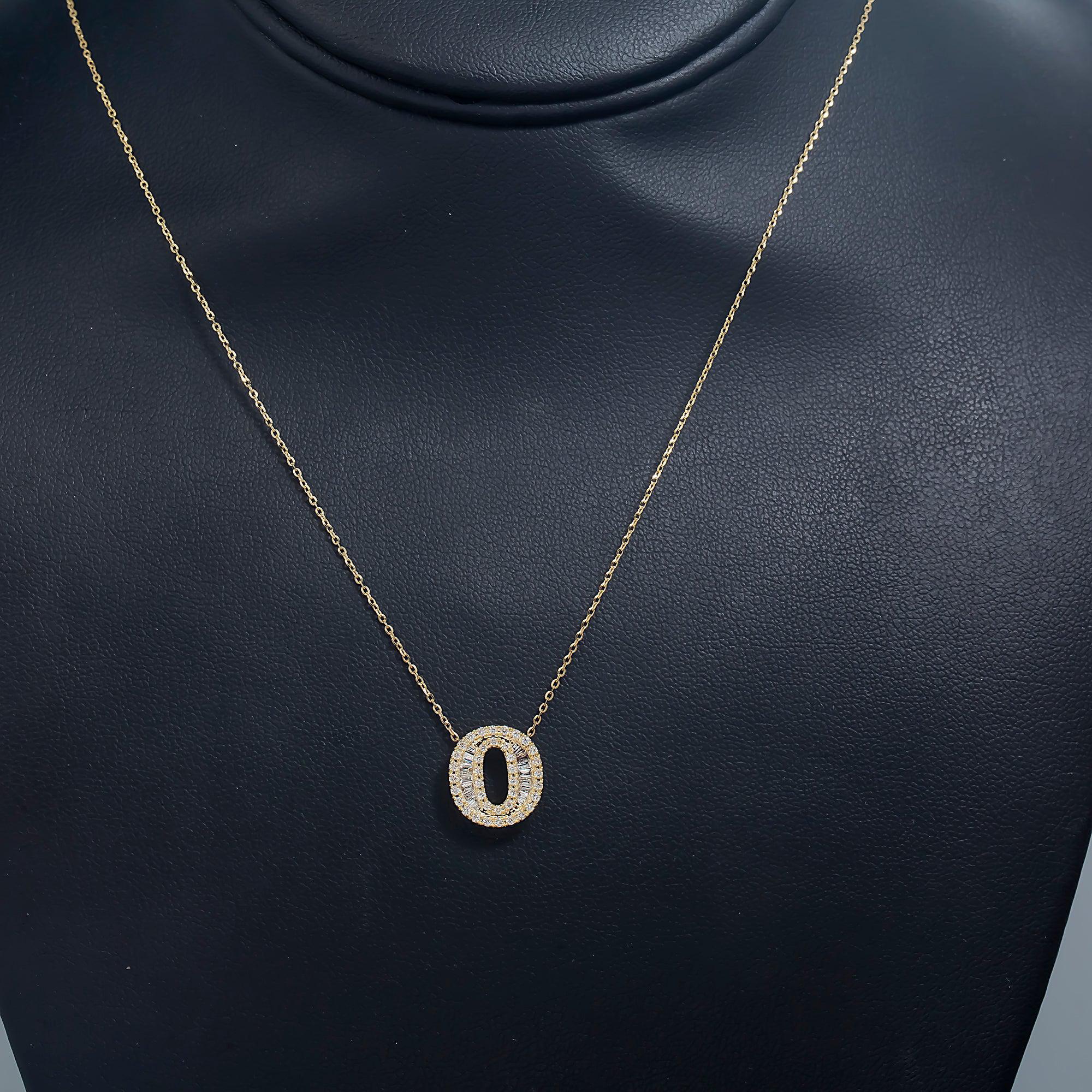 14K GOLD BAGUETTE DIAMOND INITIAL O NECKLACE 0.40 CT