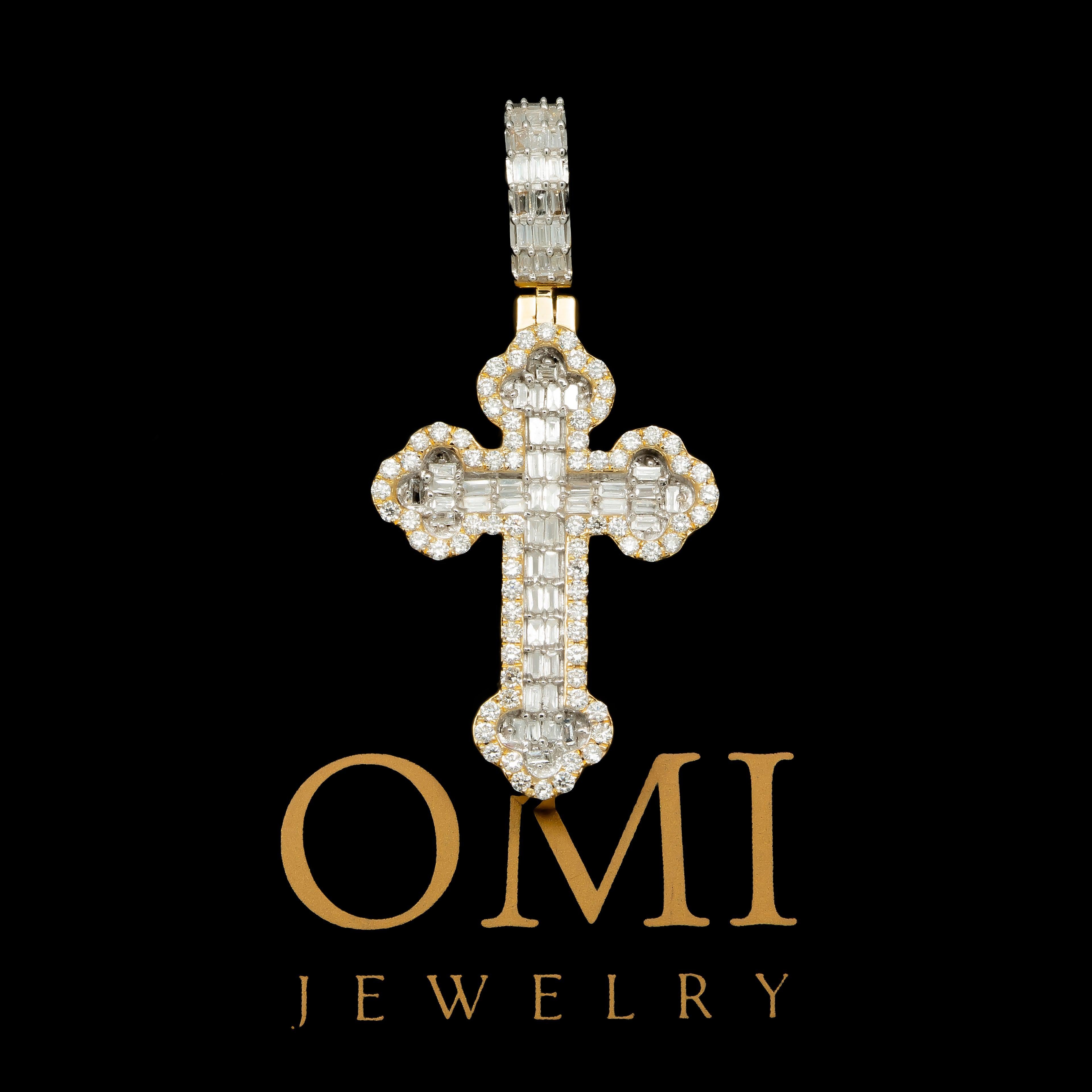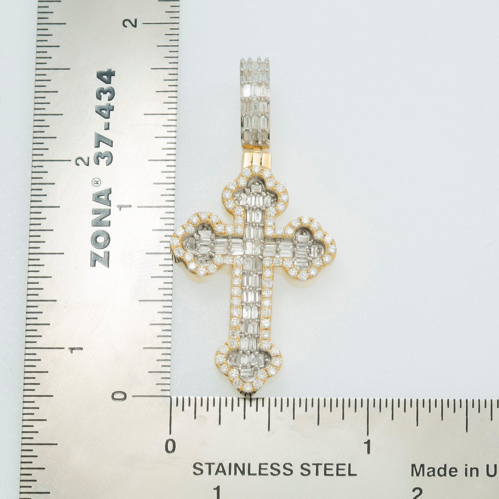 14K GOLD BAGUETTE DIAMOND INVERTED FLEUR DE LIS CROSS PENDANT 1.25 CT