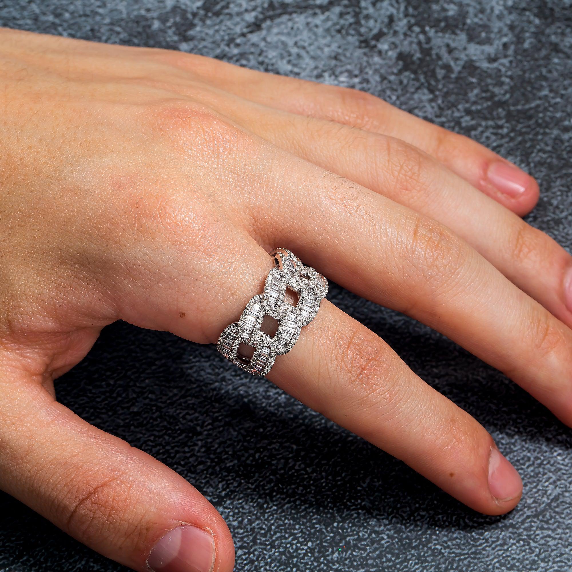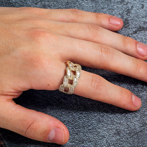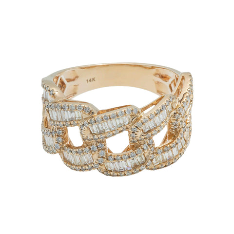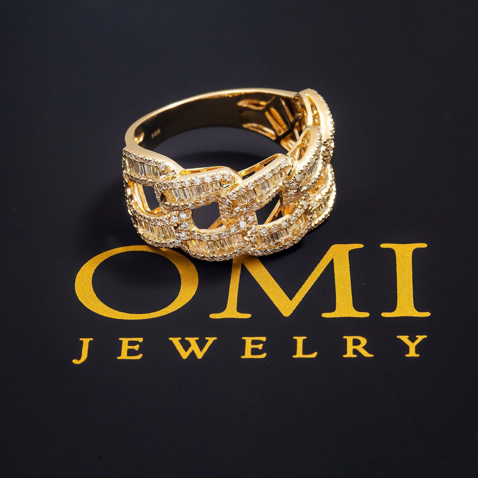 14K GOLD BAGUETTE DIAMOND MEN'S CUBAN LINK RING 2.31 CT