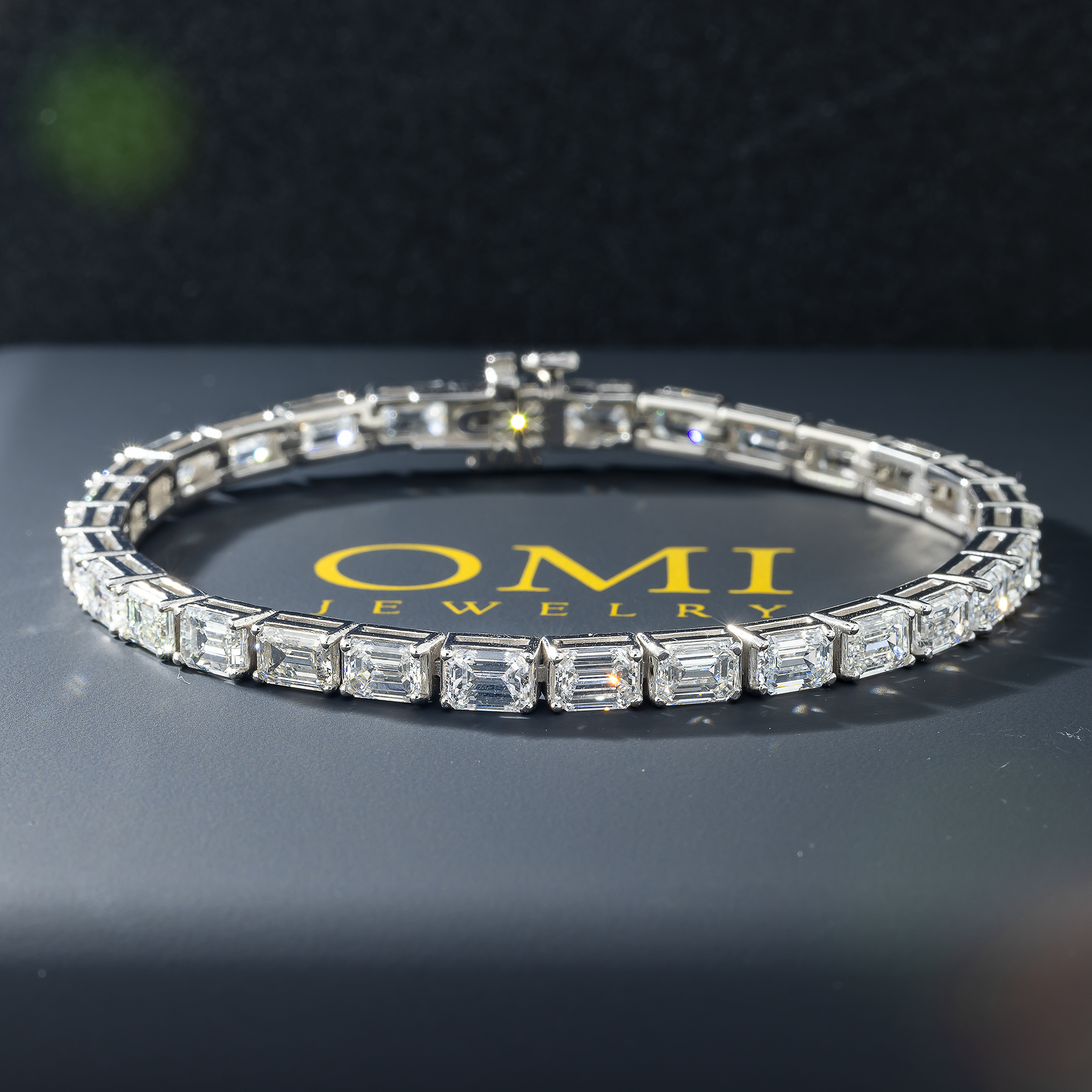 14K GOLD EMERALD CUT LAB DIAMOND TENNIS BRACELET 15.07 CT