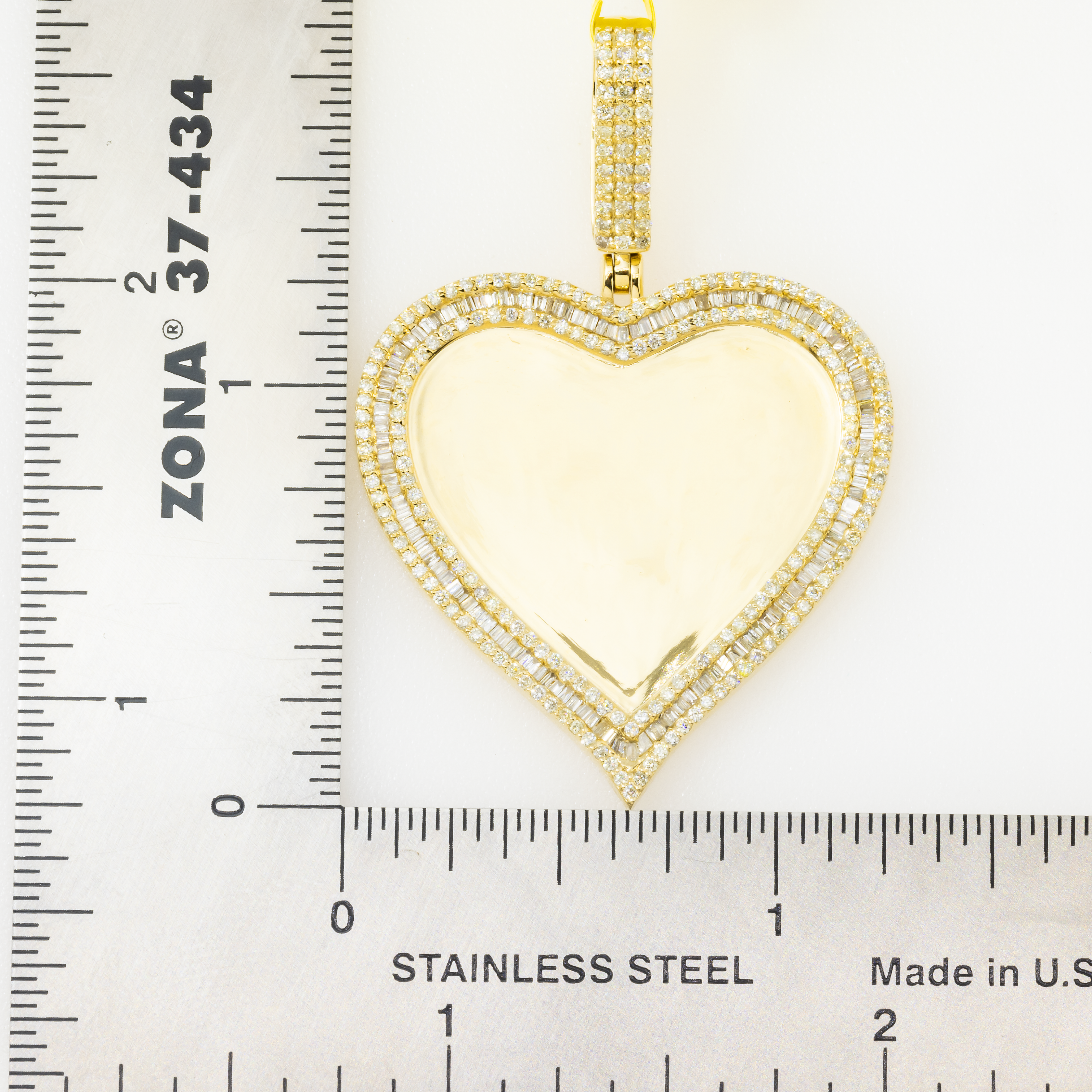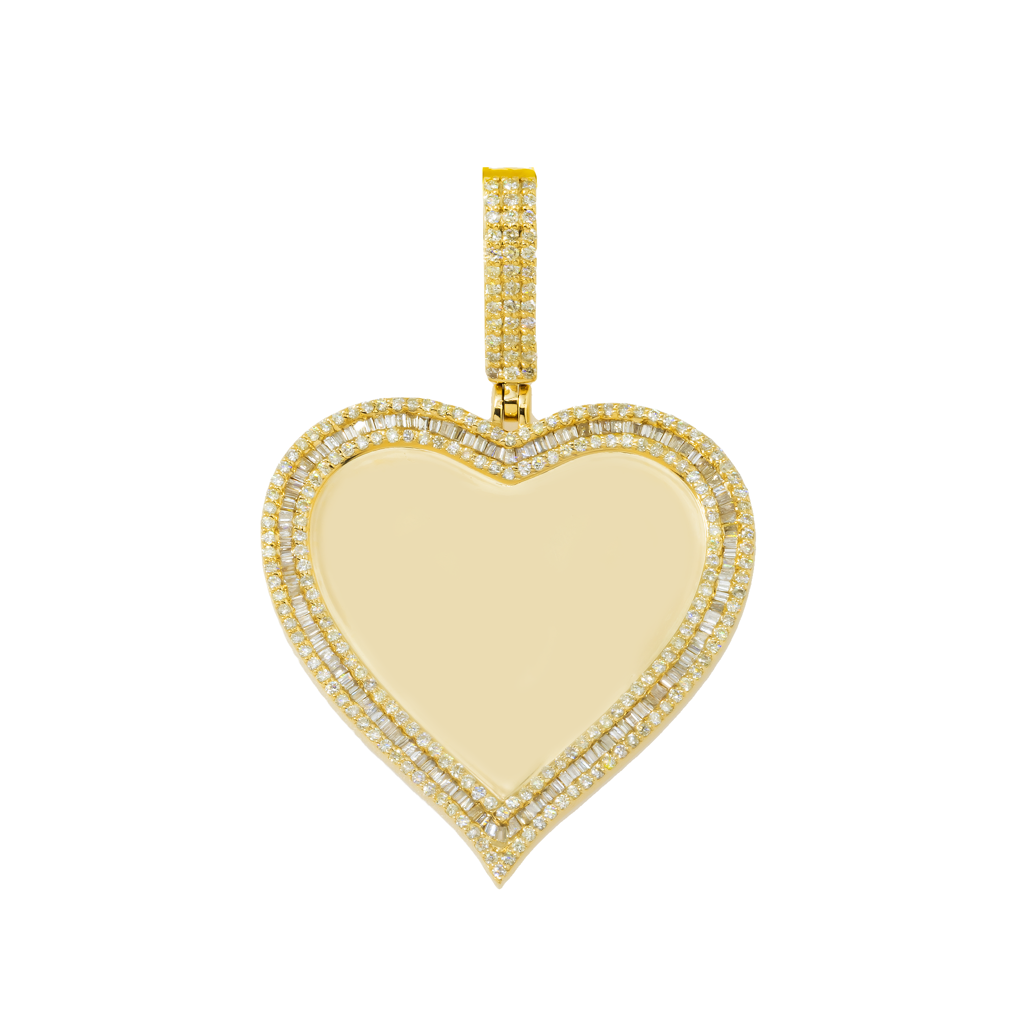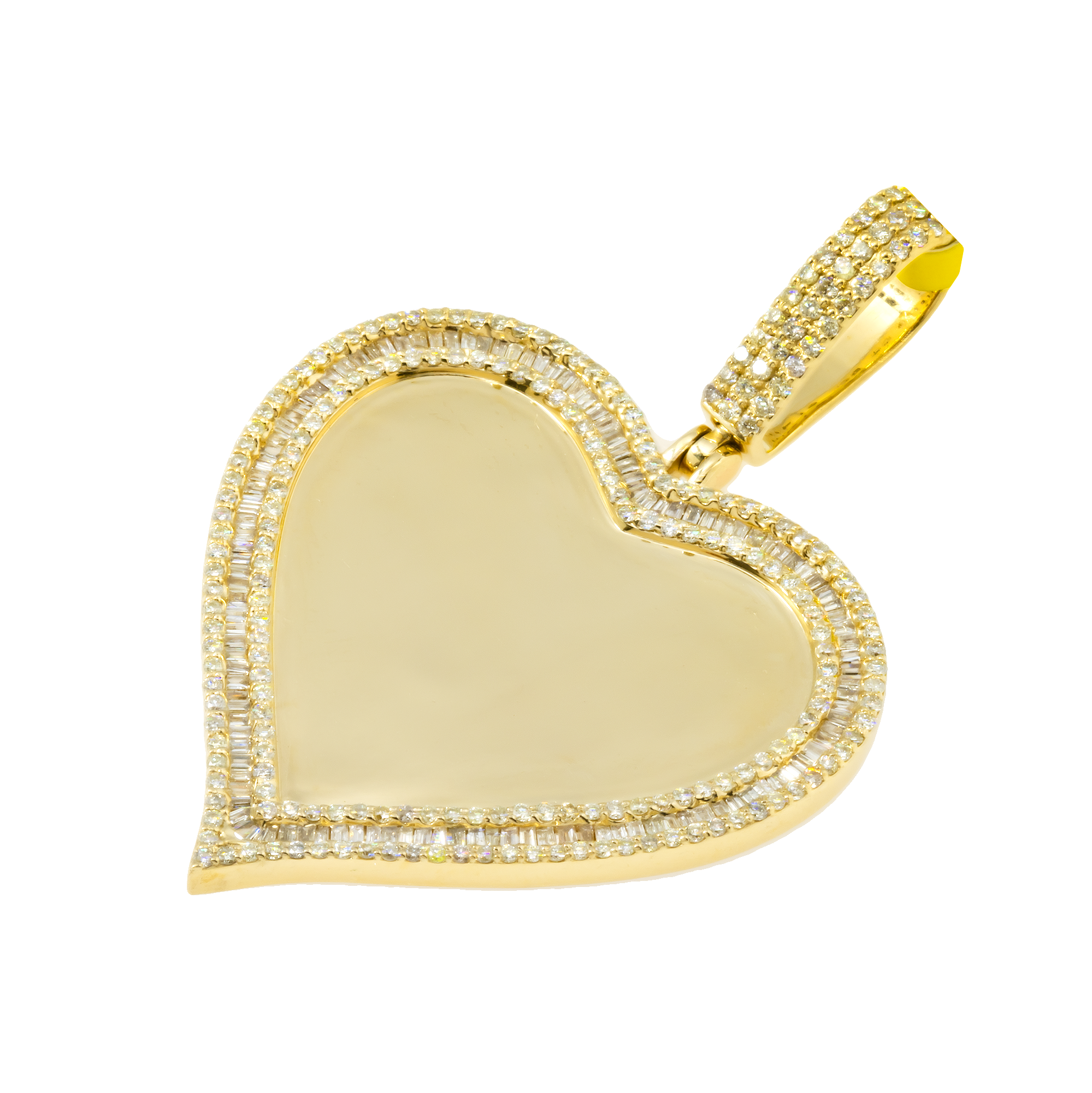10K GOLD BAGUETTE & ROUND DIAMOND HEART PICTURE PENDANT 1.44 CT