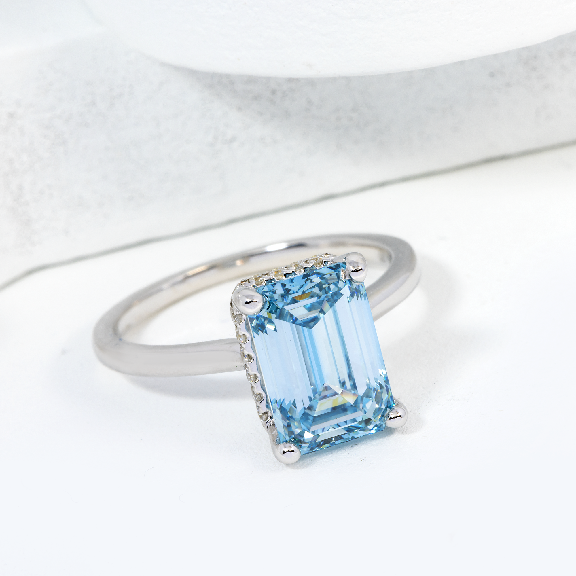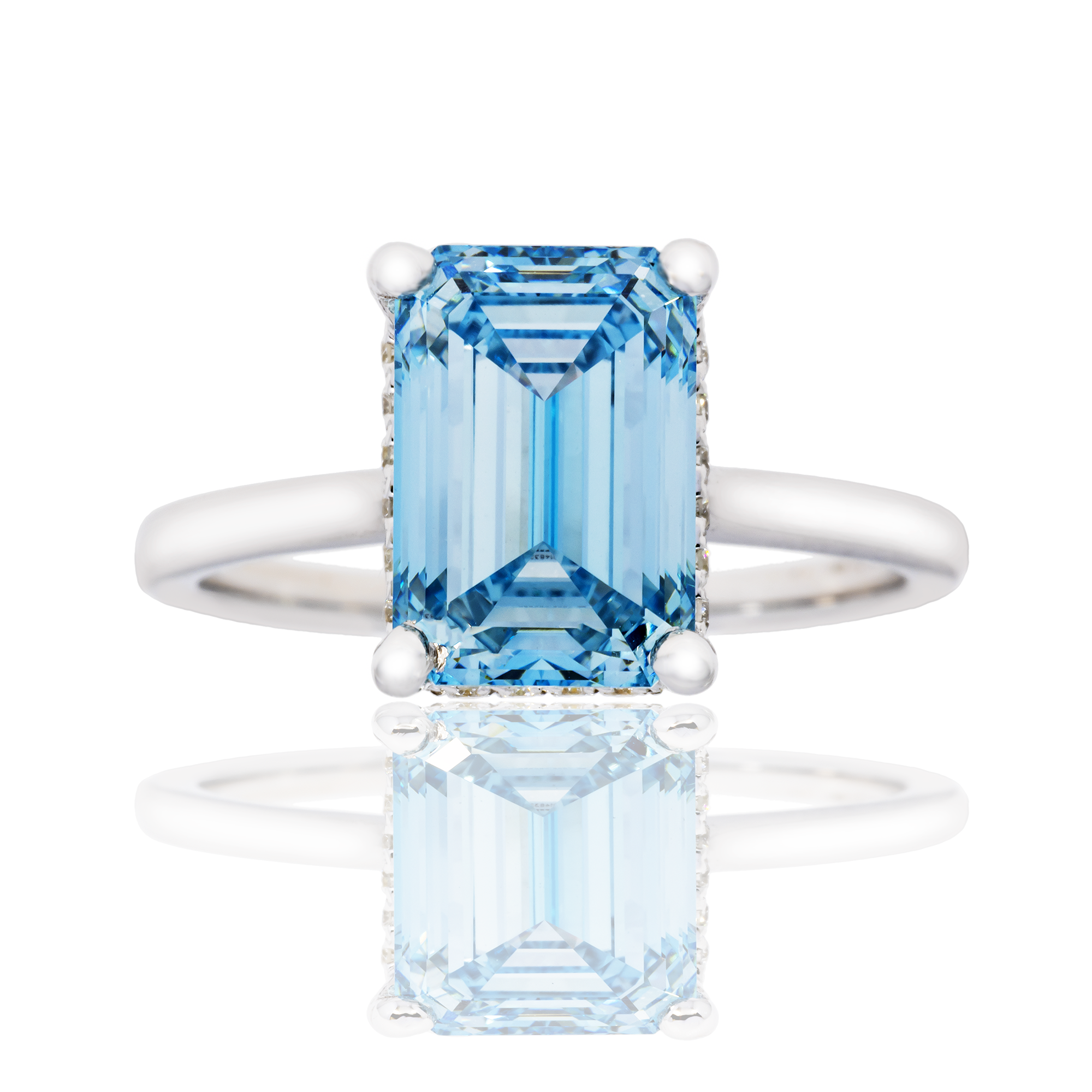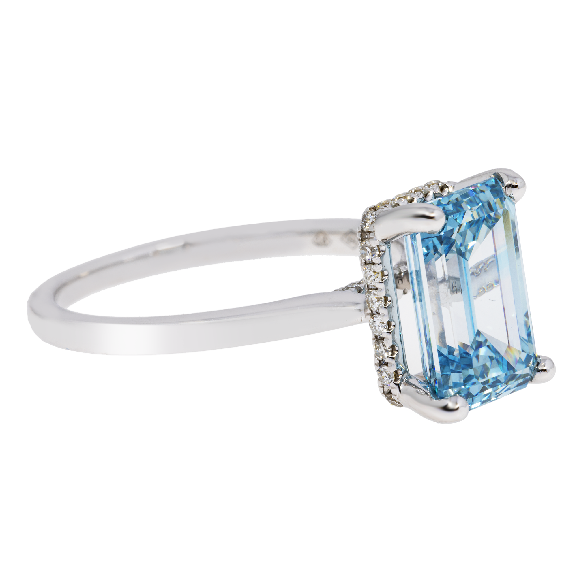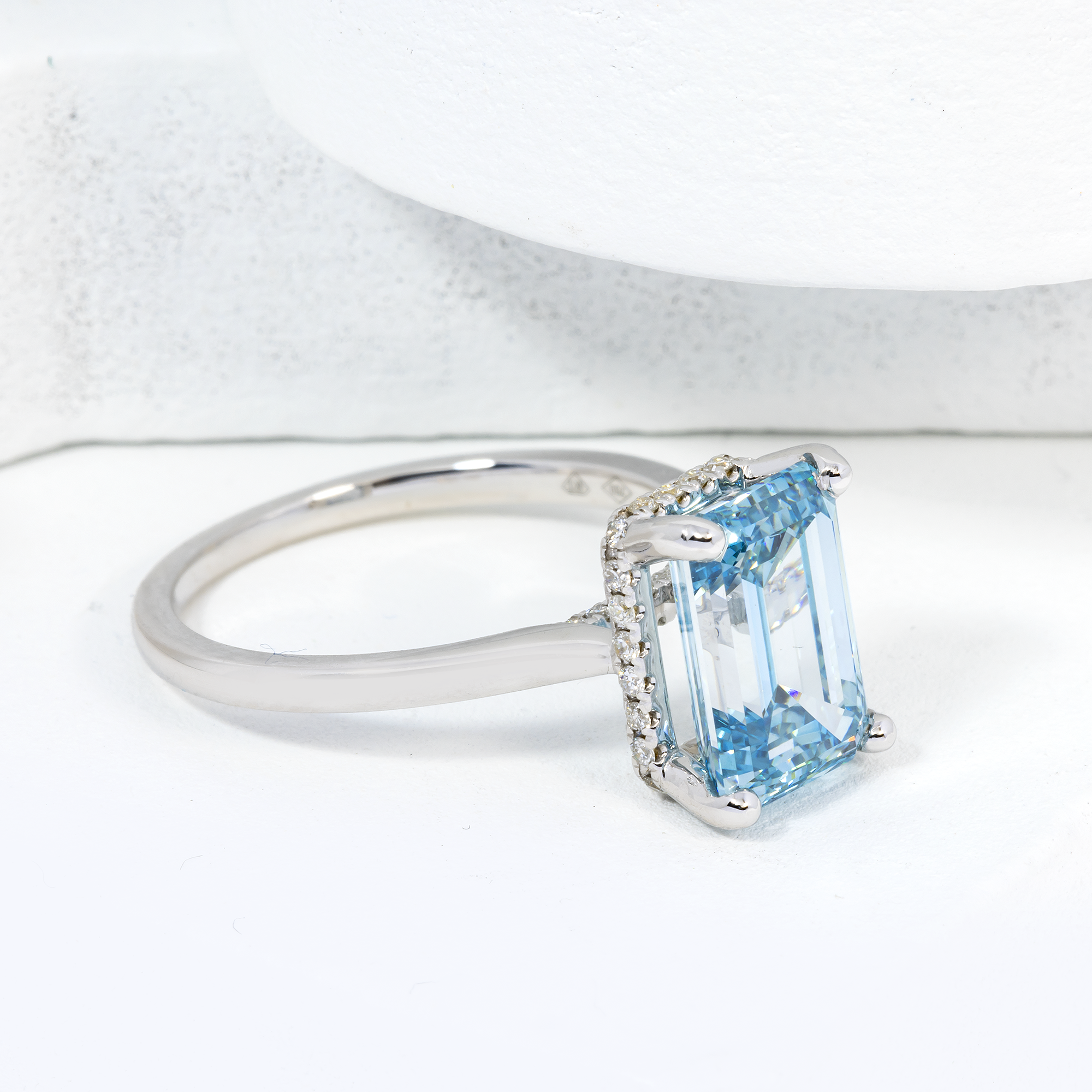 18K GOLD BLUE EMERALD AND ROUND DIAMOND HALO ENGAGEMENT RING 0.16 CT