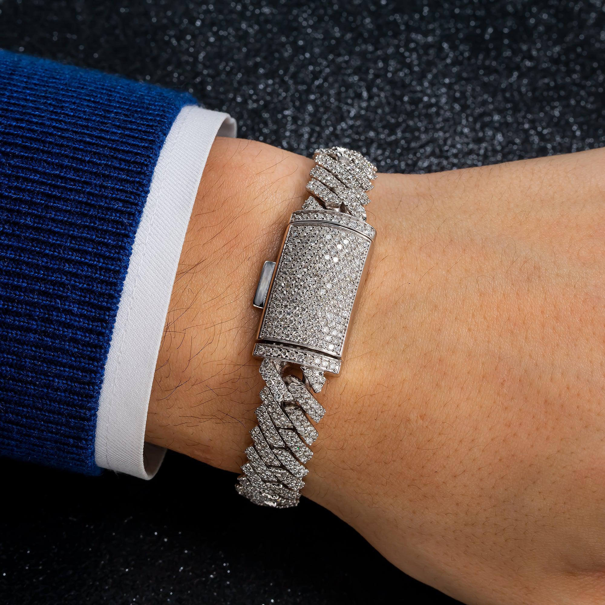 14K GOLD DIAMOND 8"/13MM CUBAN LINK BRACELET 11.20 CT