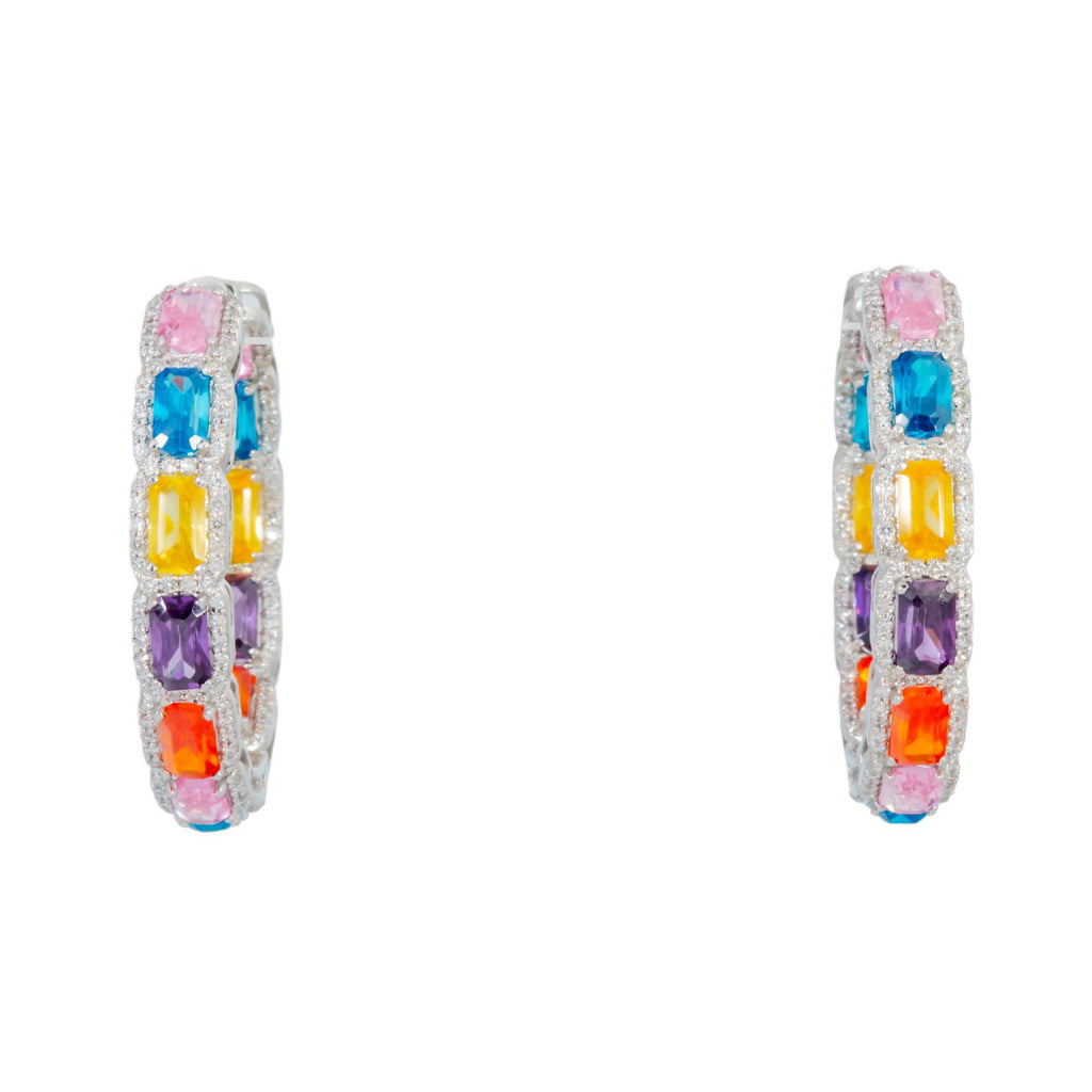 14K GOLD DIAMOND AND GEMSTONE HOOP EARRINGS 1.39 CTW