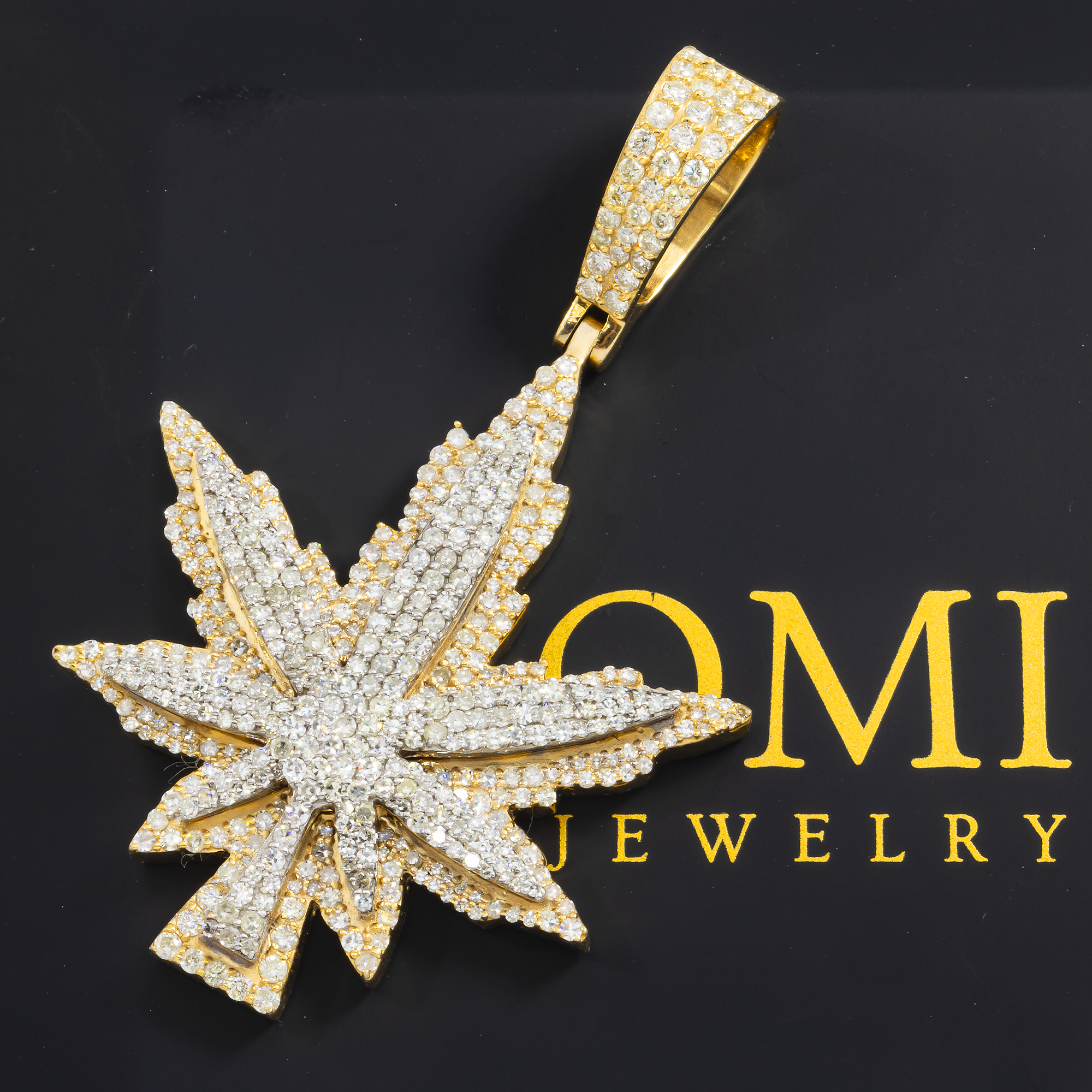14K GOLD DIAMOND CANNABIS LEAF PENDANT 3.00 CT