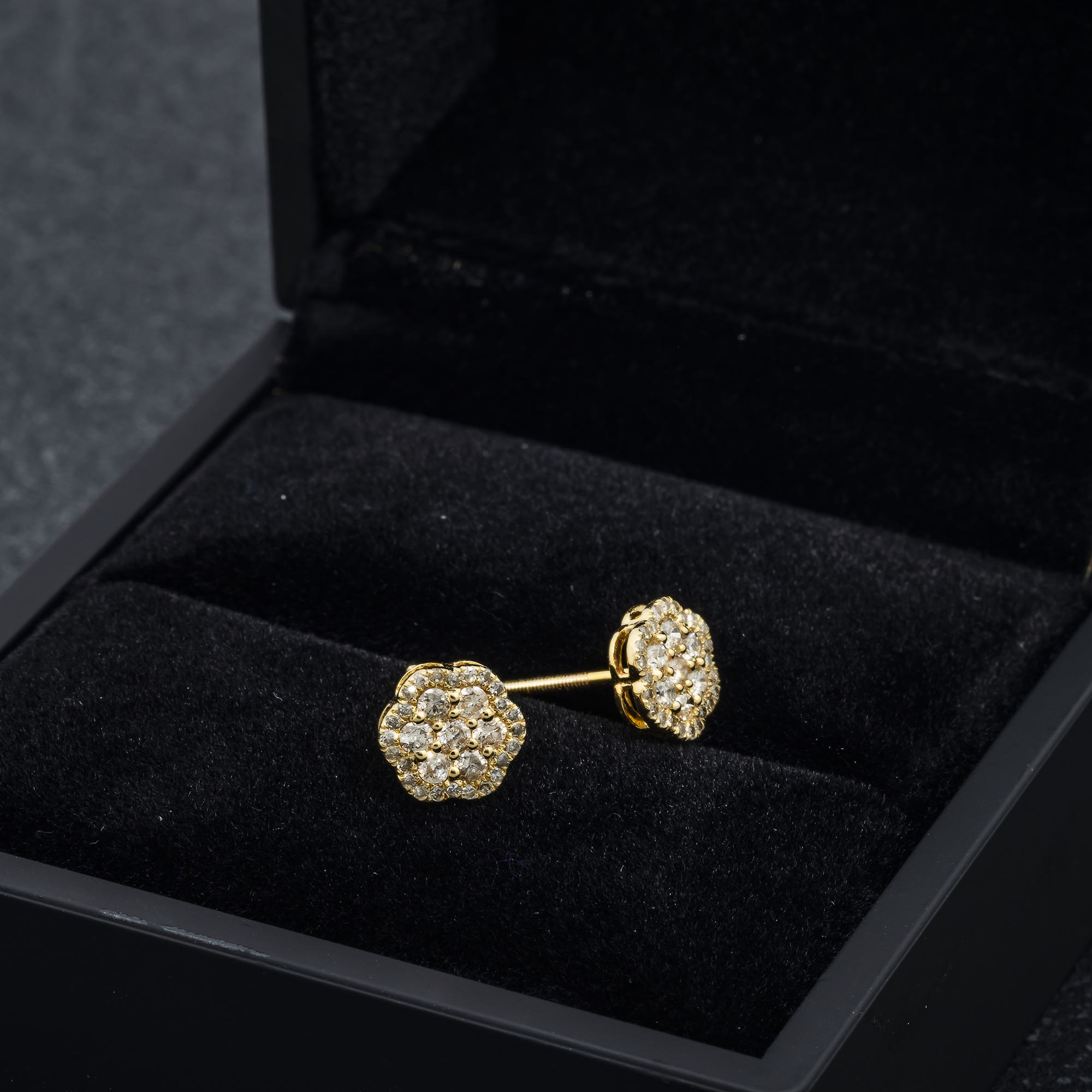 14K GOLD DIAMOND CLUSTER FLOWER SHAPE EARRINGS 0.64 CTW