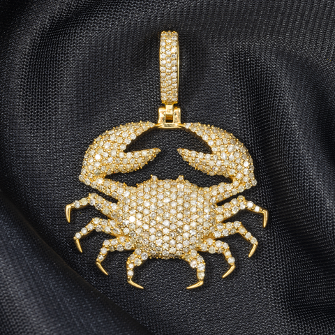 10K GOLD DIAMOND CRAB CANCER ZODIAC SIGN PENDANT 2.60 CT