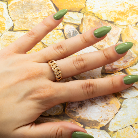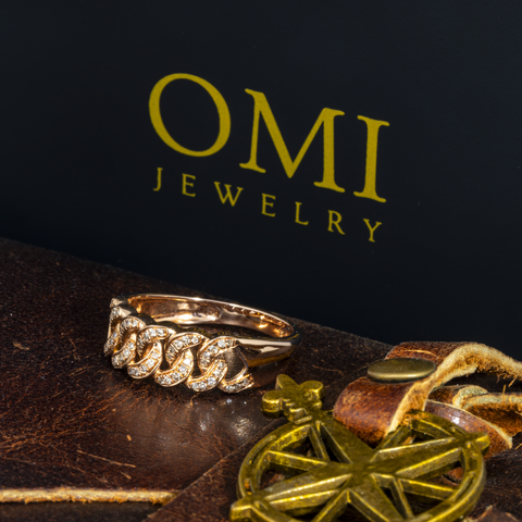14K GOLD DIAMOND CUBAN LINK RING 0.28 CT