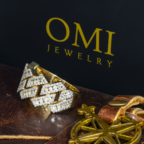 14K GOLD DIAMOND CUBAN LINK RING 2.10 CT