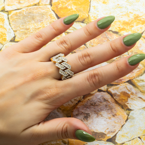 14K GOLD DIAMOND CUBAN LINK RING 2.10 CT
