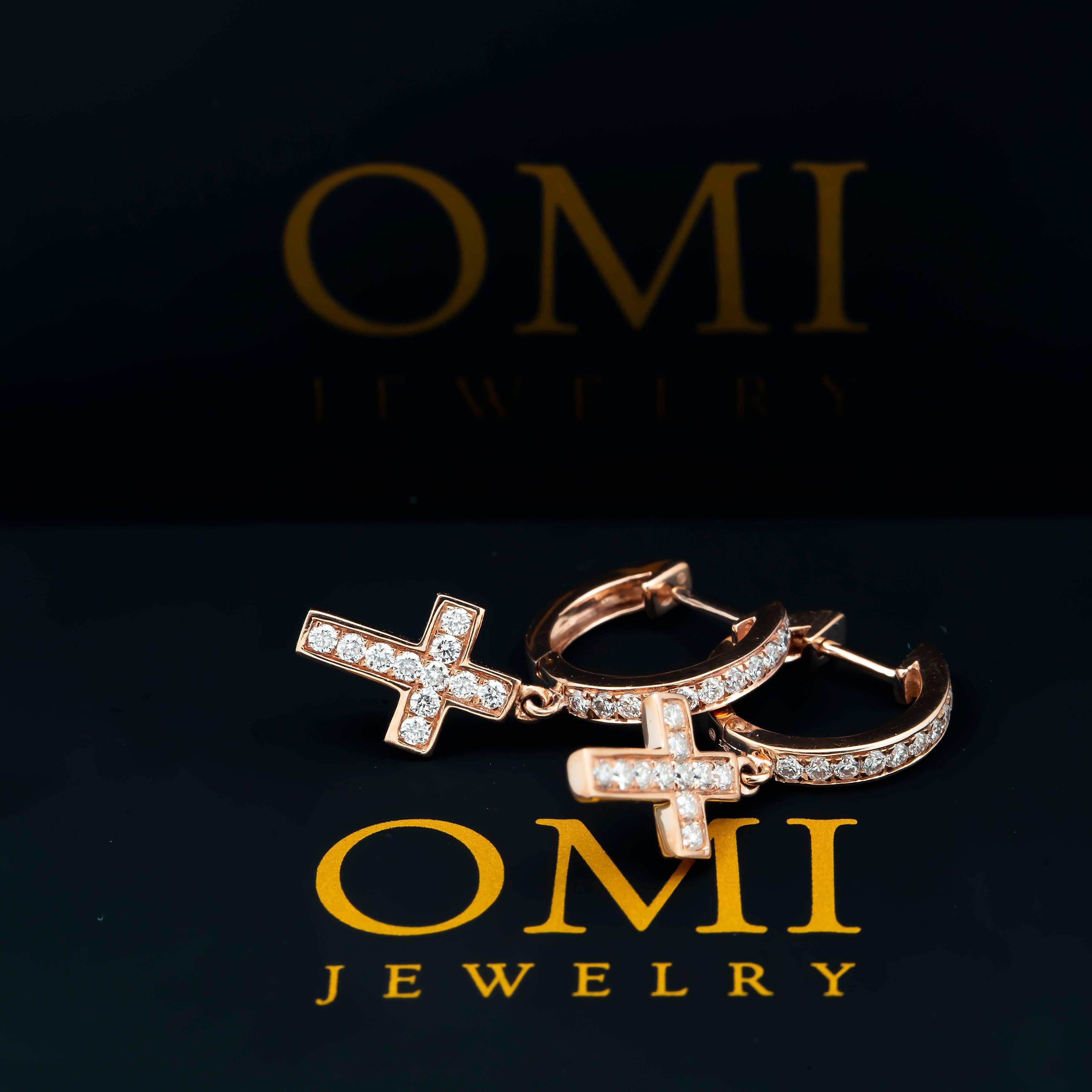 14K GOLD DIAMOND DANGLING CROSS EARRINGS 0.55 CTW