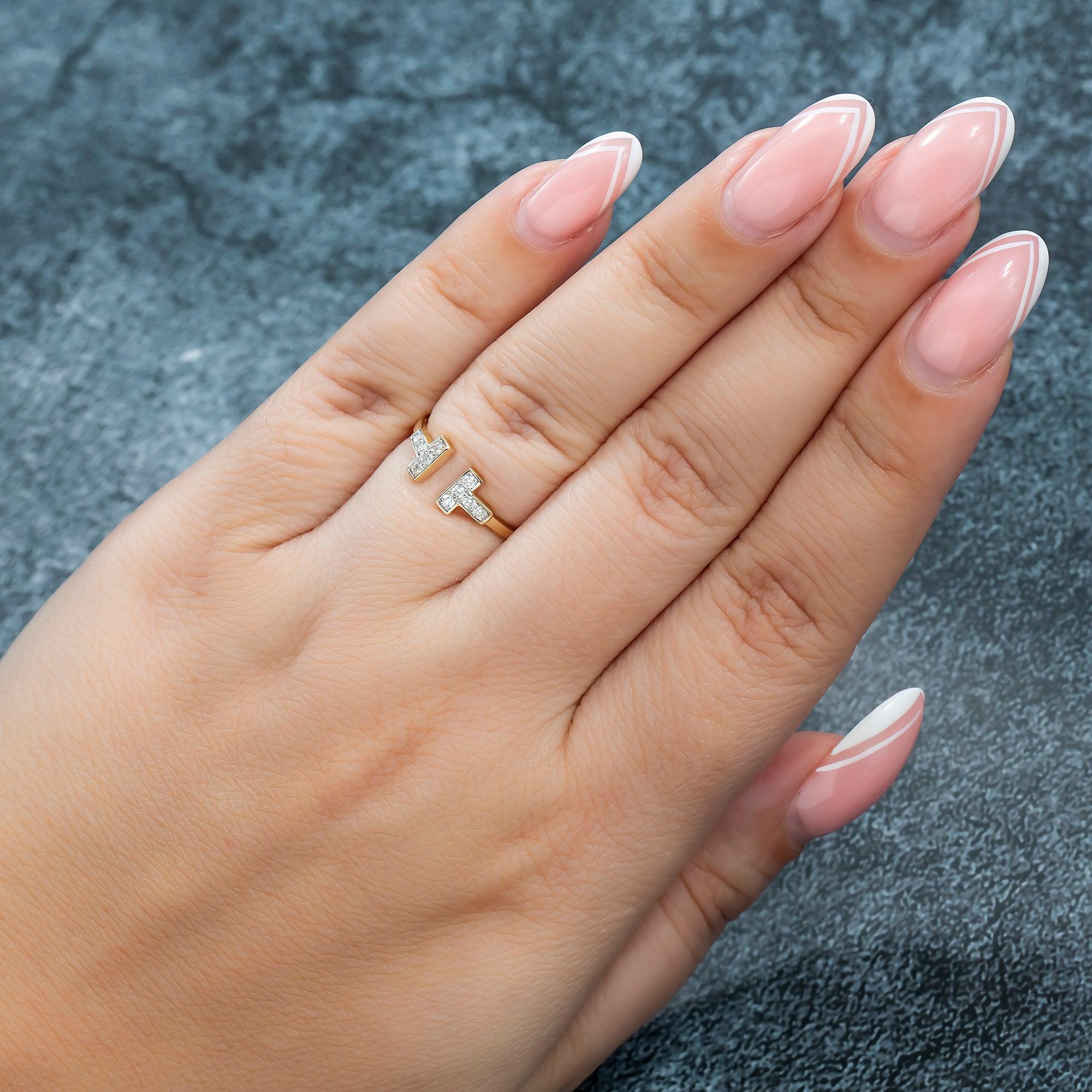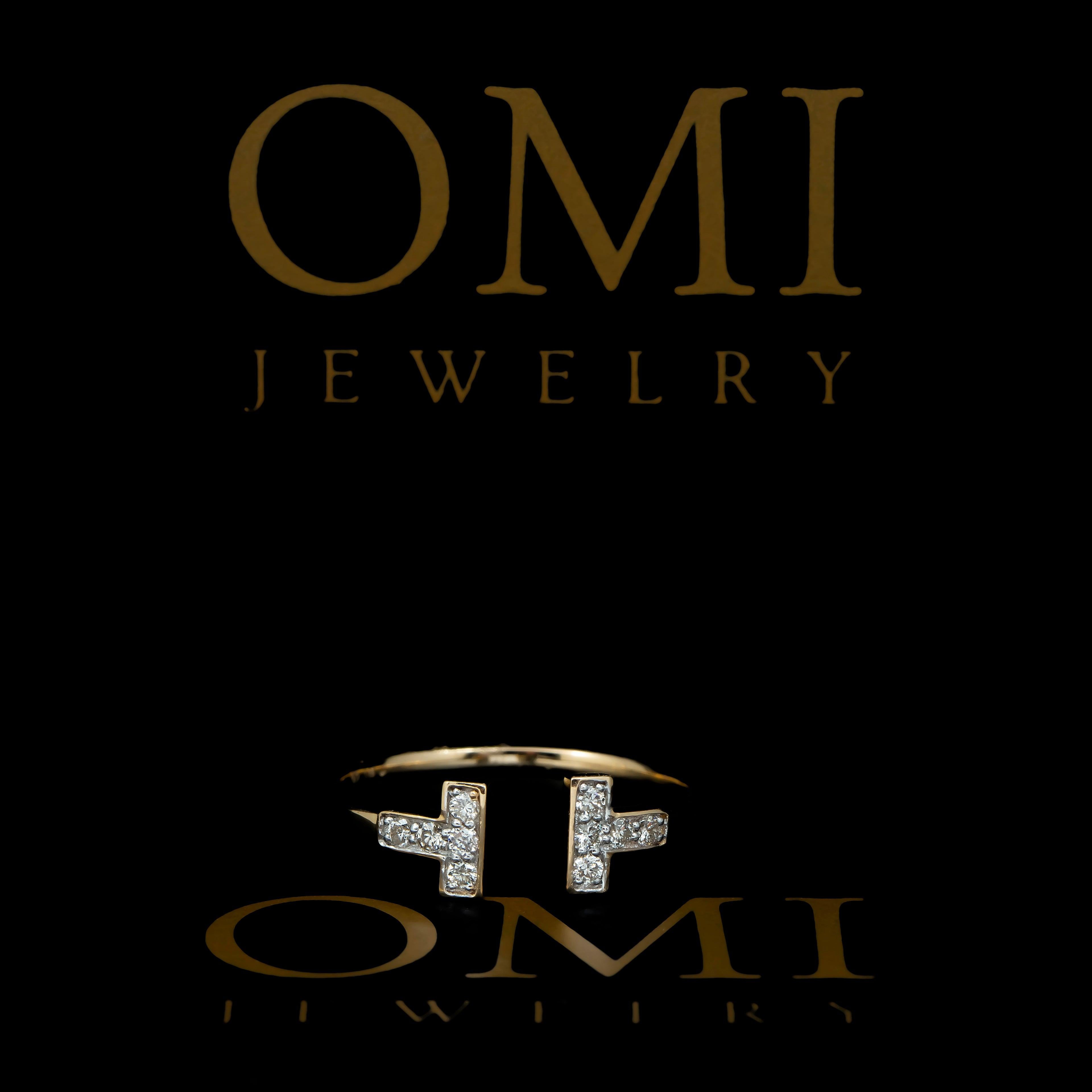 14K GOLD DIAMOND OPEN DESIGN T-SHAPE RING 0.15 CT