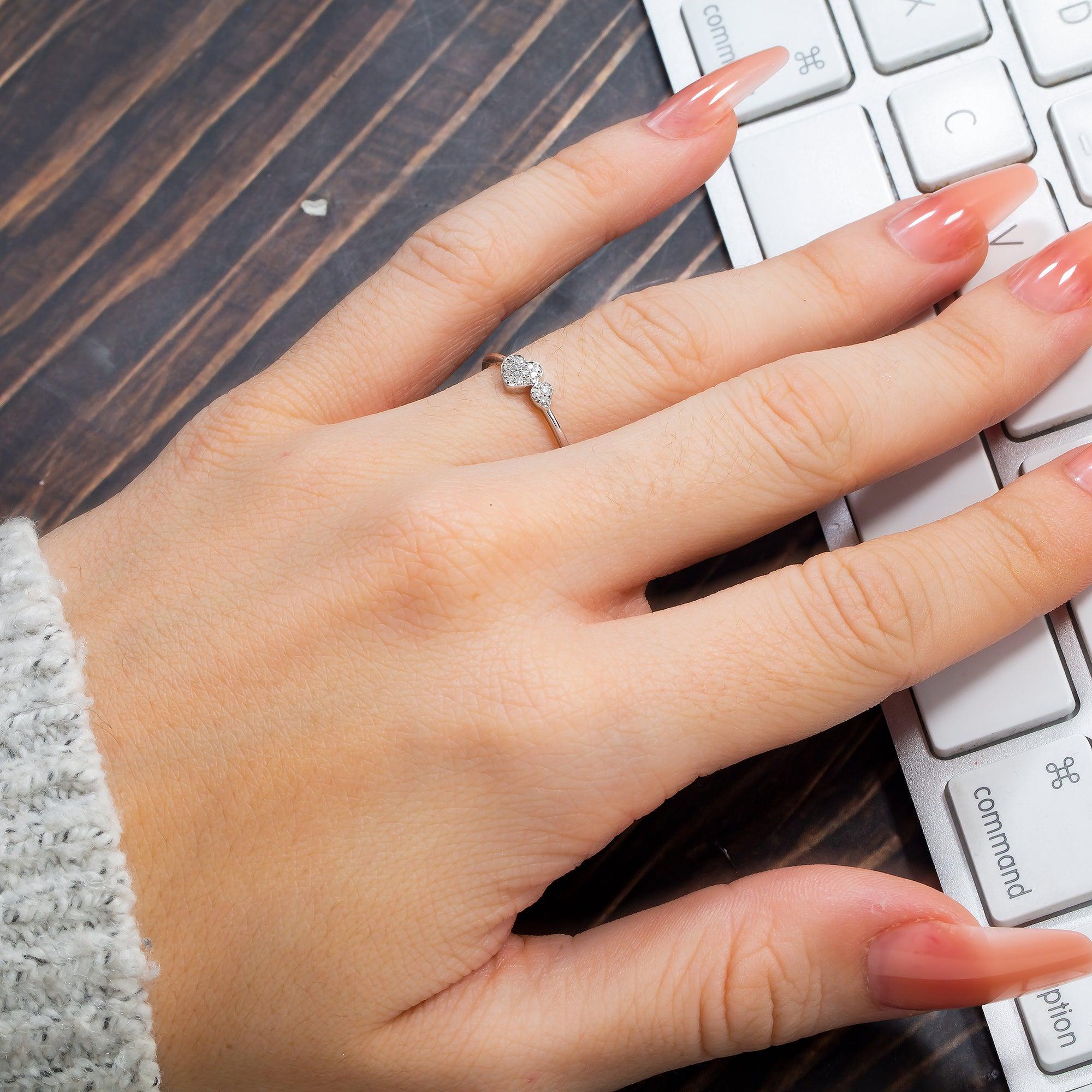 14K GOLD DOUBLE HEART RING 0.10 CT