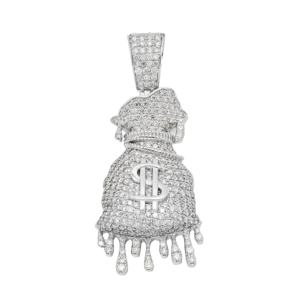 14K GOLD DIAMOND DRIPPING MONEY BAG PENDANT 3.75 CT