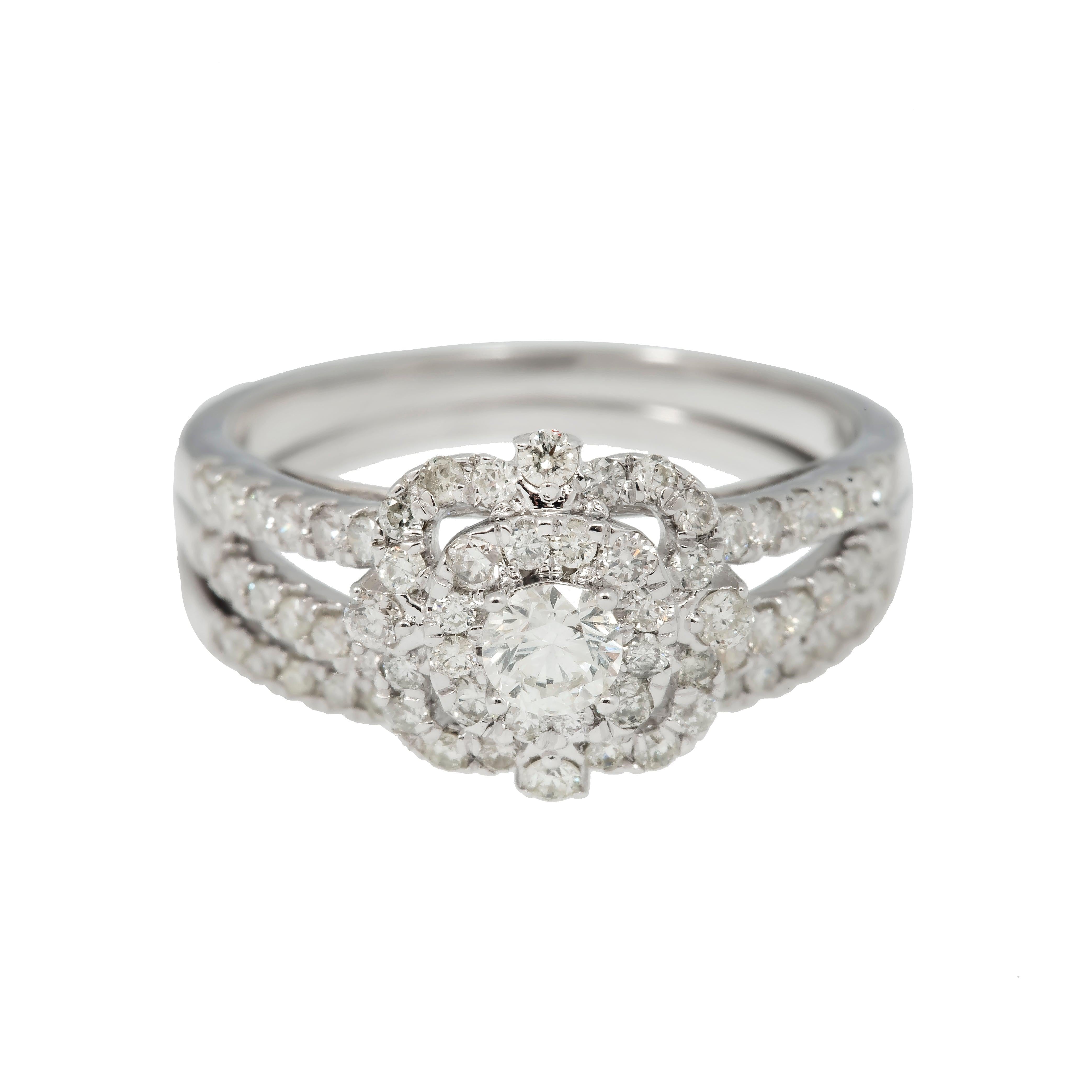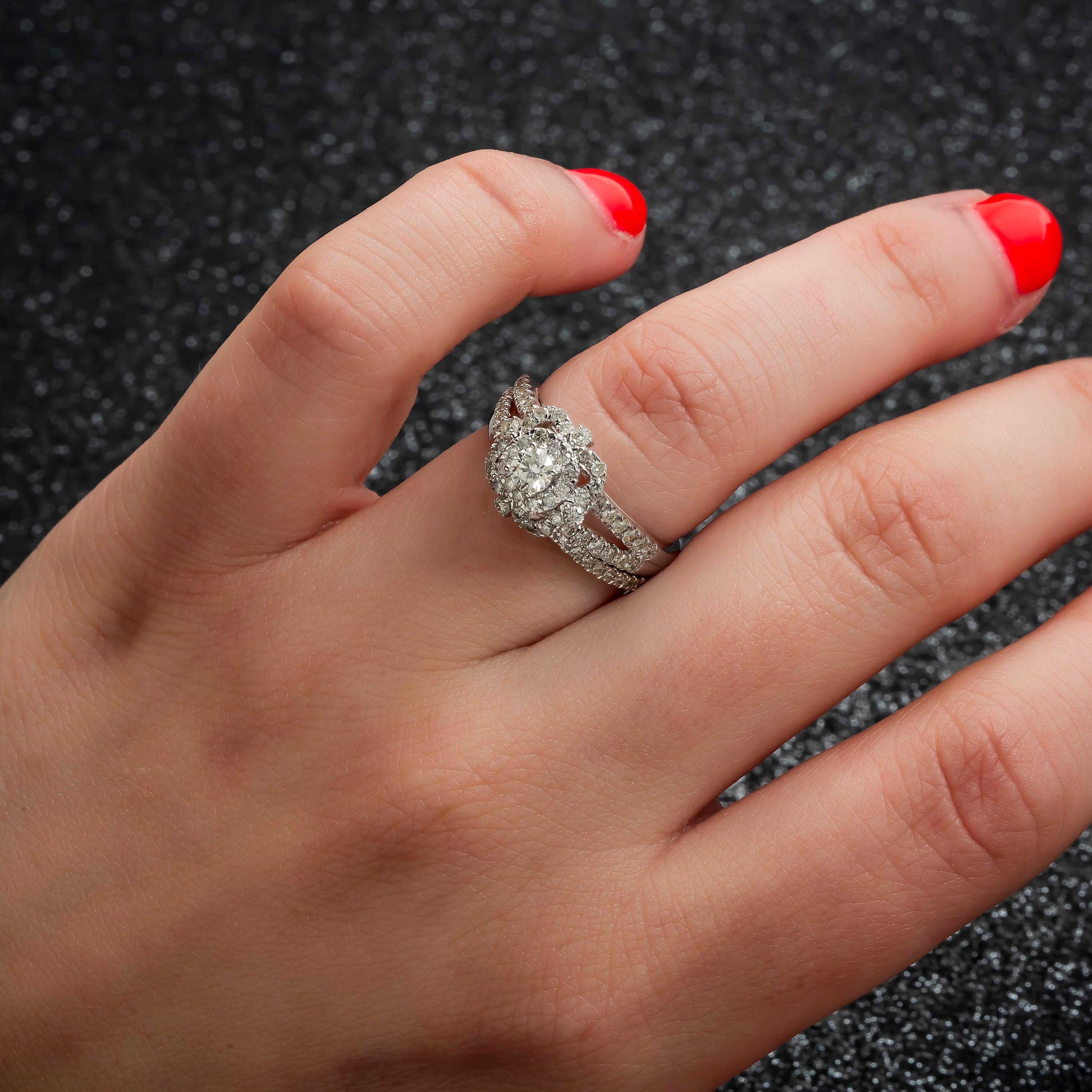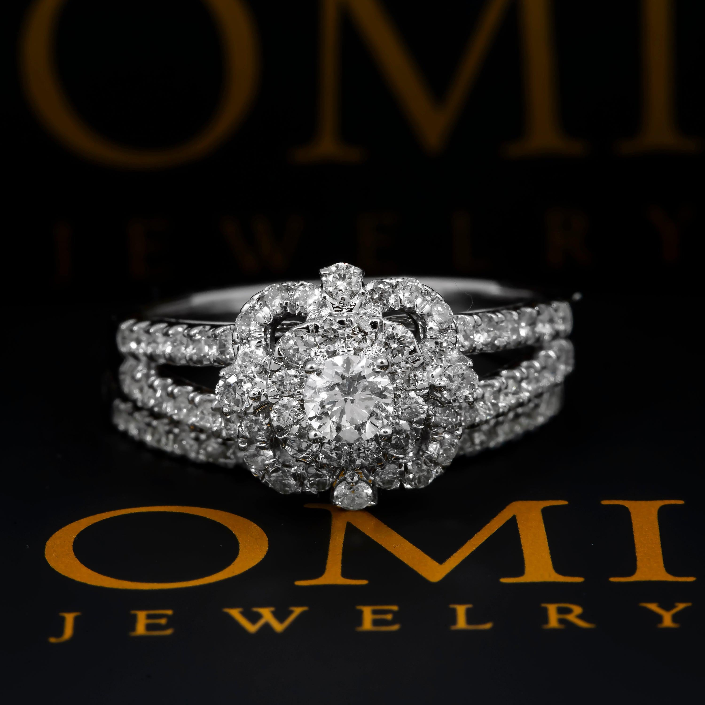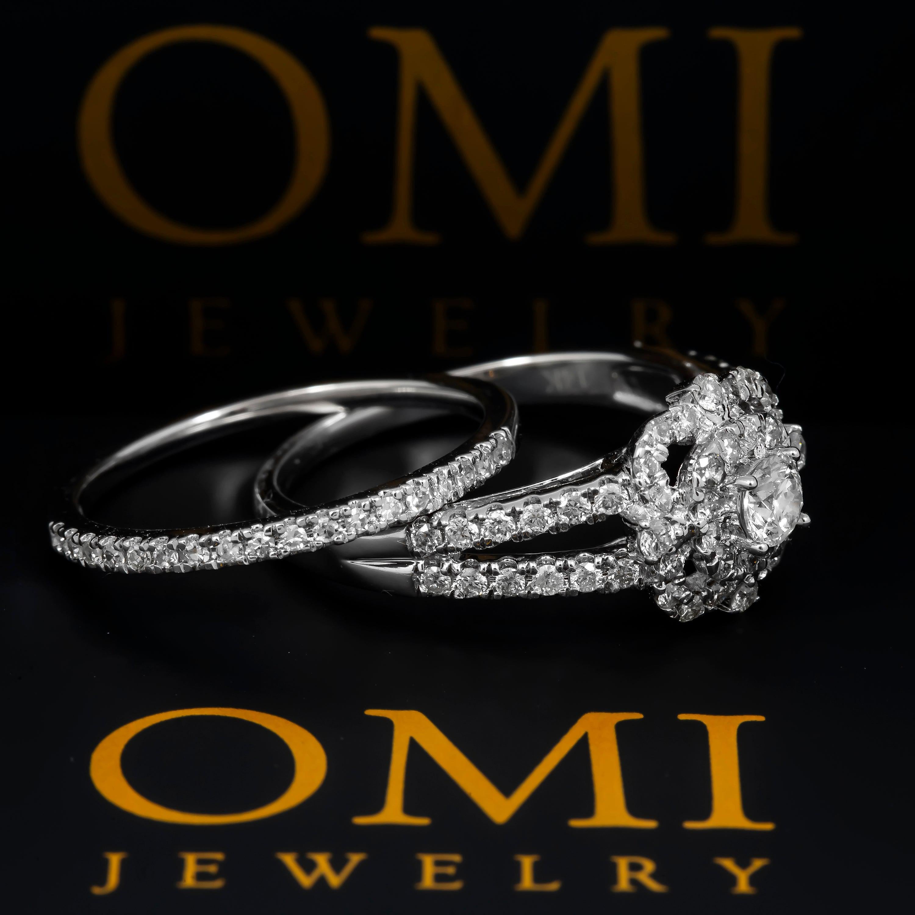14K GOLD FLOWER SET DIAMOND TIERED HALO BRIDAL SET 1.14 CTW