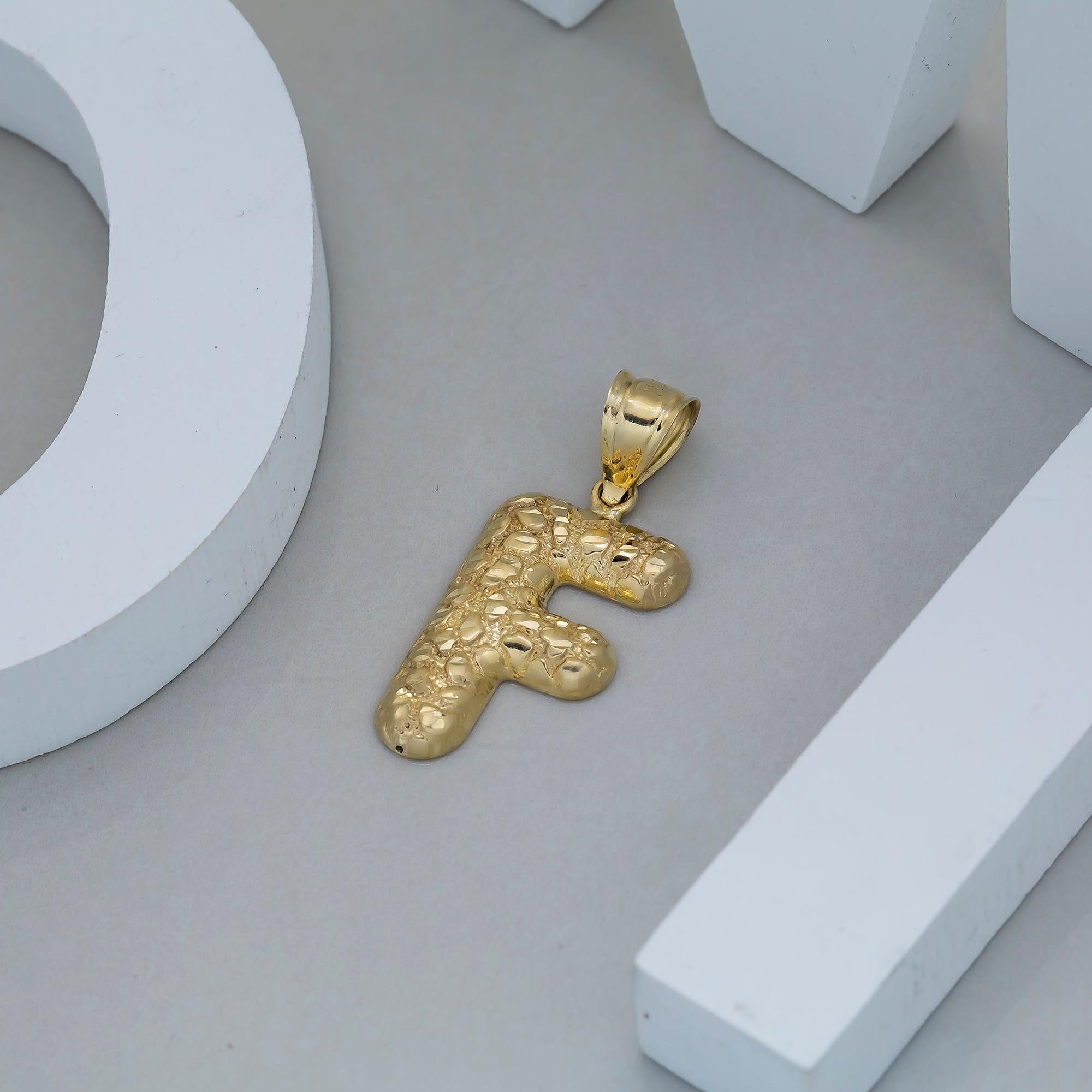 10K GOLD NUGGET INITIAL F PENDANT 1.9G