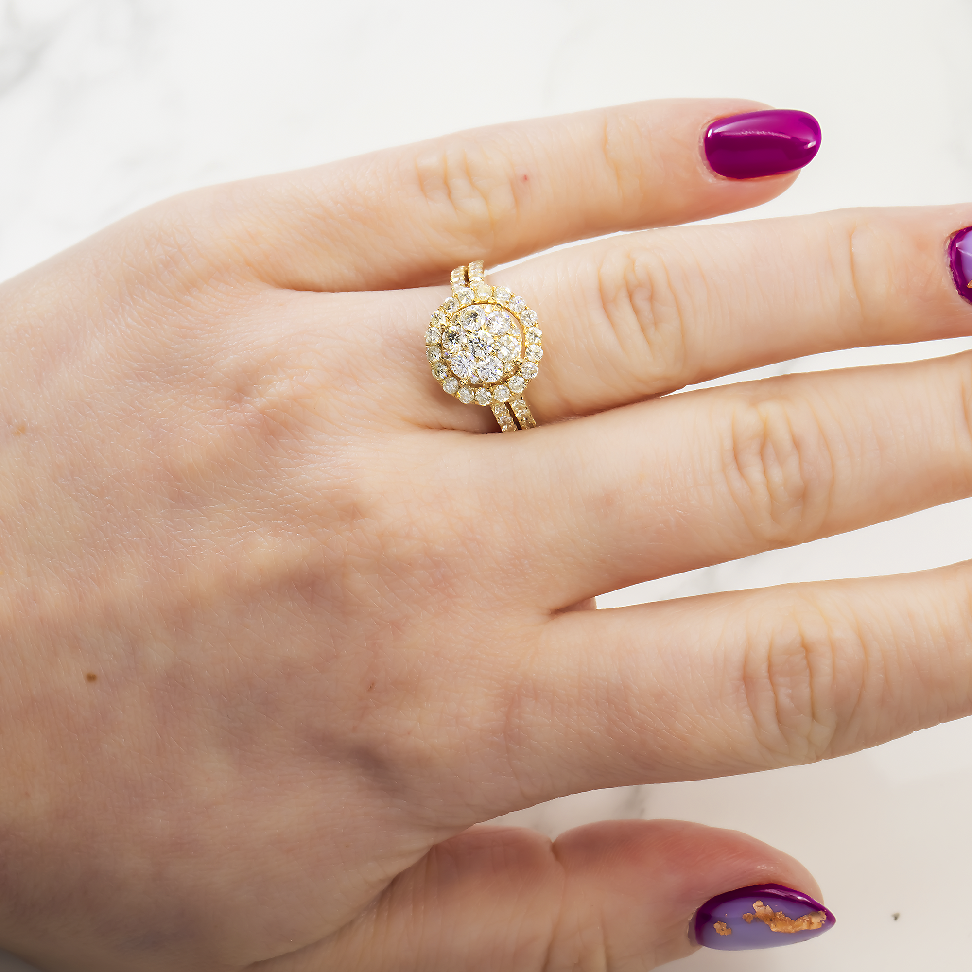 14K GOLD ROUND CUT HALO DIAMOND CLUSTER ENGAGEMENT RING 2.37 CTW
