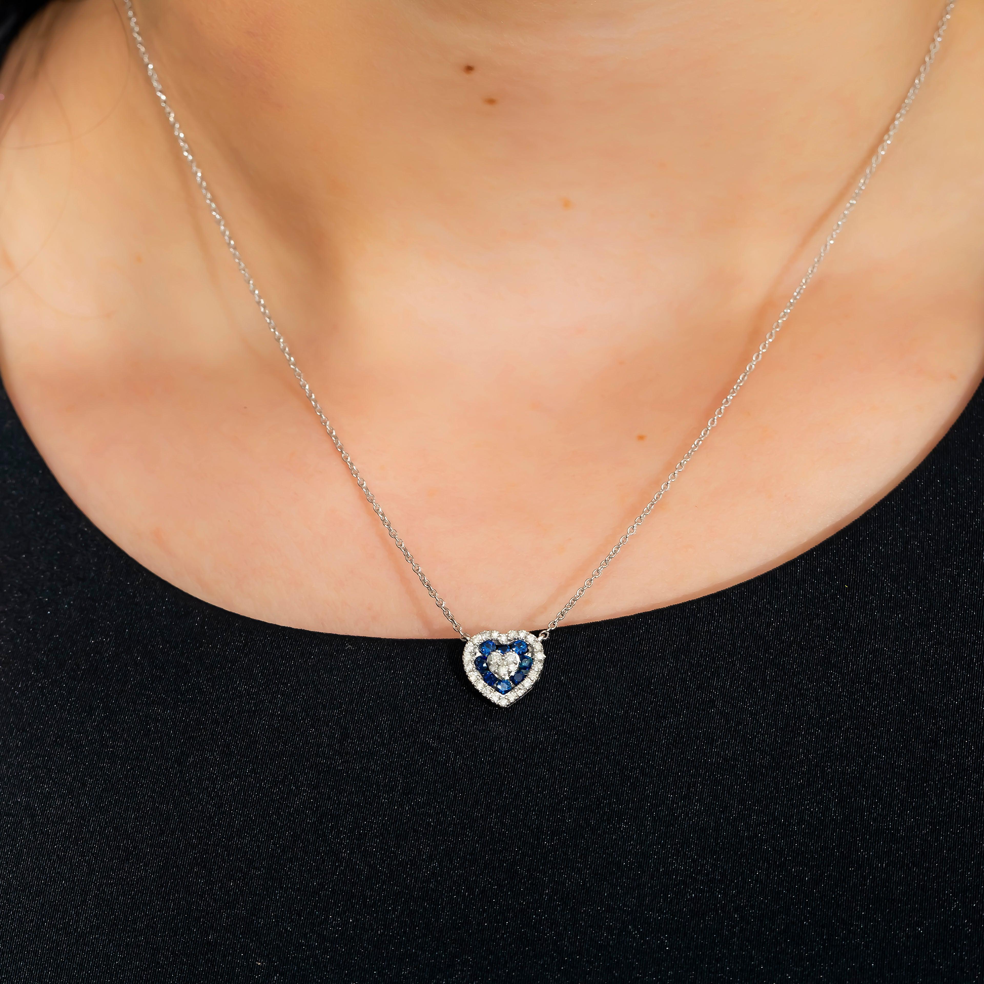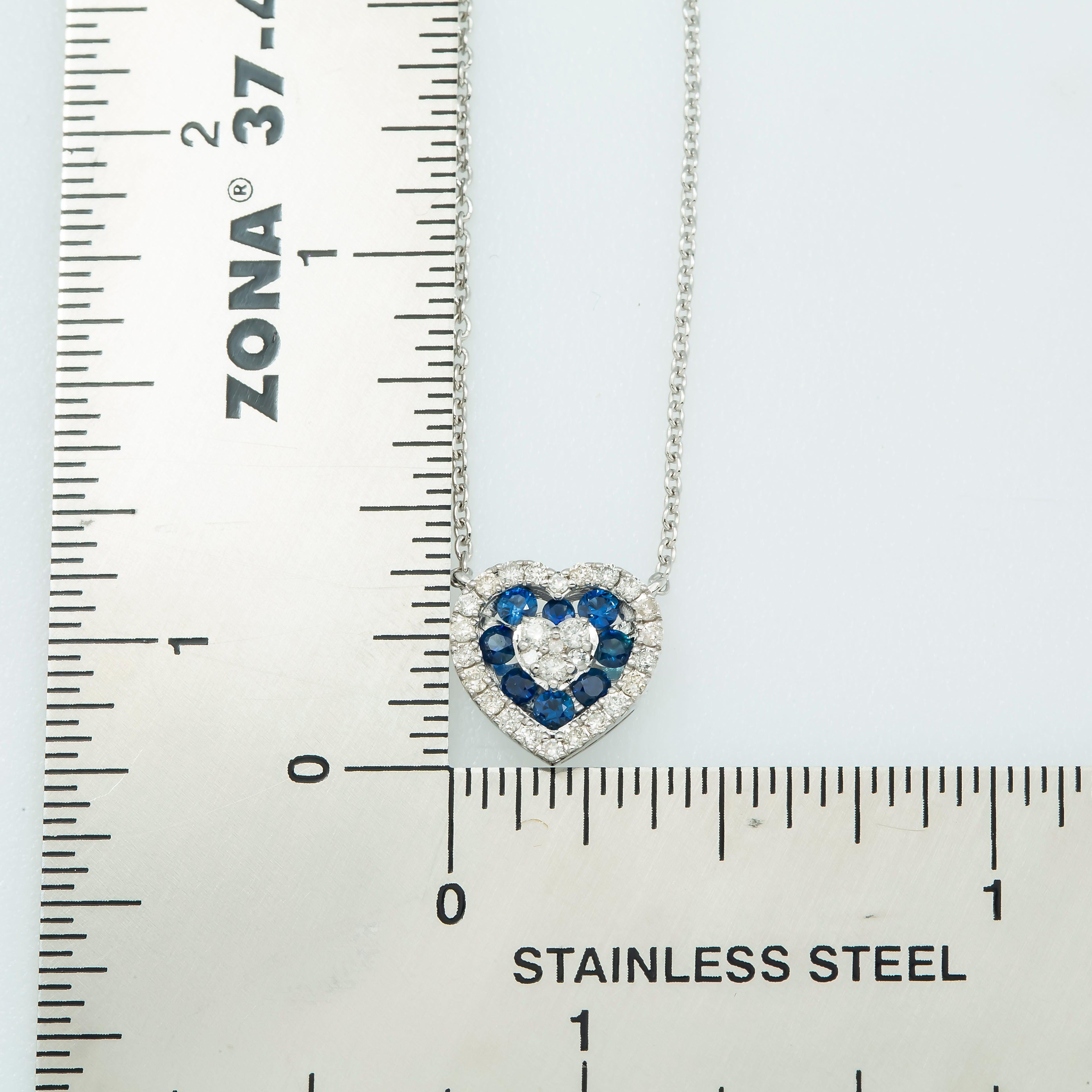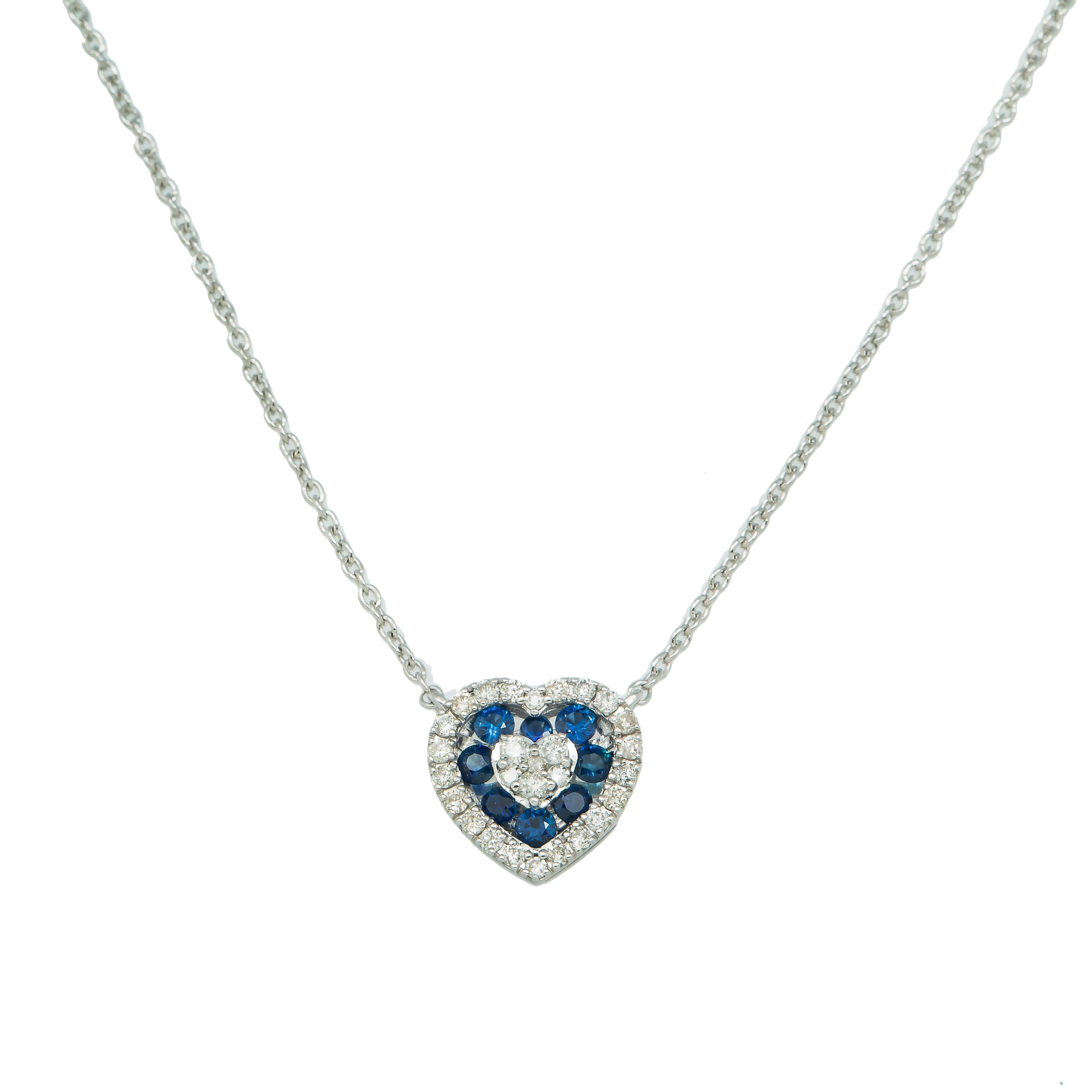 14K GOLD ROUND DIAMOND AND BLUE SAPPHIRE HEART NECKLACE 0.55 CTW