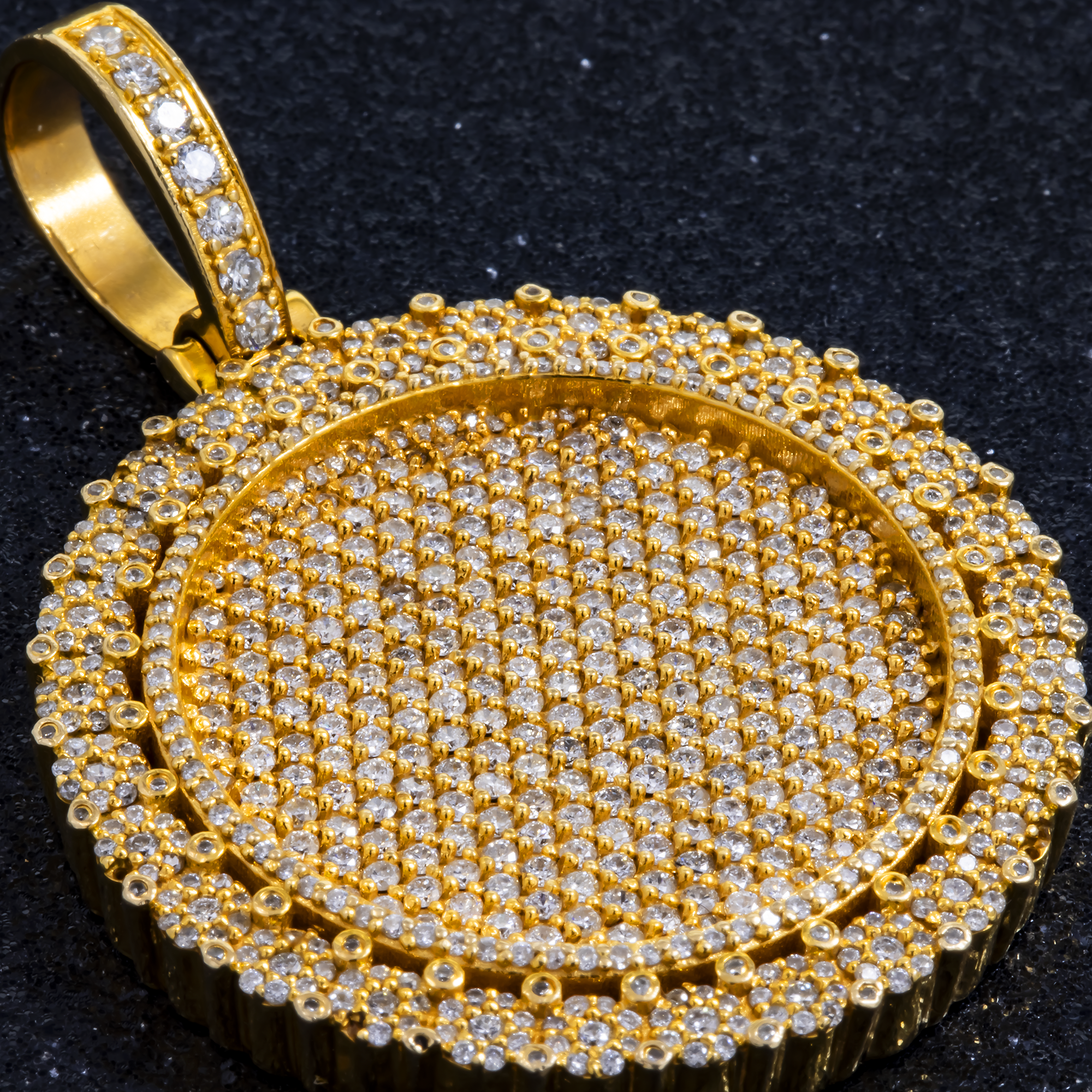 14K GOLD ROUND DIAMOND CIRCLE PENDANT 4.72 CT