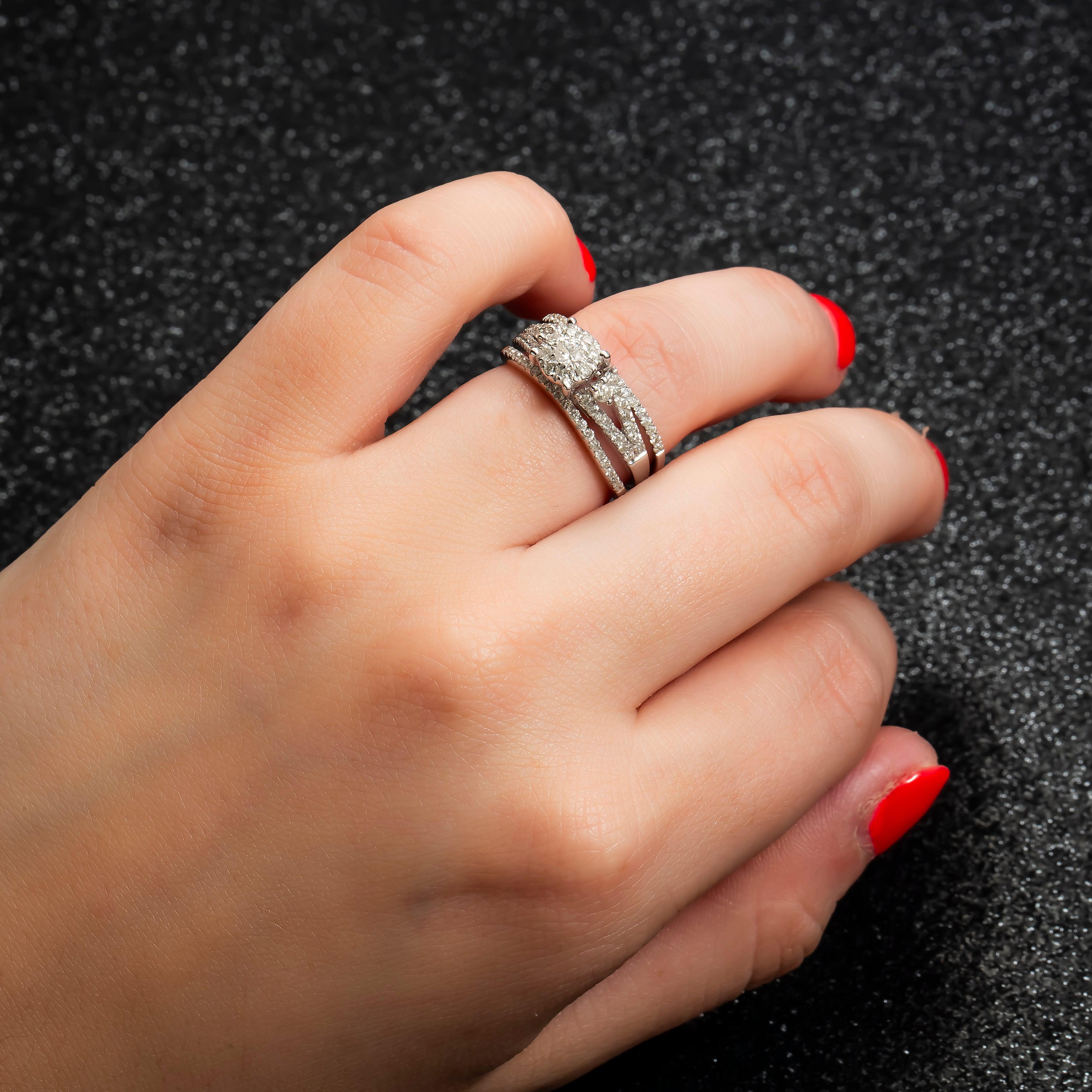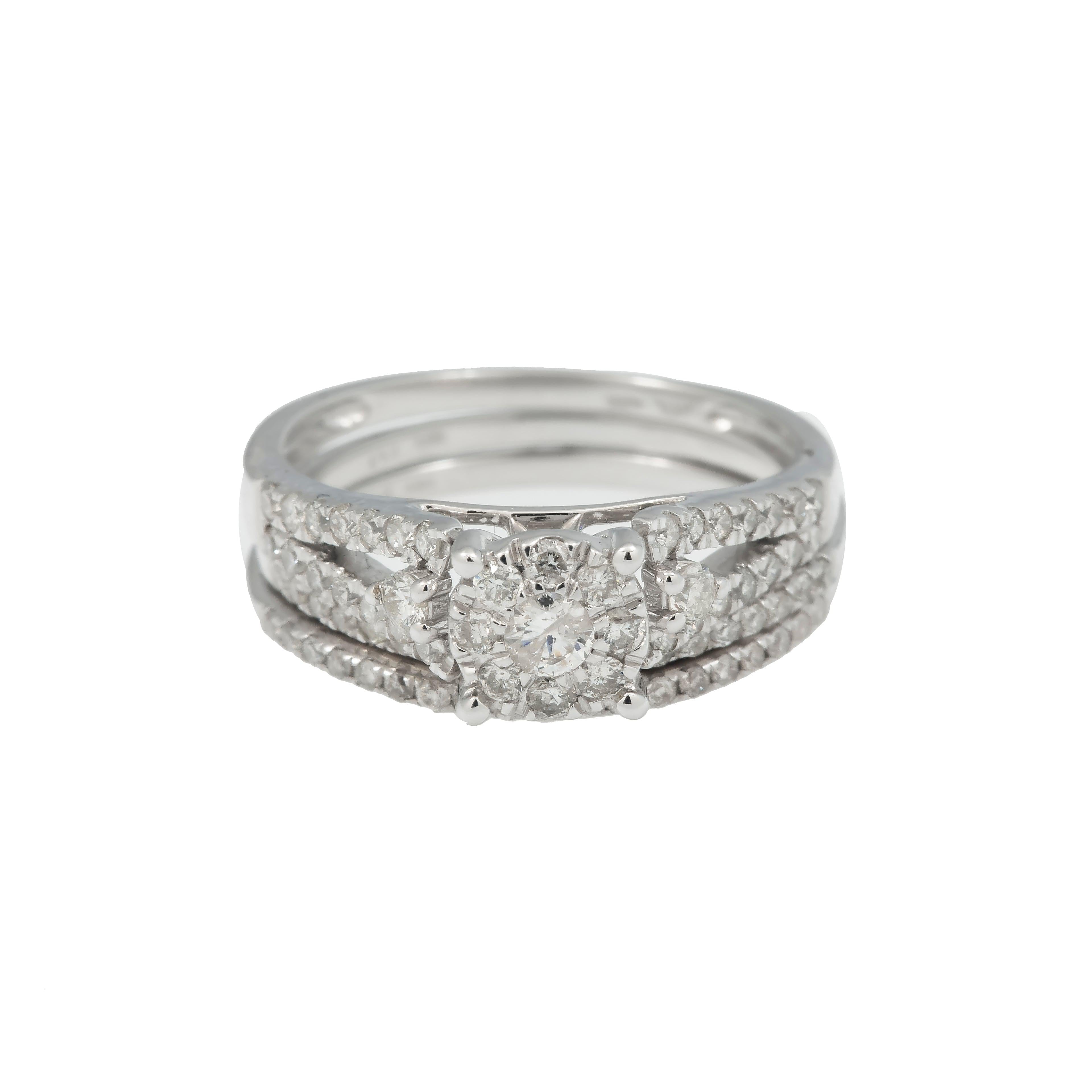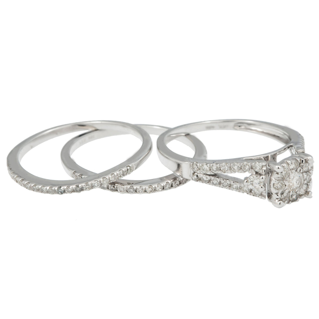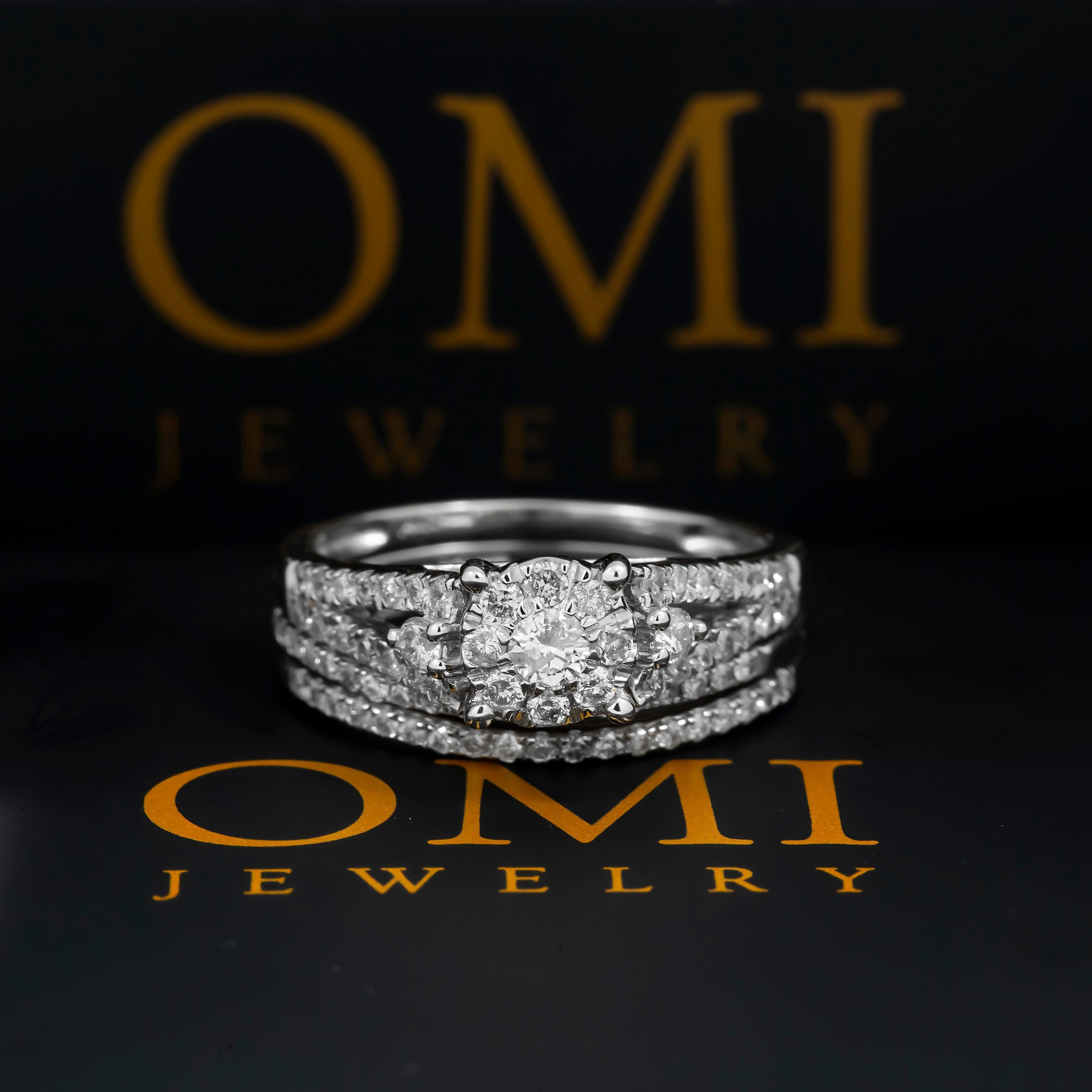 14K GOLD ROUND DIAMOND CLUSTER BRIDAL SET 1.25 CT