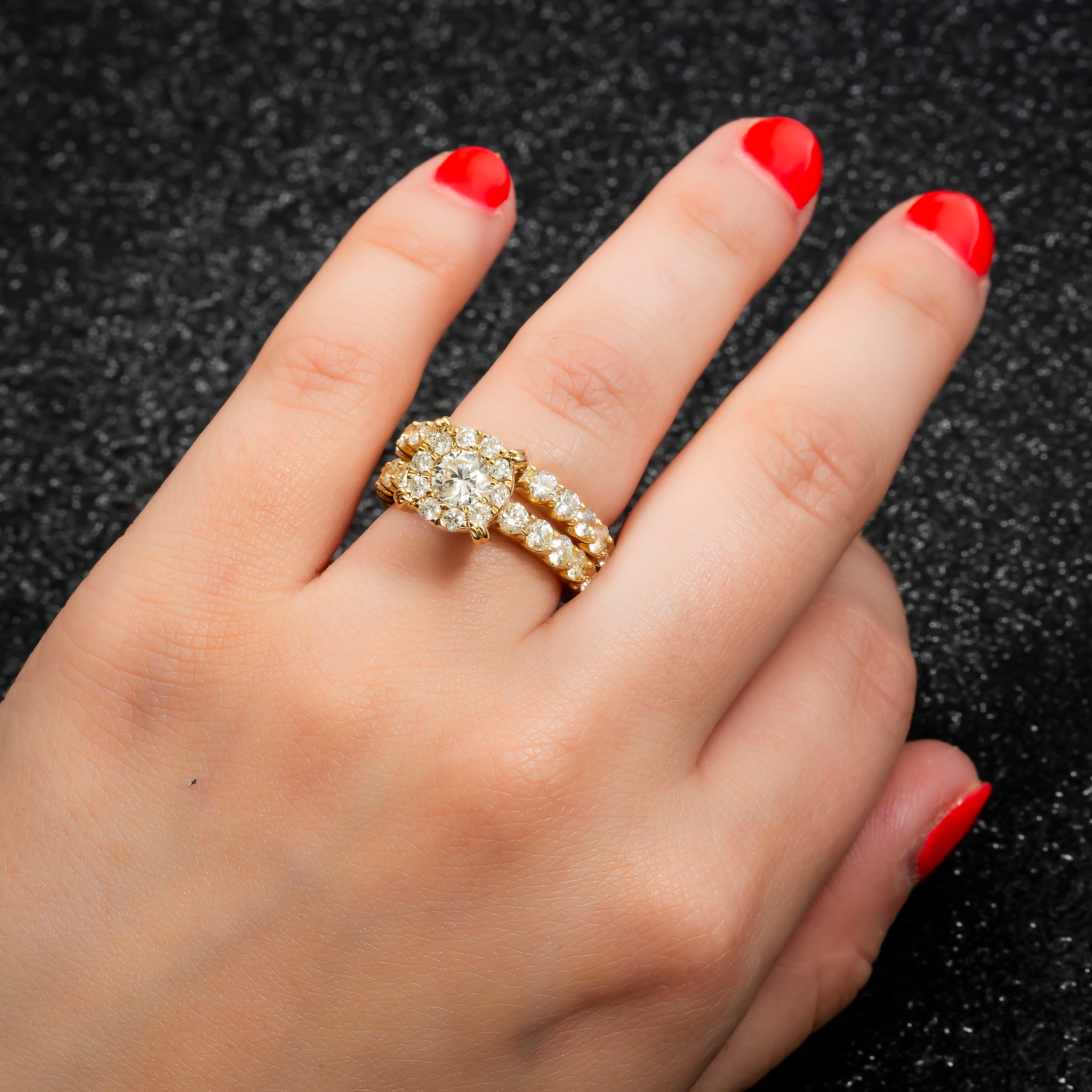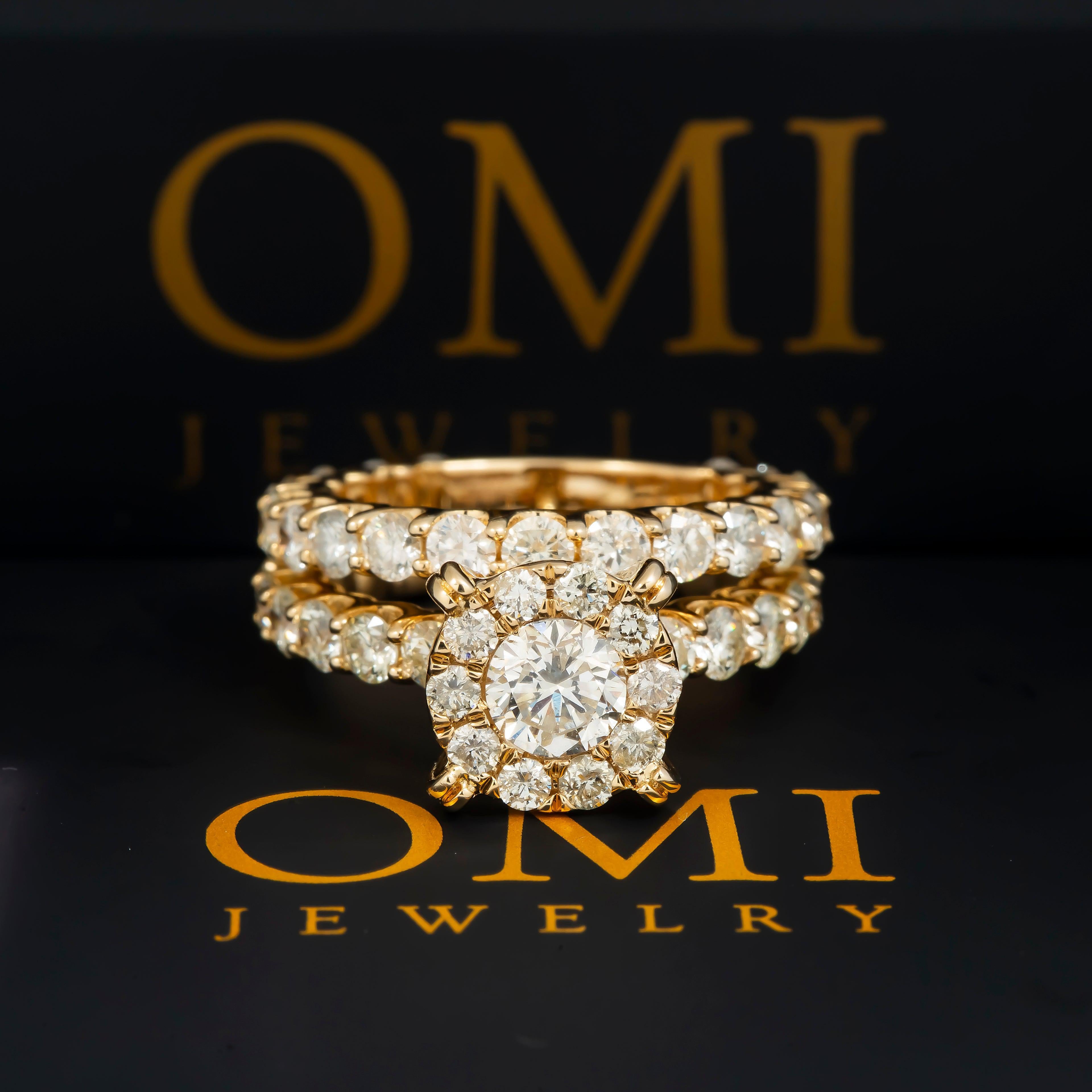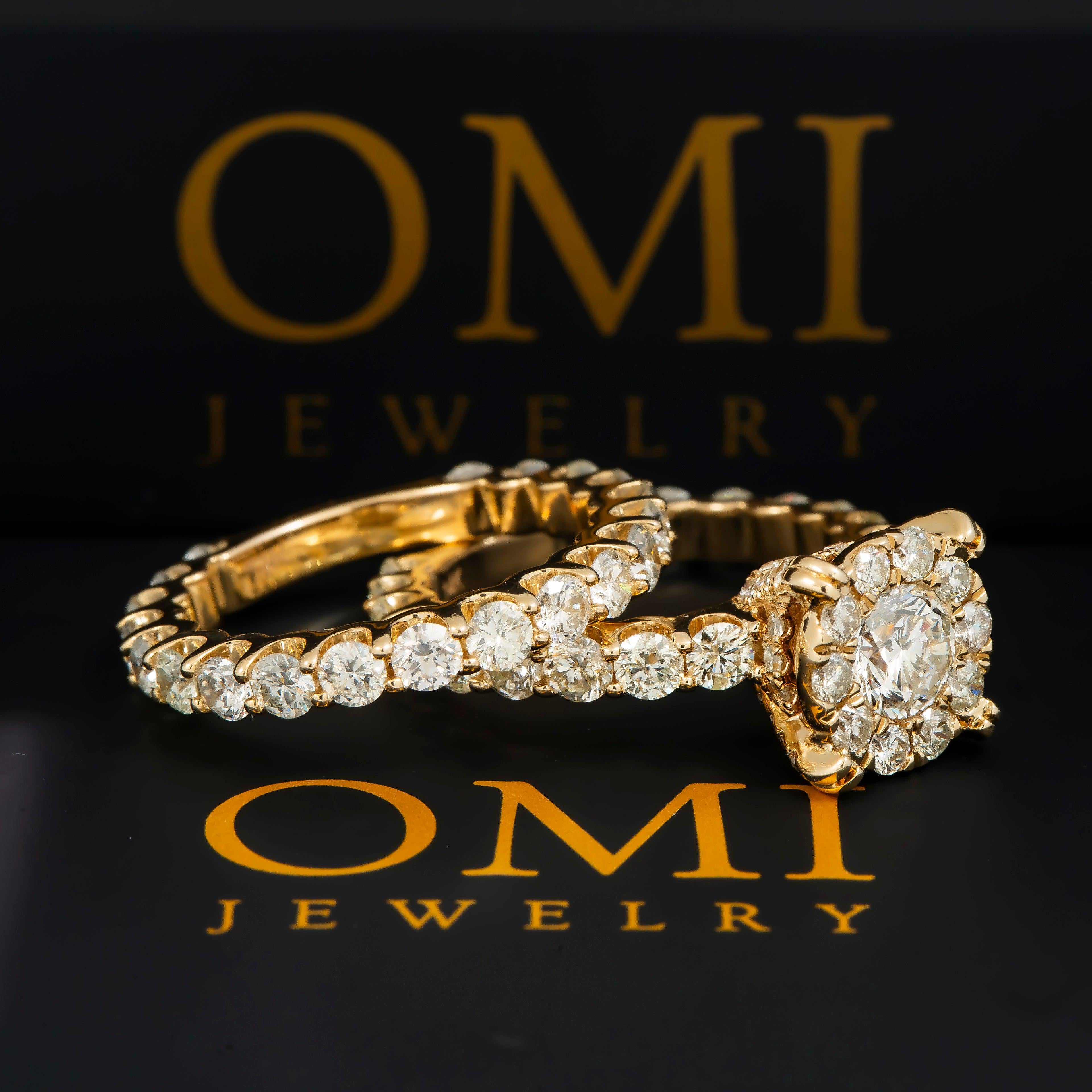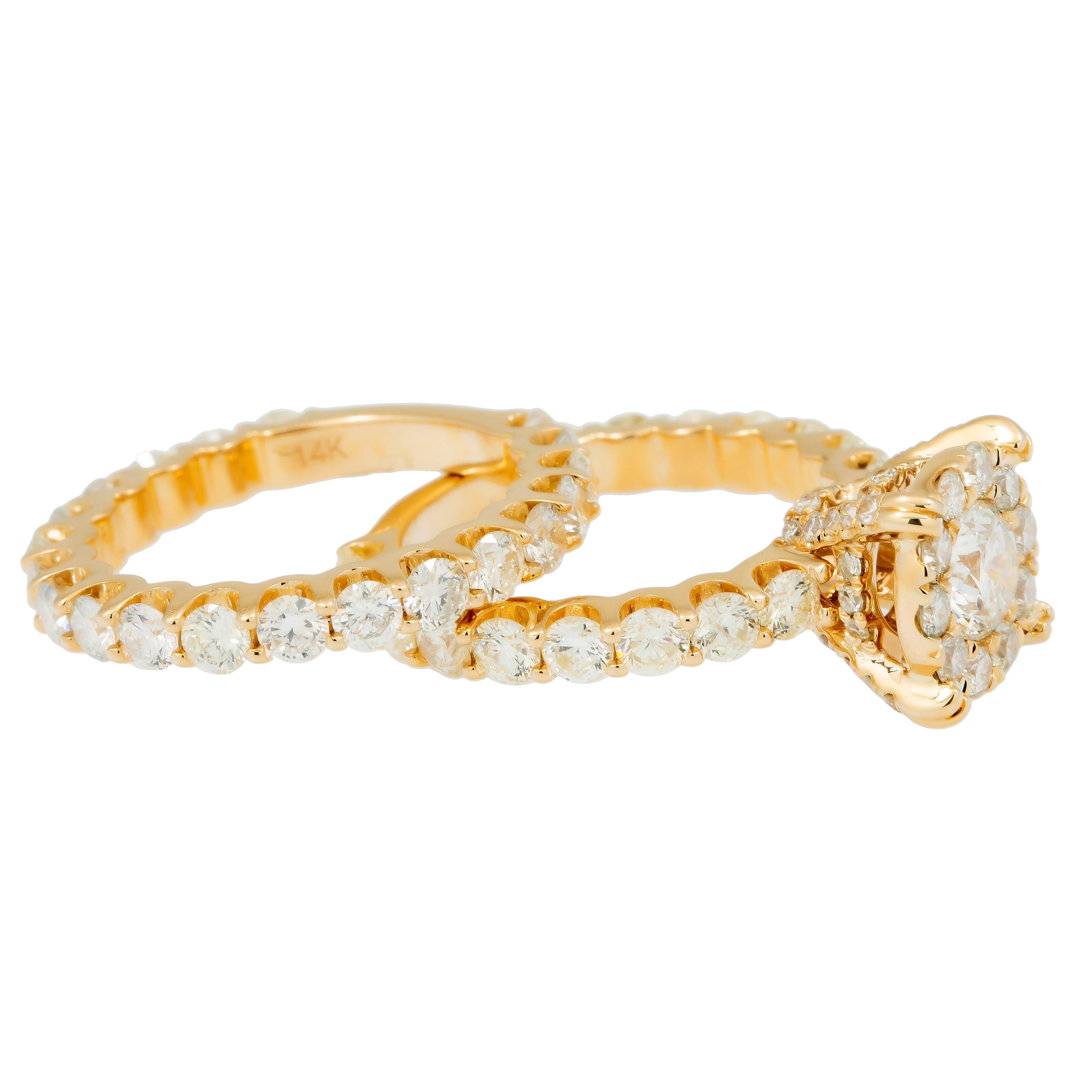 14K GOLD ROUND DIAMOND CLUSTER BRIDAL SET 5.92 CT