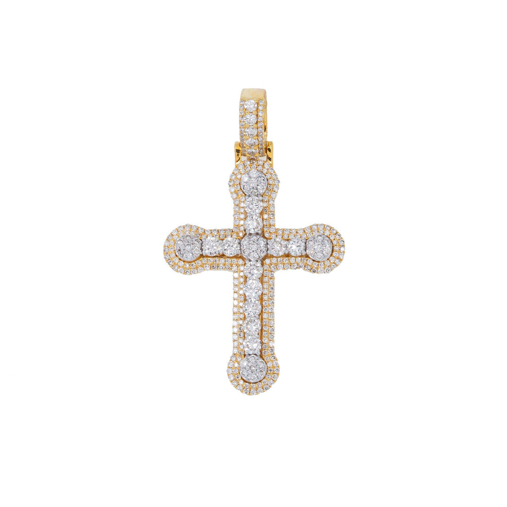 14K GOLD ROUND DIAMOND CLUSTER CROSS PENDANT 1.85 CT