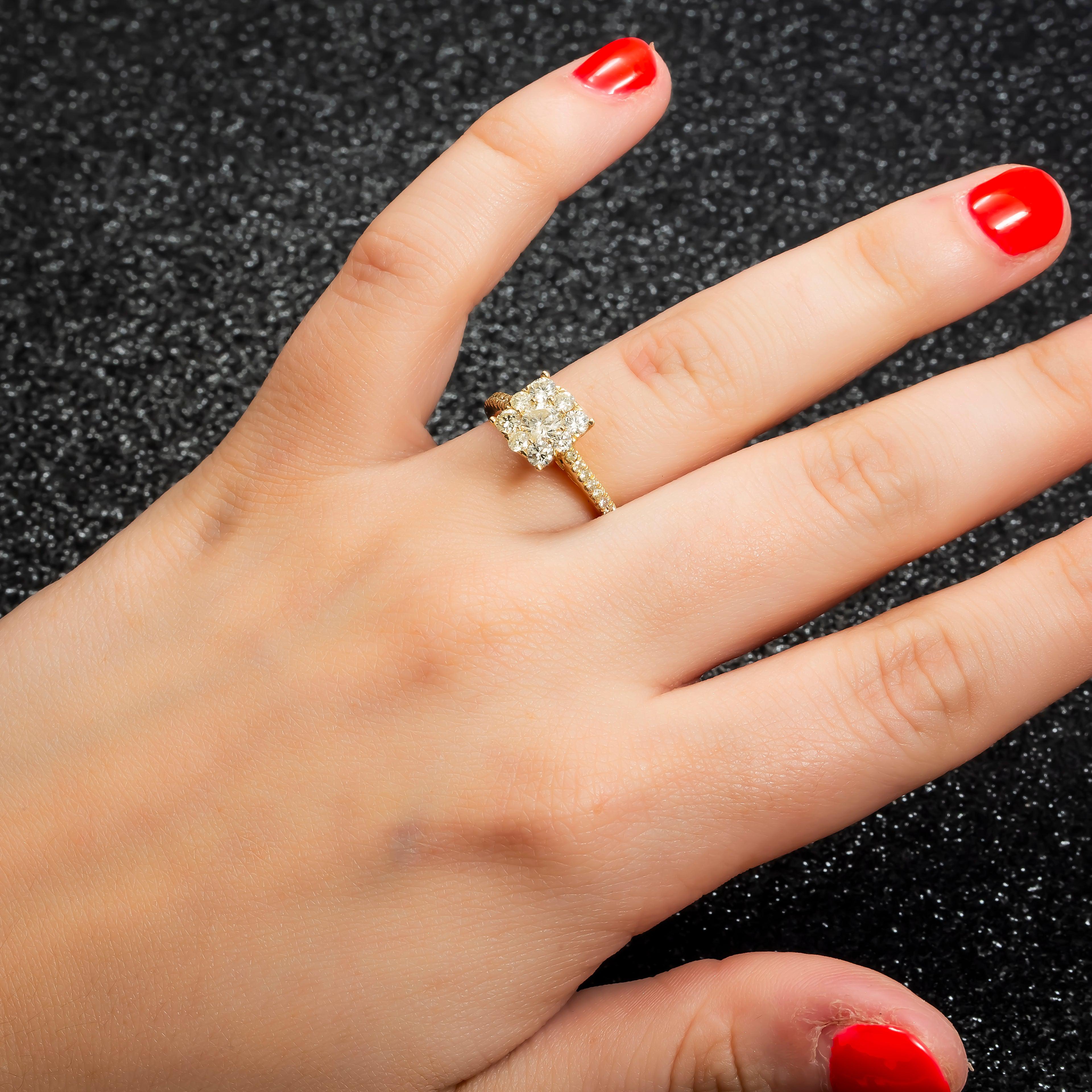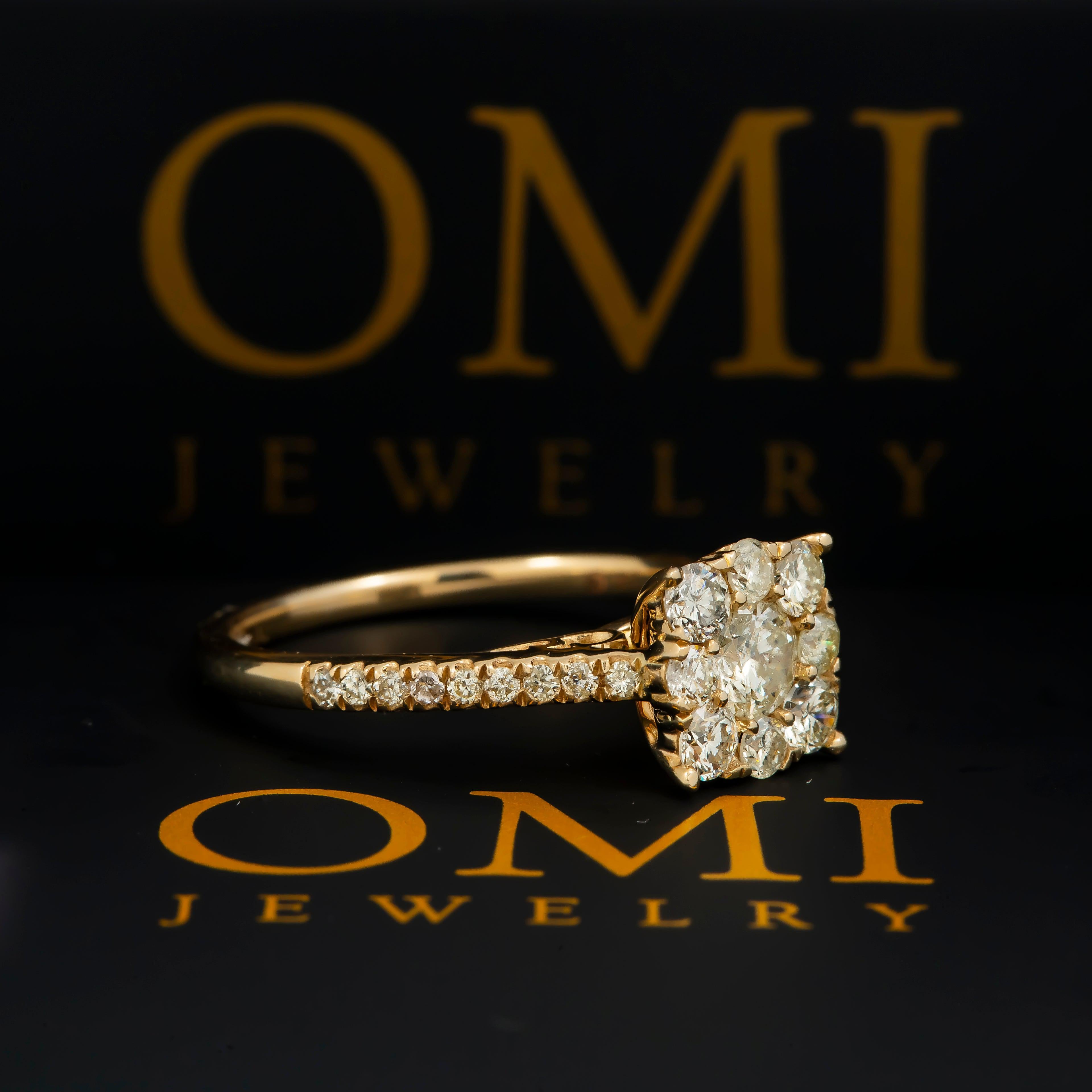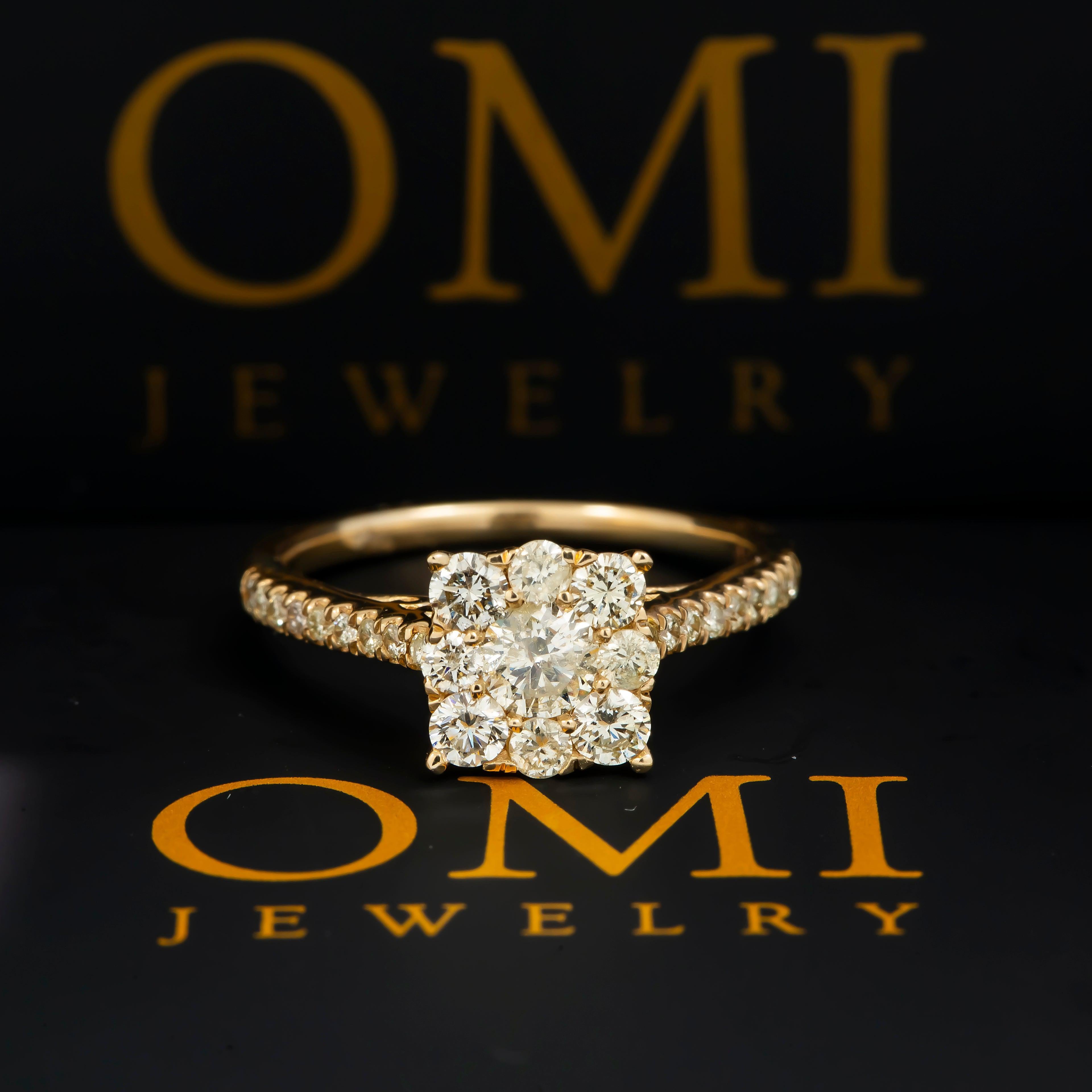 14K GOLD ROUND DIAMOND CLUSTER ENGAGEMENT RING 1.28 CT