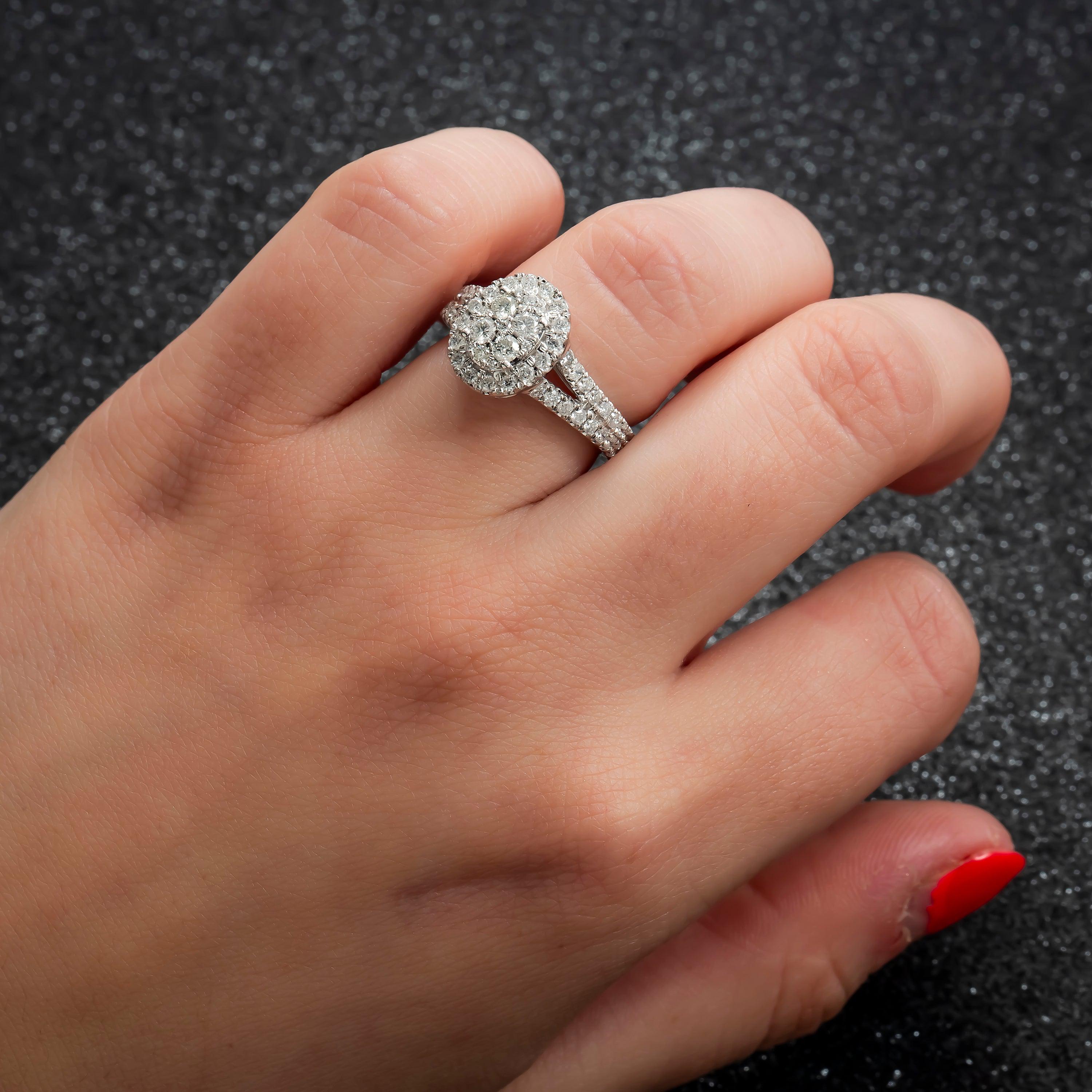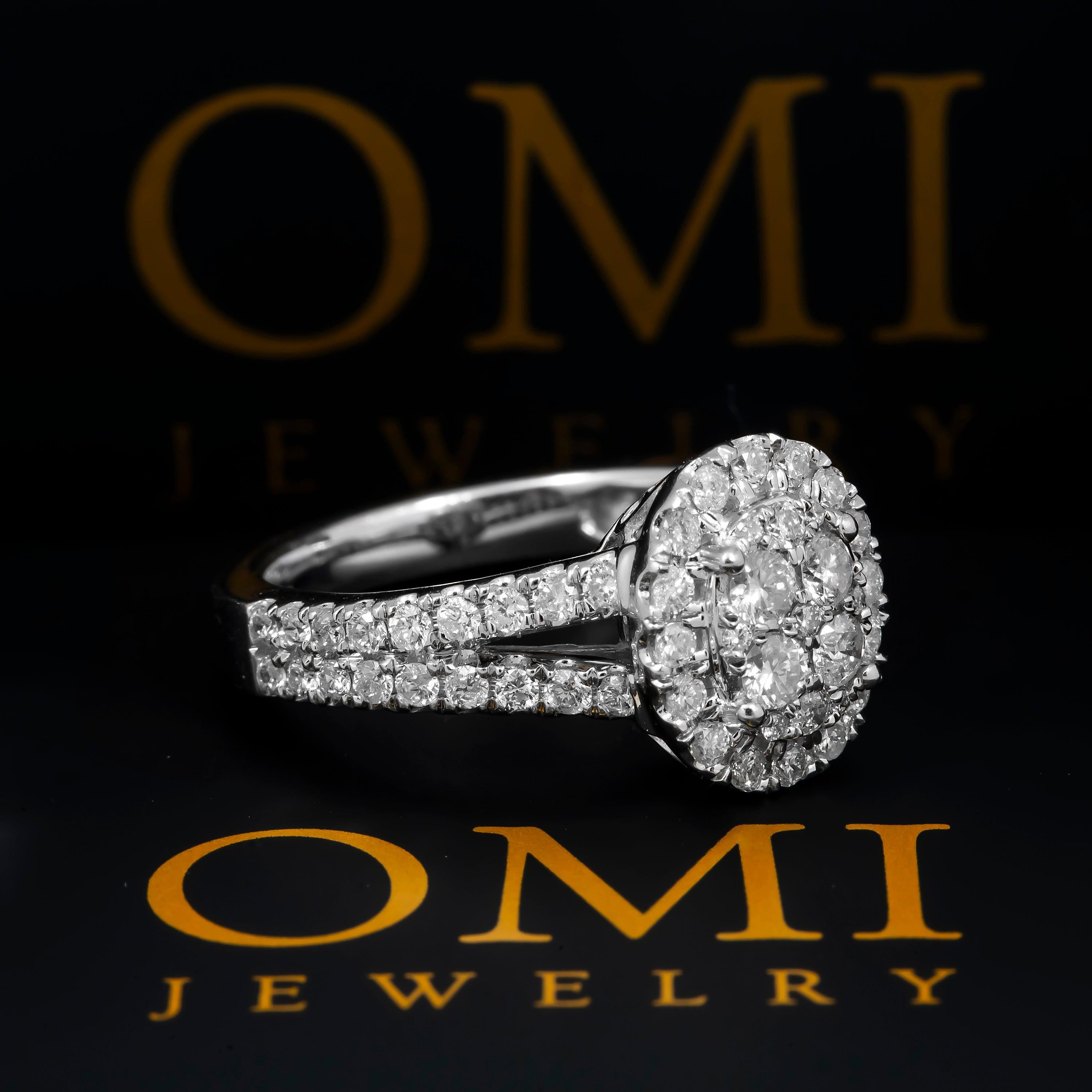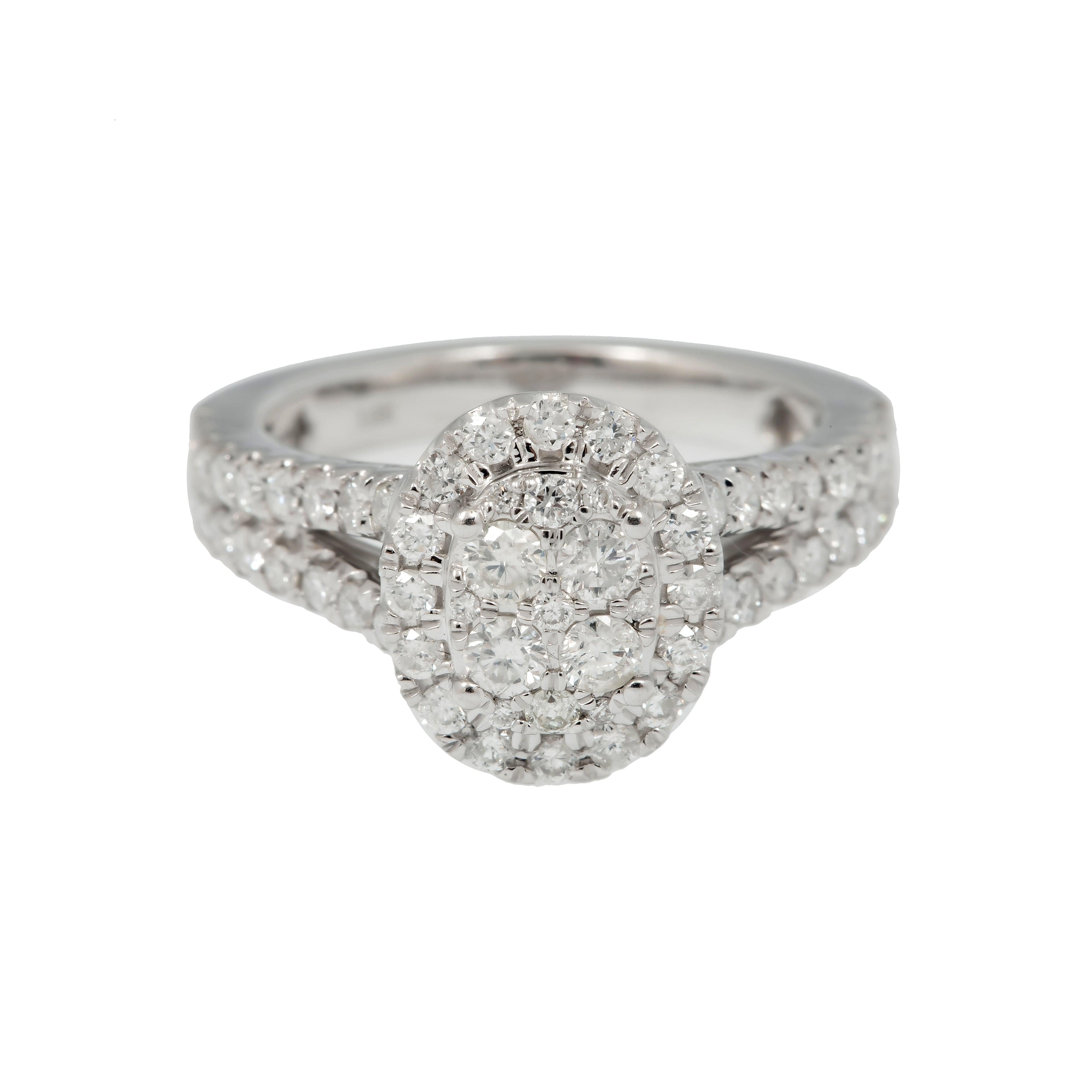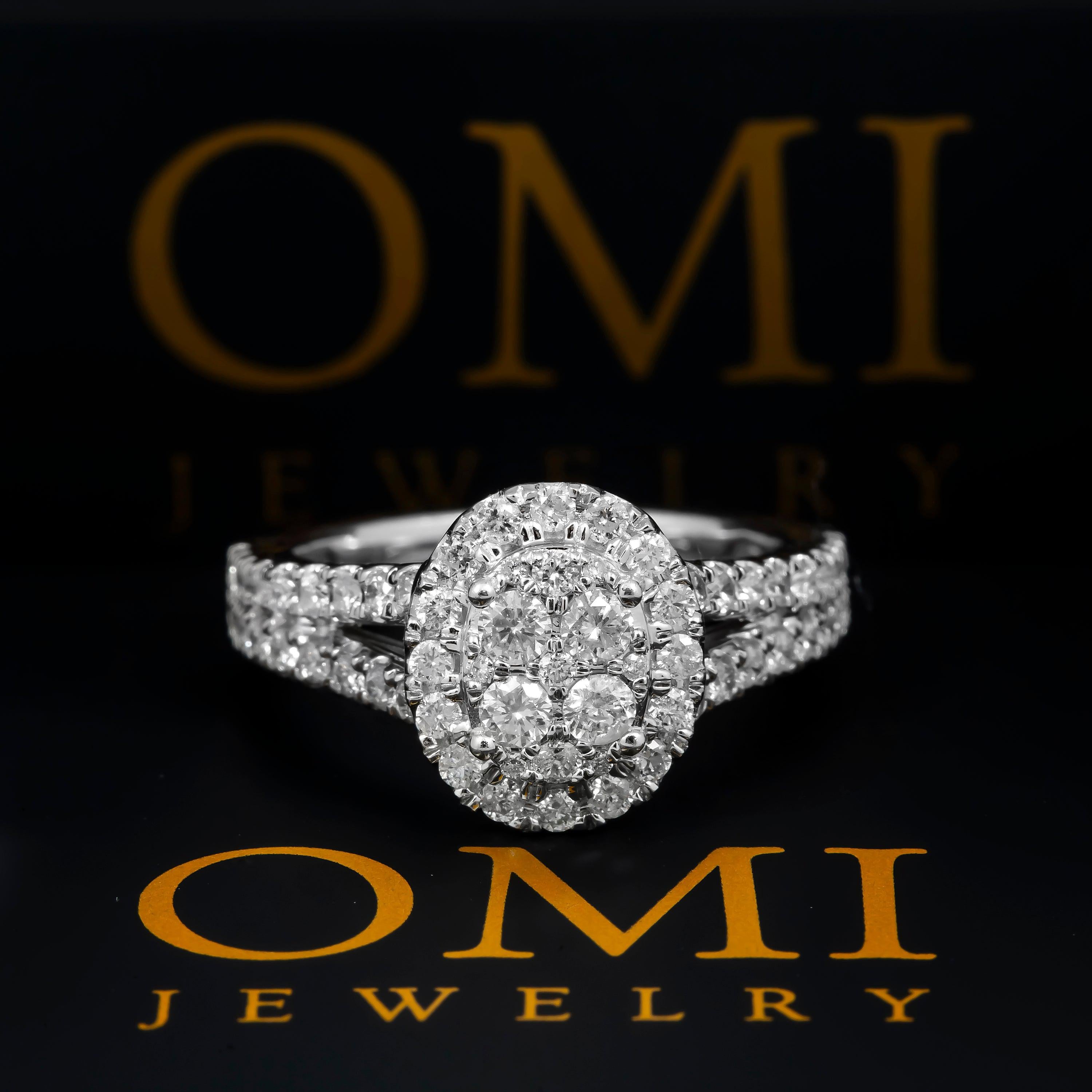 14K GOLD ROUND DIAMOND CLUSTER OVAL SHAPE ENGAGEMENT RING 1.42 CT