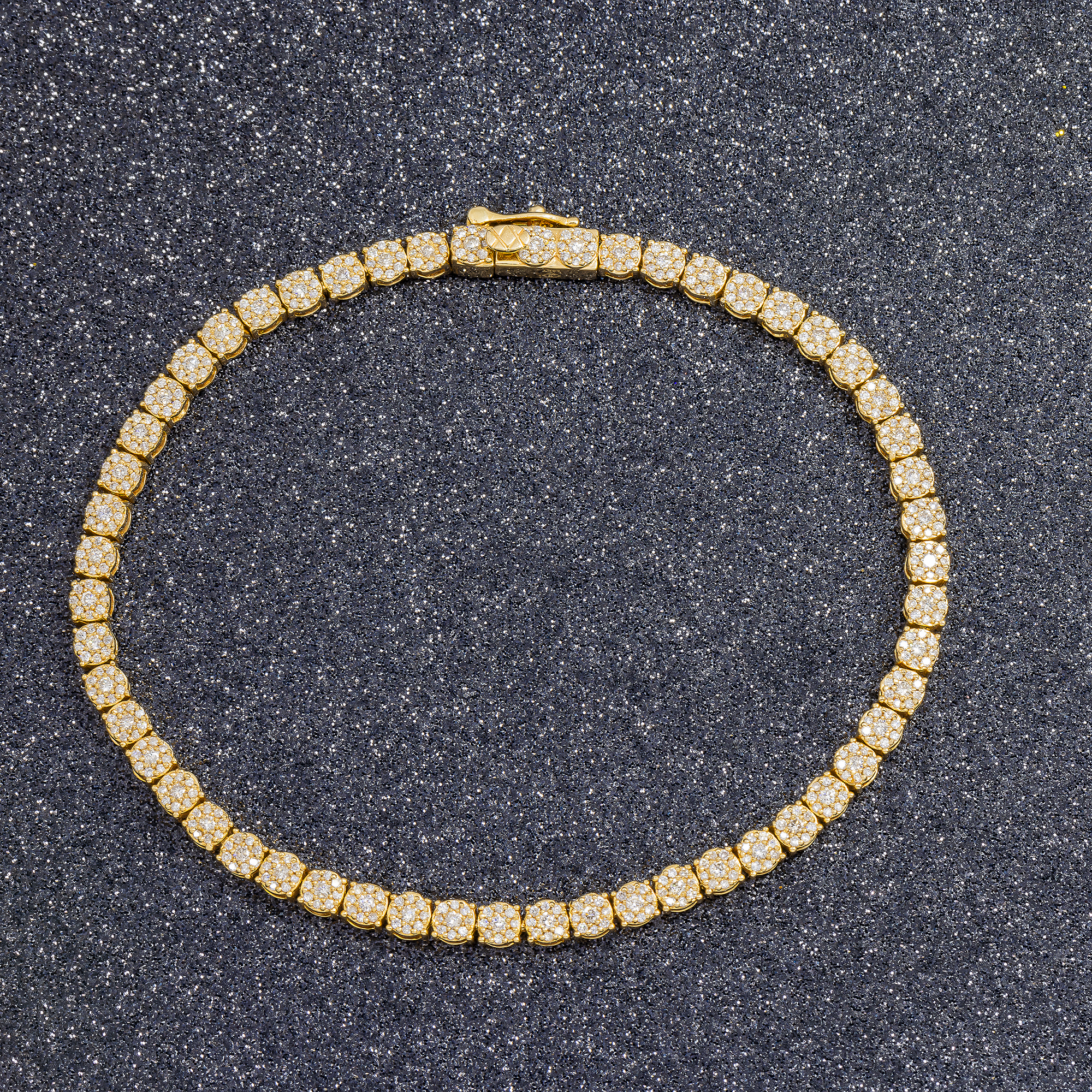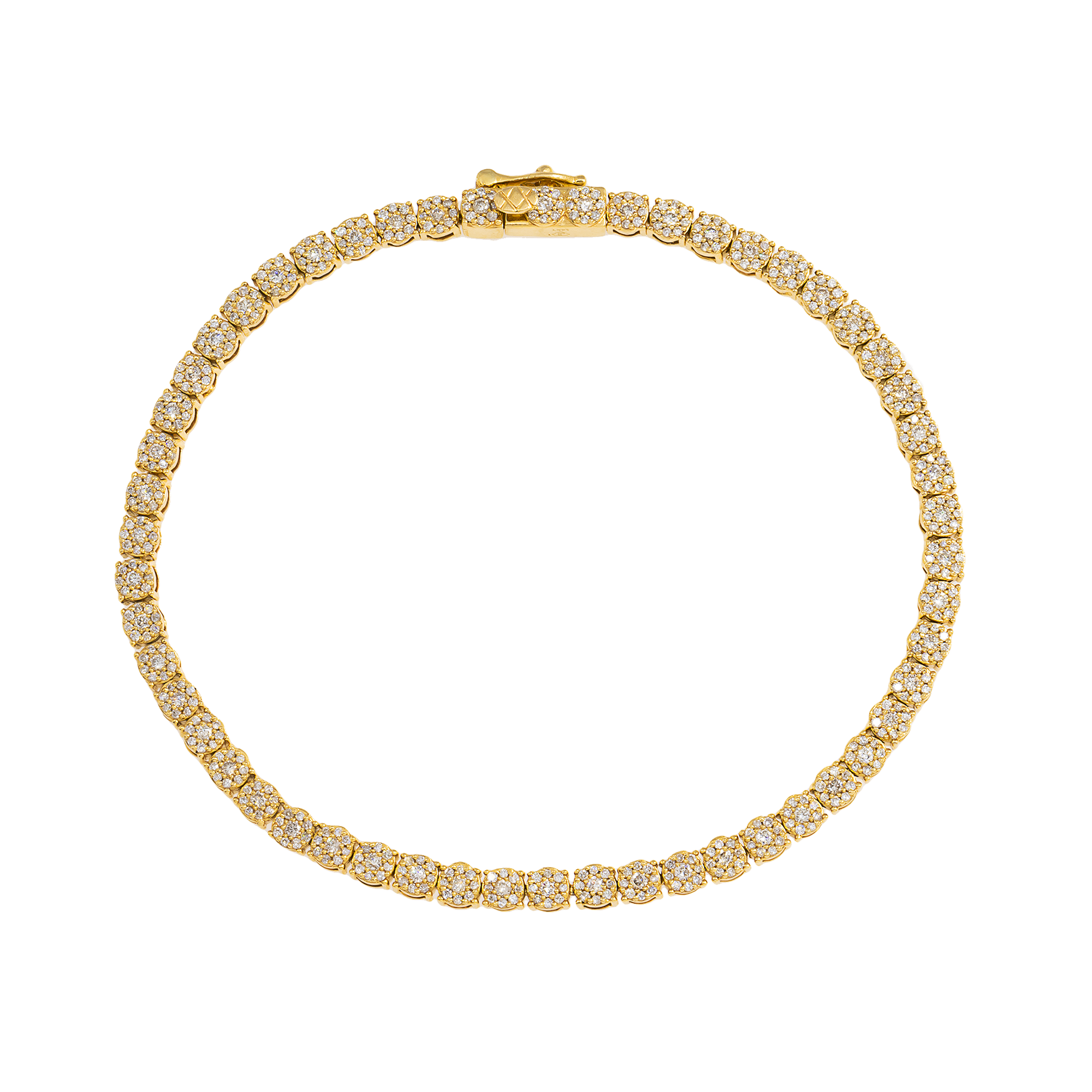 14K GOLD ROUND DIAMOND CLUSTER TENNIS BRACELET 3.00 CT