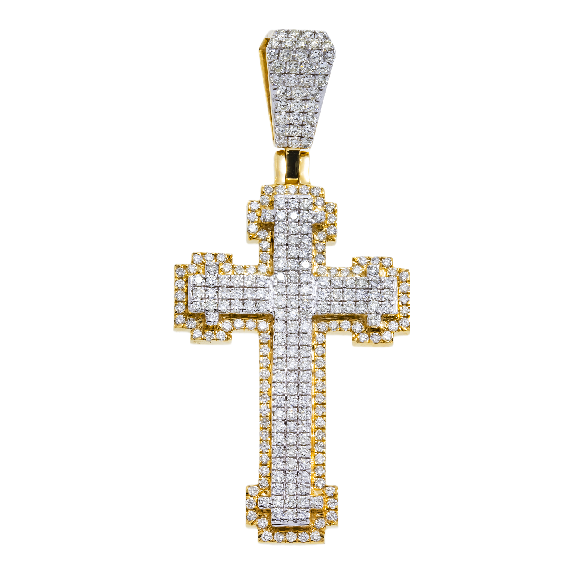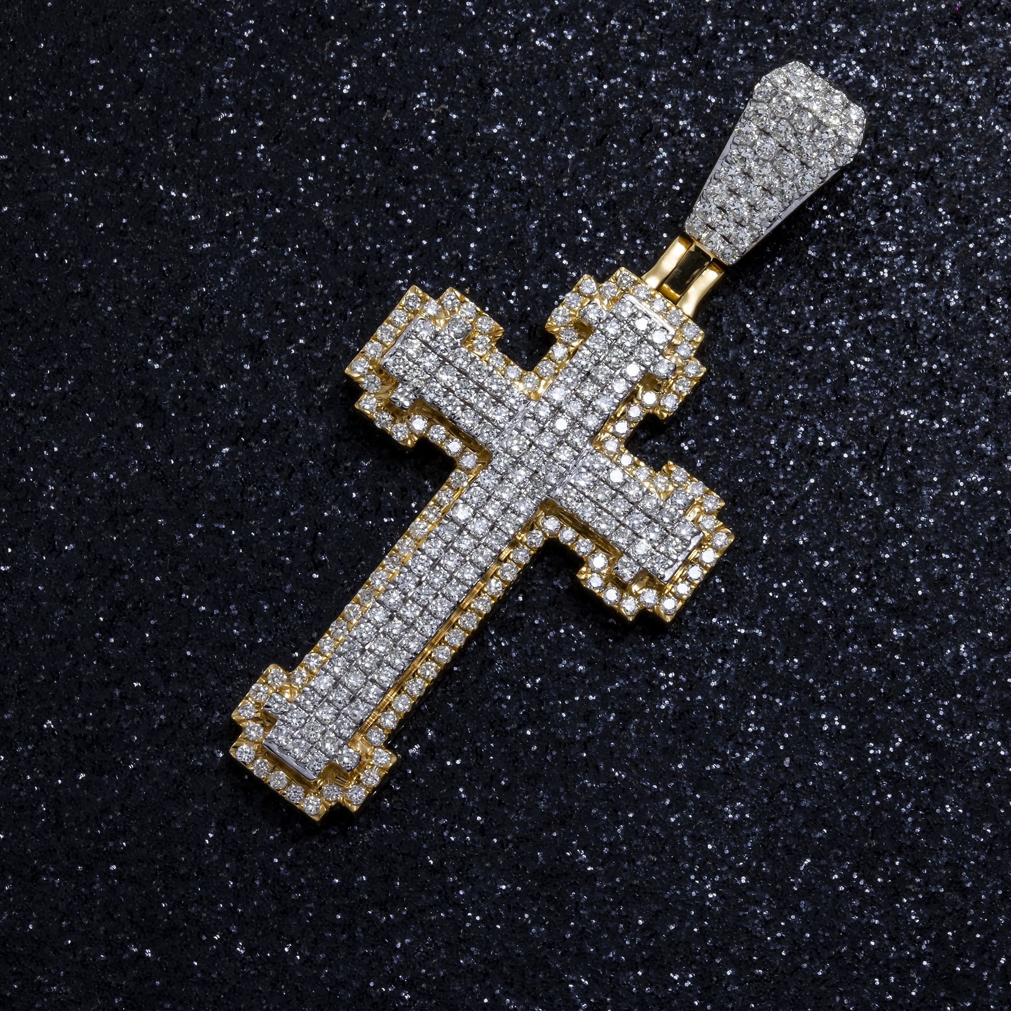 14K GOLD ROUND DIAMOND CROSS PENDANT 3.35 CT