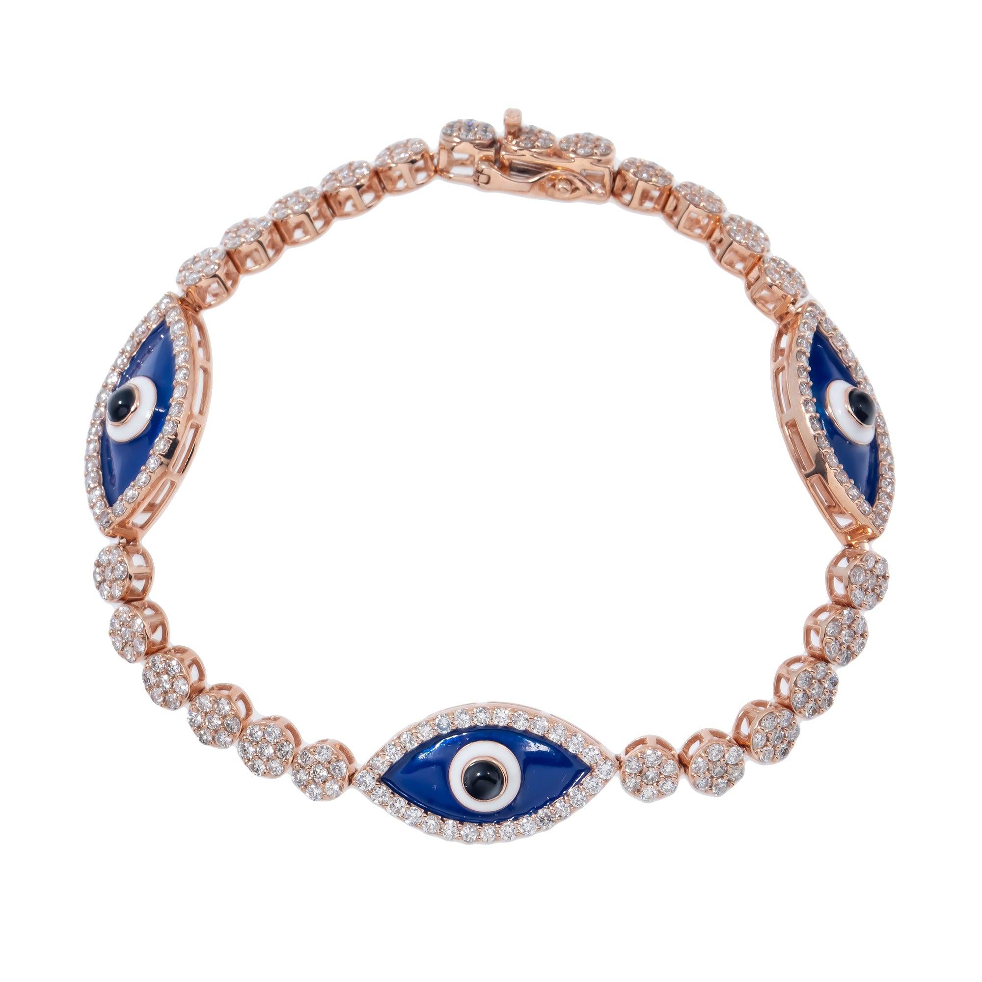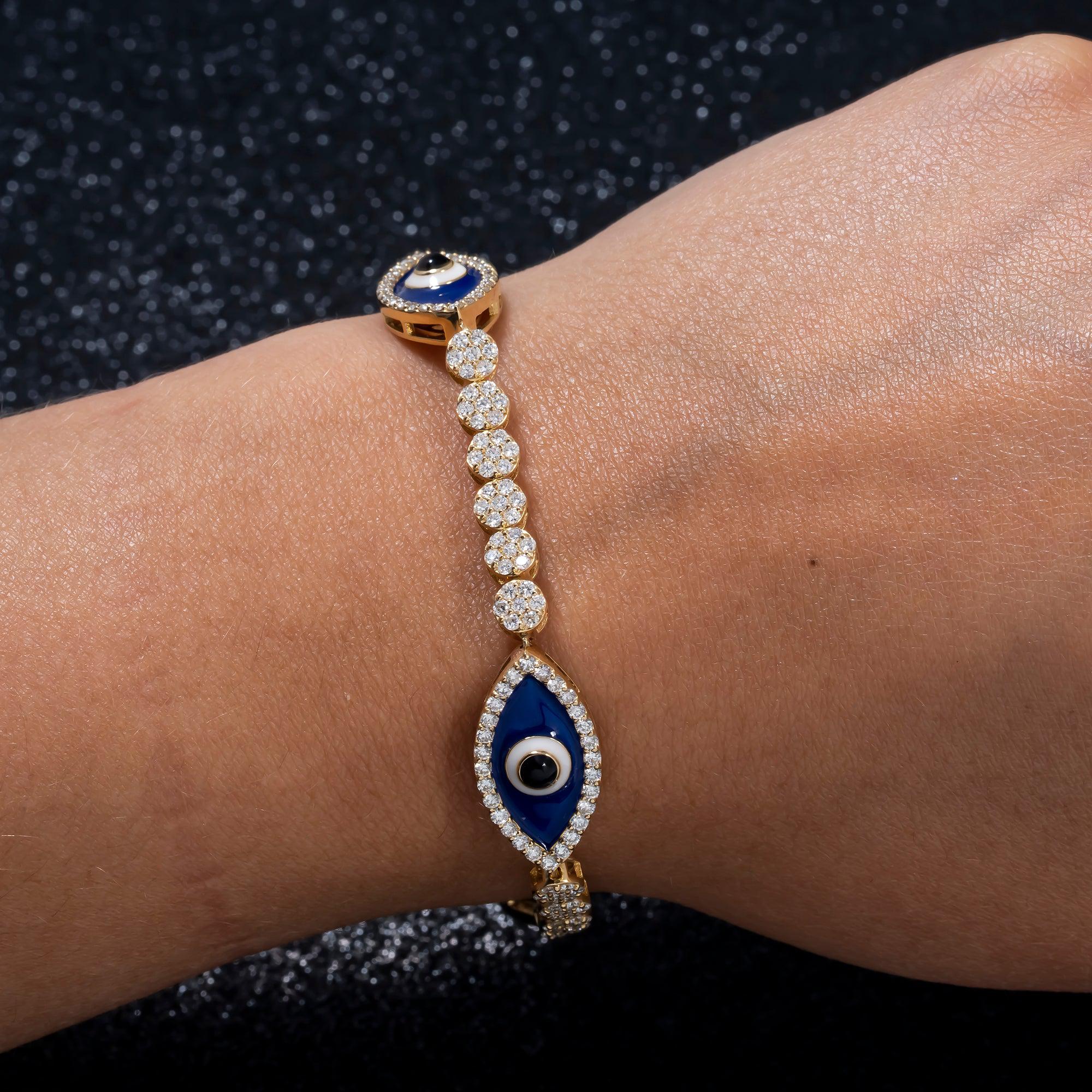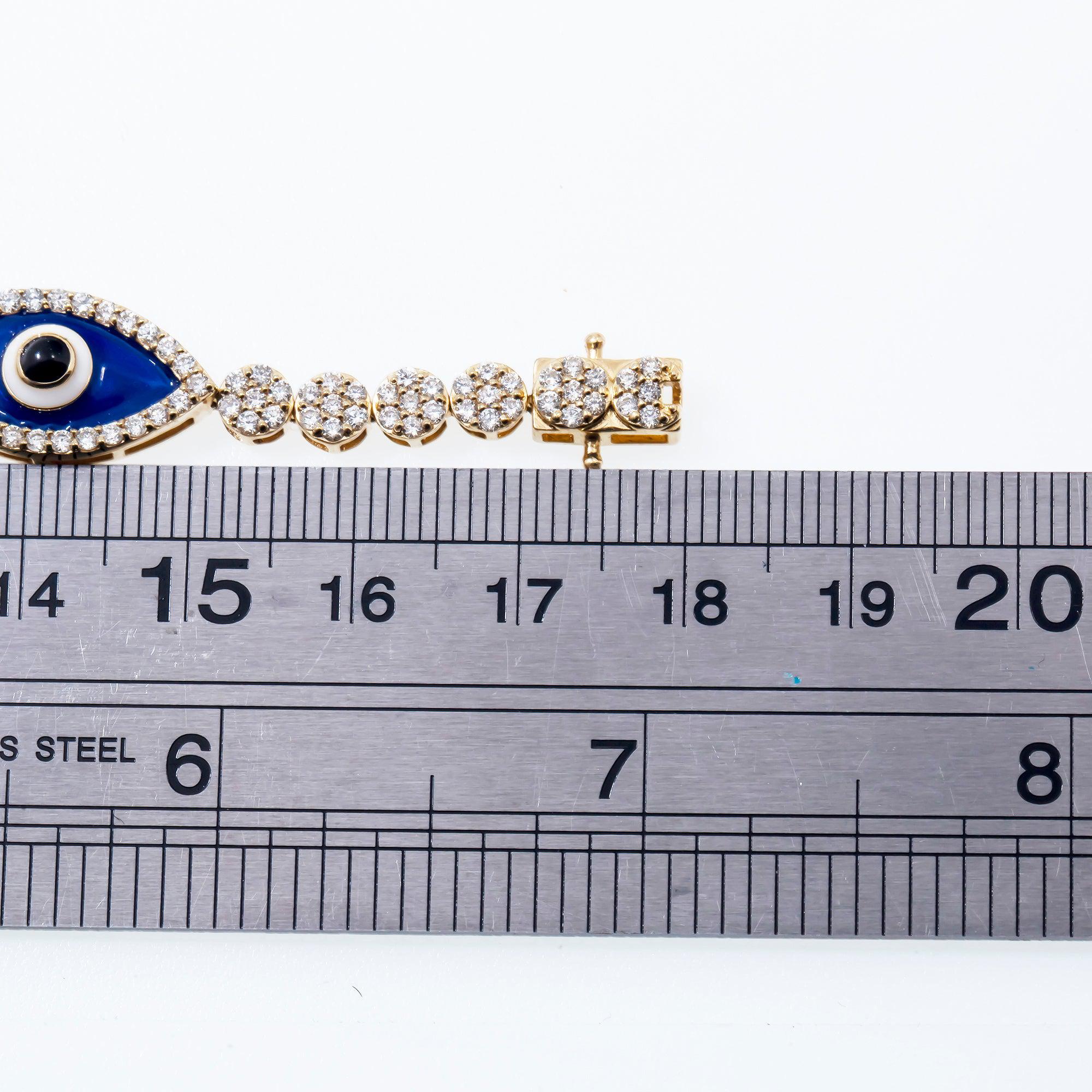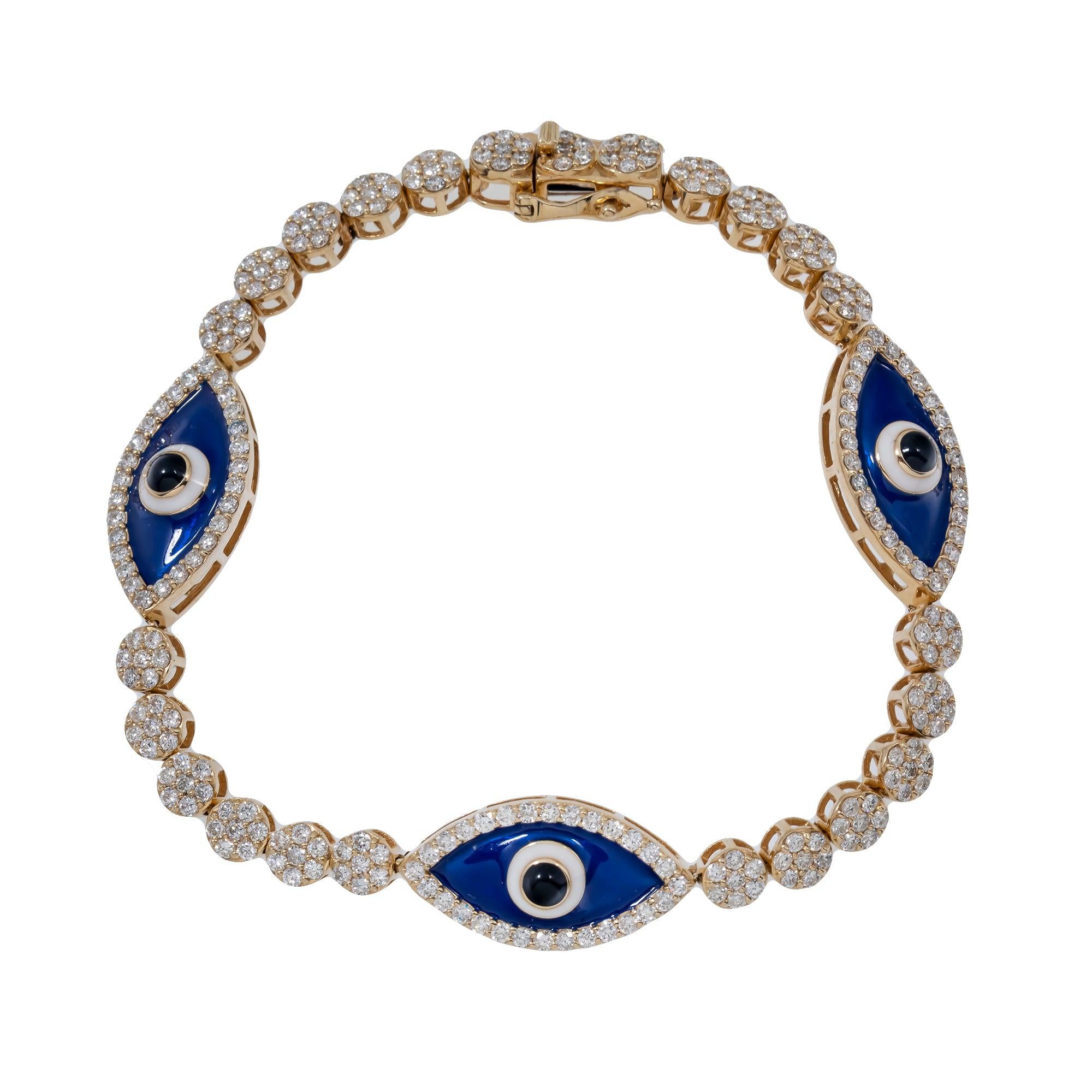 14K GOLD ROUND DIAMOND EVIL EYE BRACELET 3.50 CT