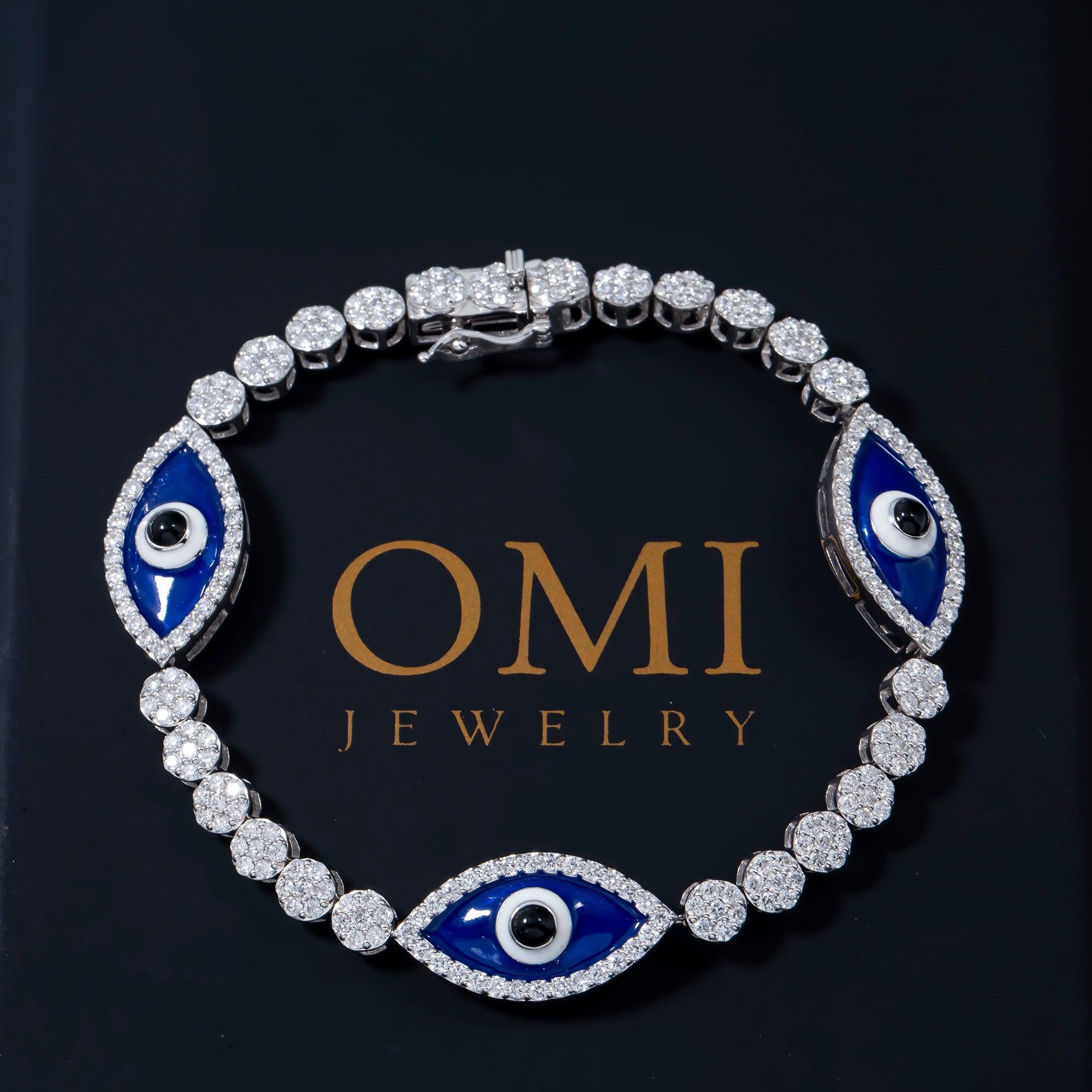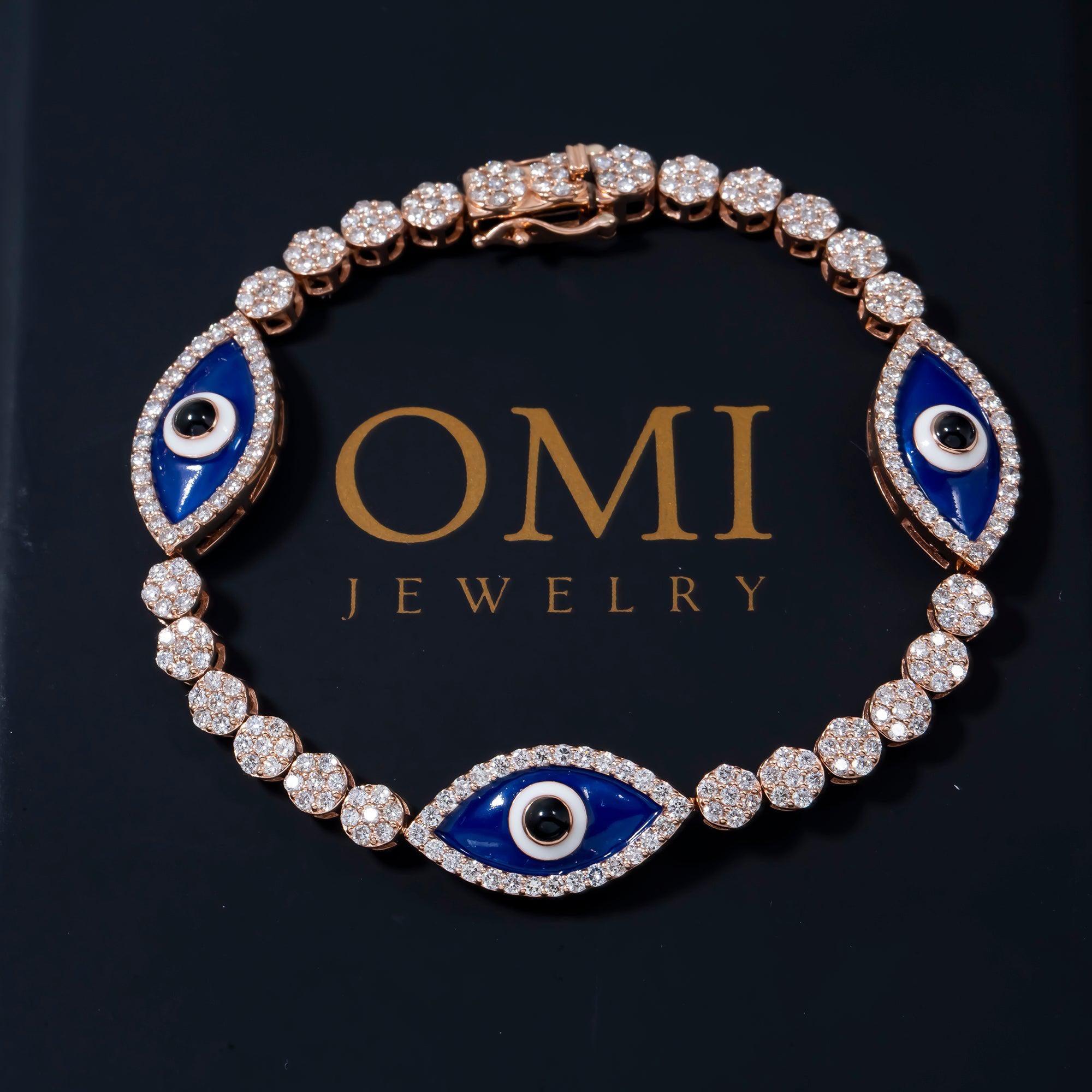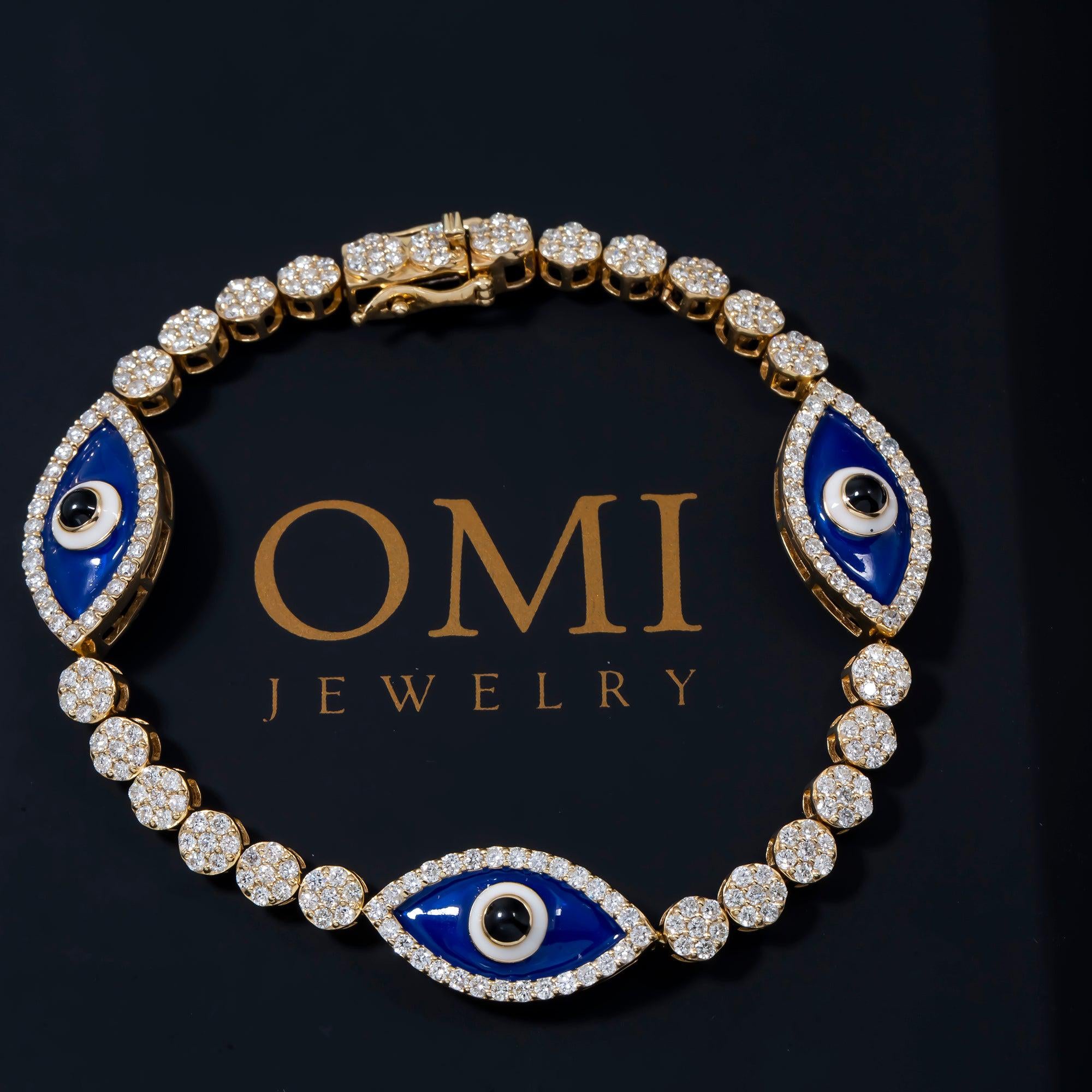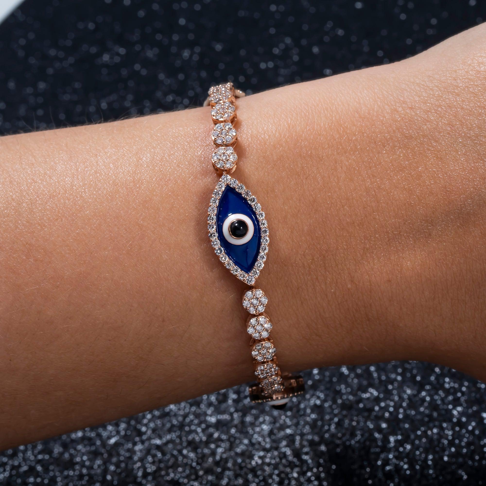 14K GOLD ROUND DIAMOND EVIL EYE BRACELET 3.50 CT
