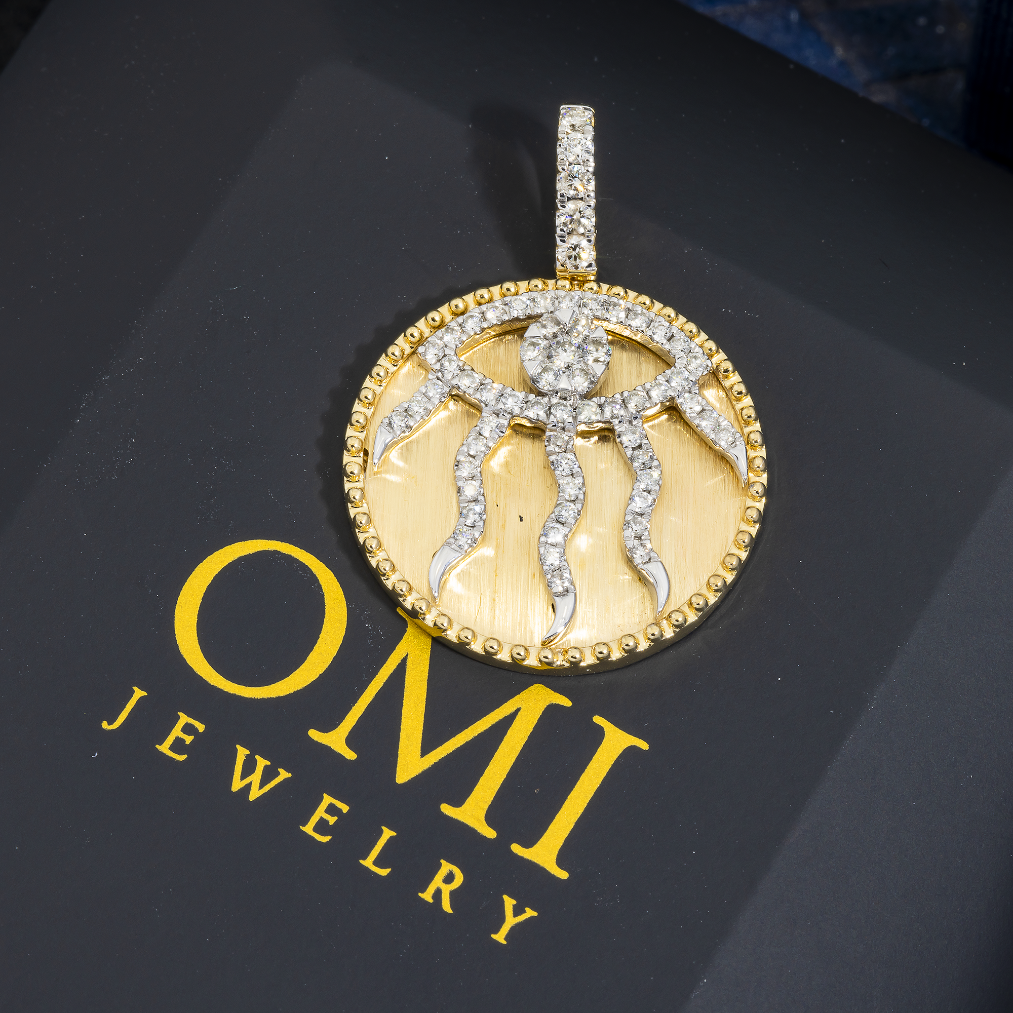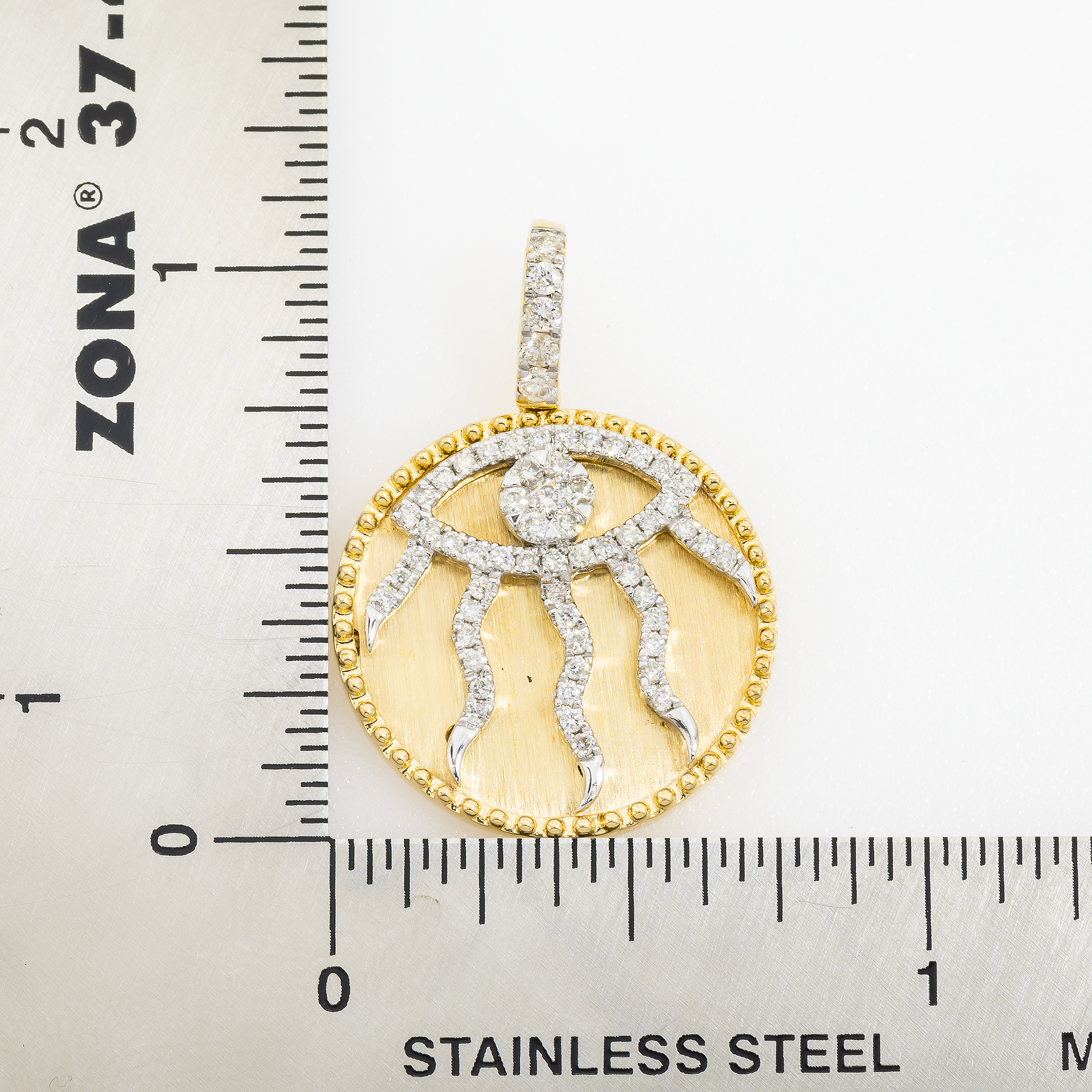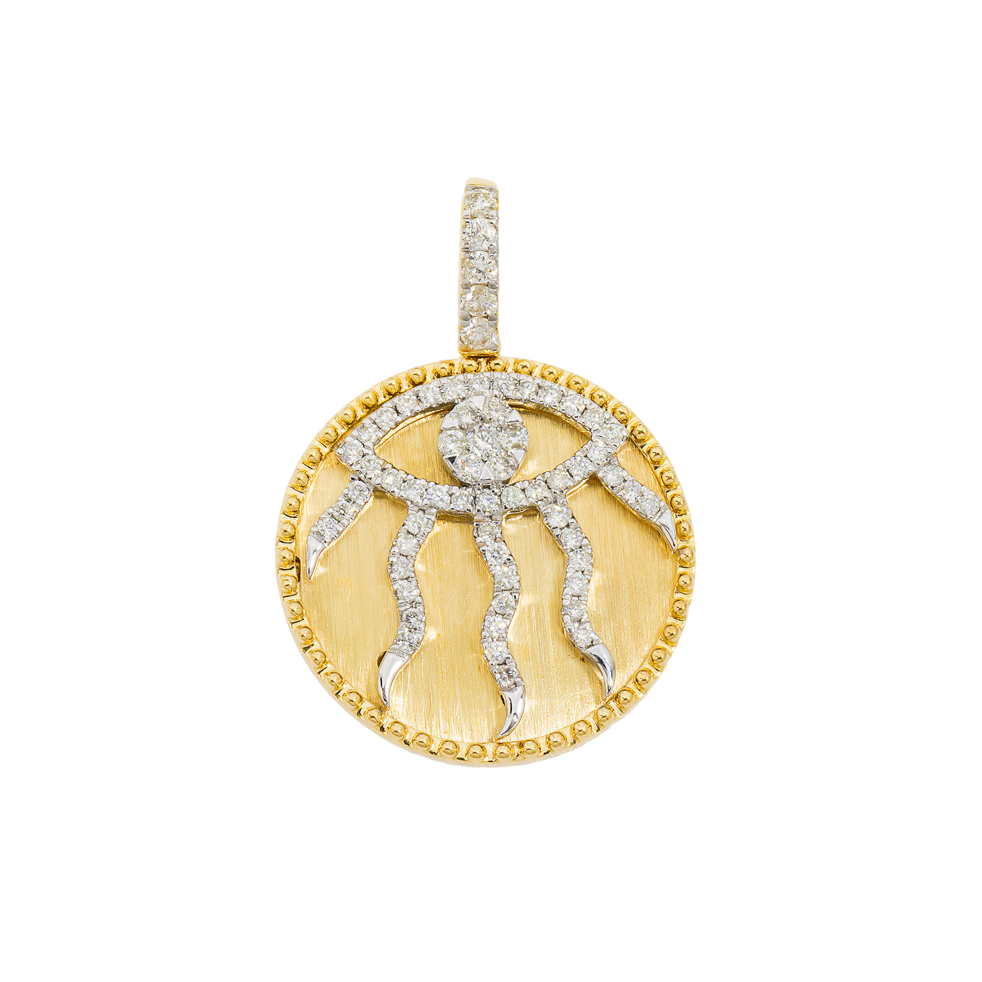 14K GOLD ROUND DIAMOND EVIL EYE COIN PENDANT 0.46 CT